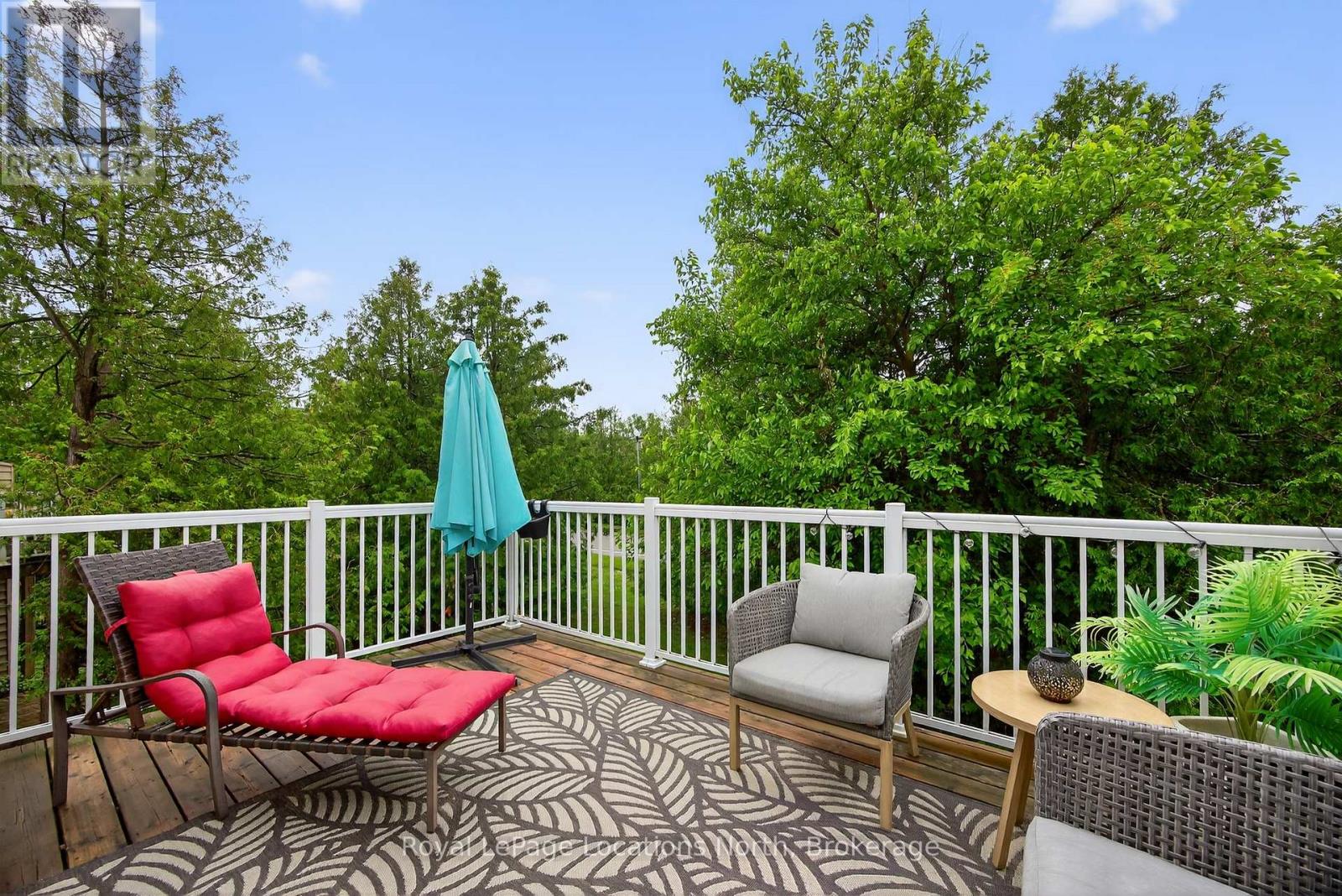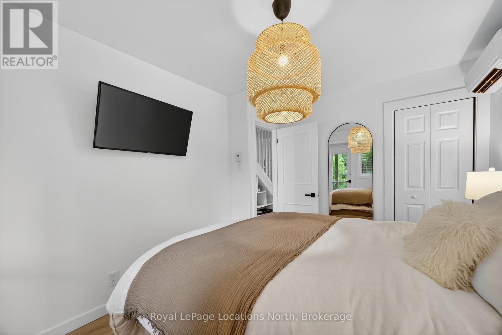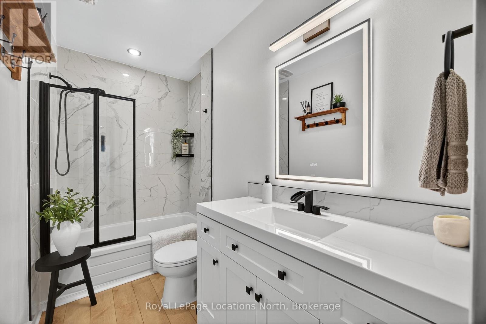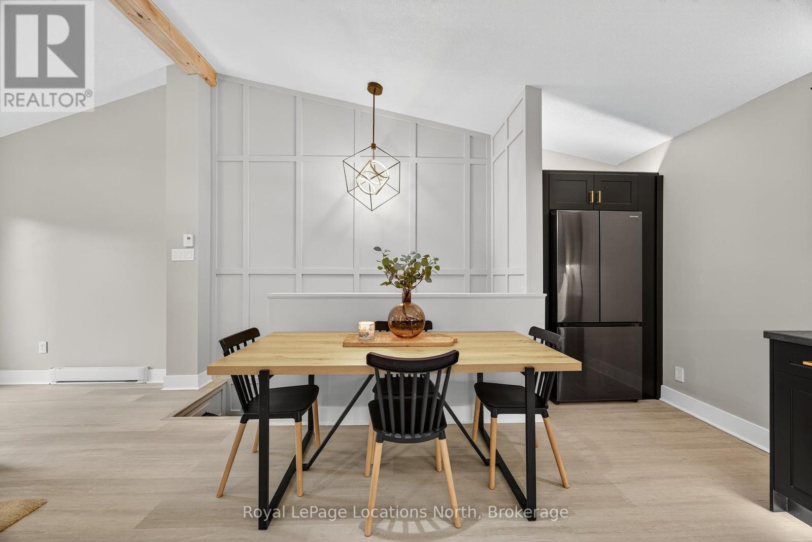 Stunning 2 bed, 1 bath townhouse condo, recently renovated top to bottom. Nestled in the mature trees of Cranberry, this home has been thoughtfully updated throughout, creating a turnkey opportunity for the next owner. The main living/kitchen area is highlighted by a new kitchen (2024) and stainless steel appliances (2024), soaring vaulted ceilings, a custom floor to ceiling electric fireplace wall (2024), and access to a large second storey deck, perfect for taking in sunny afternoons and starry evenings. The ground floor features two sizeable bedrooms, a 4-piece bathroom, and a walkout from the primary bedroom to another outdoor seating area. In addition to an abundance of natural daylight, the custom lighting upgrades are a consistent feature throughout this property. Other recent improvements include a ductless heating/cooling system (2024), hot water tank (2025), baseboard heaters (2024), bathroom (2025), and all new floors and trim (2024). Ideally located in close proximity to everything Collingwood has to offer, and just a few minutes walk to shopping, dining, and Cranberry Golf Course. Book your private showing today!
