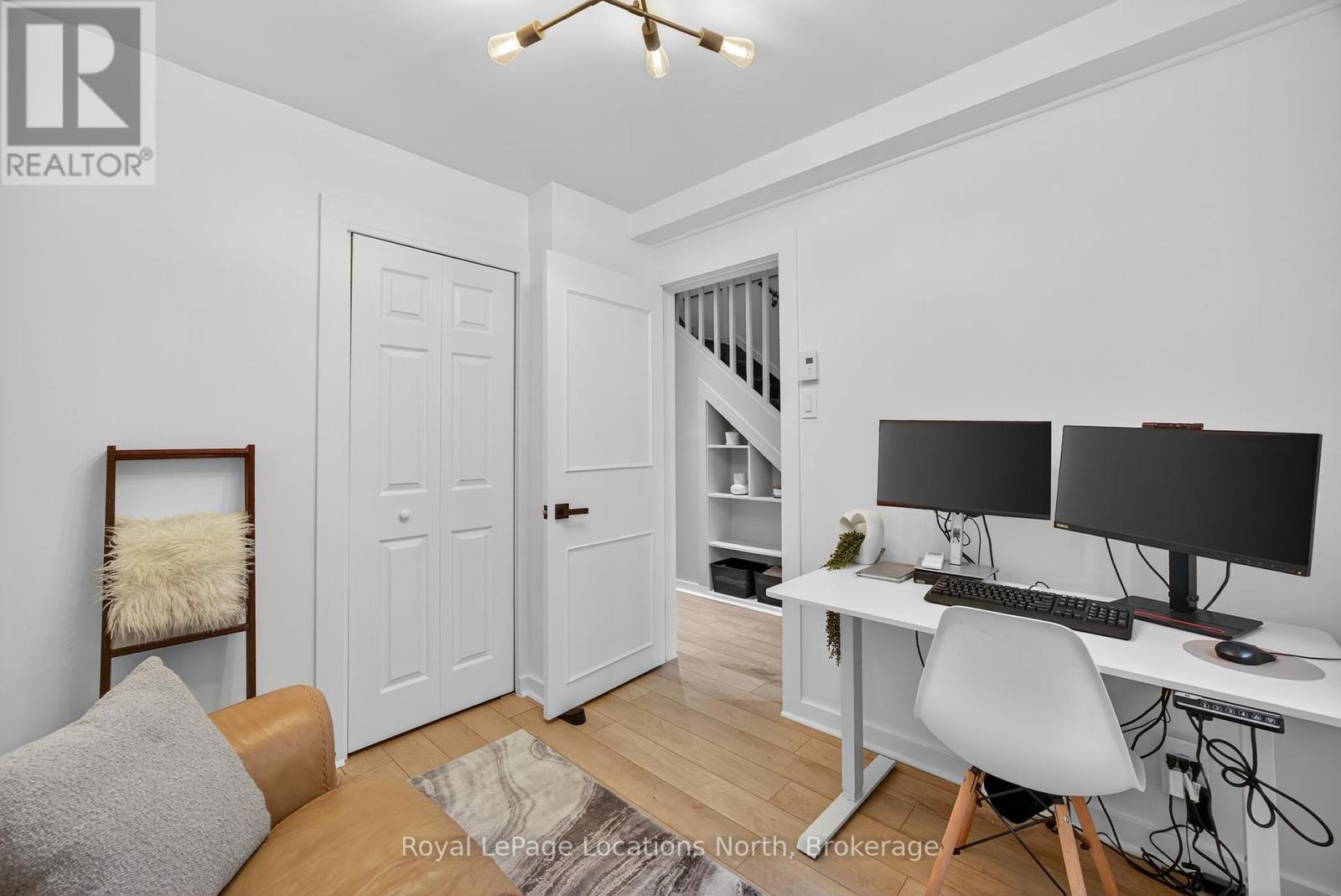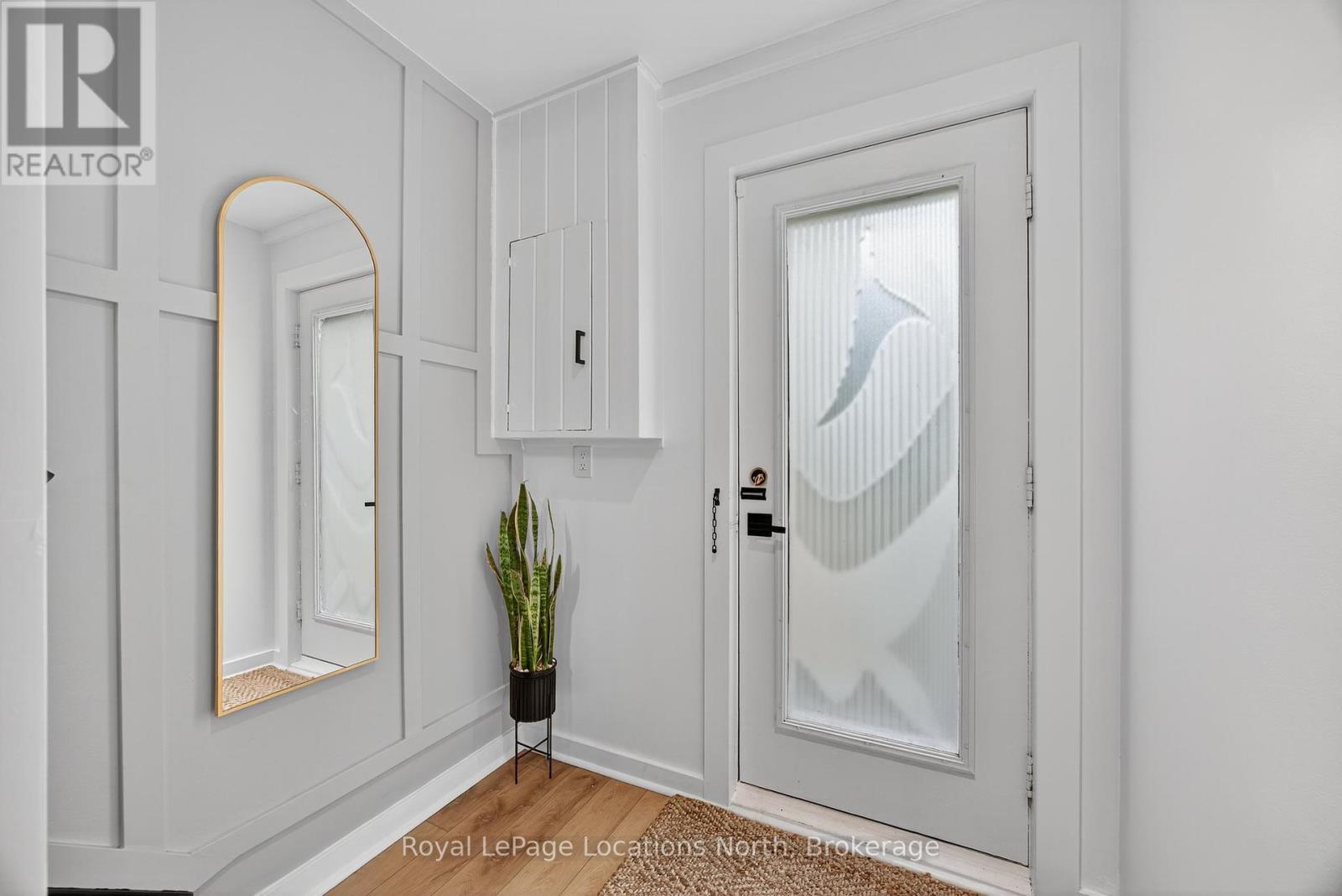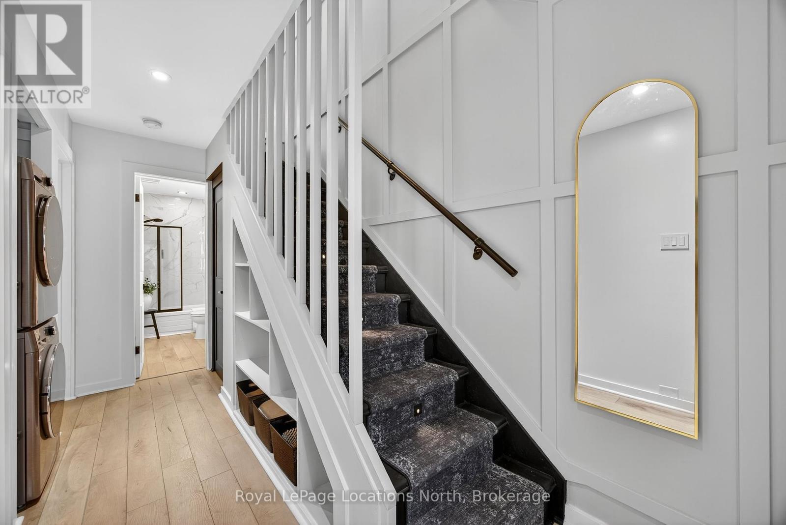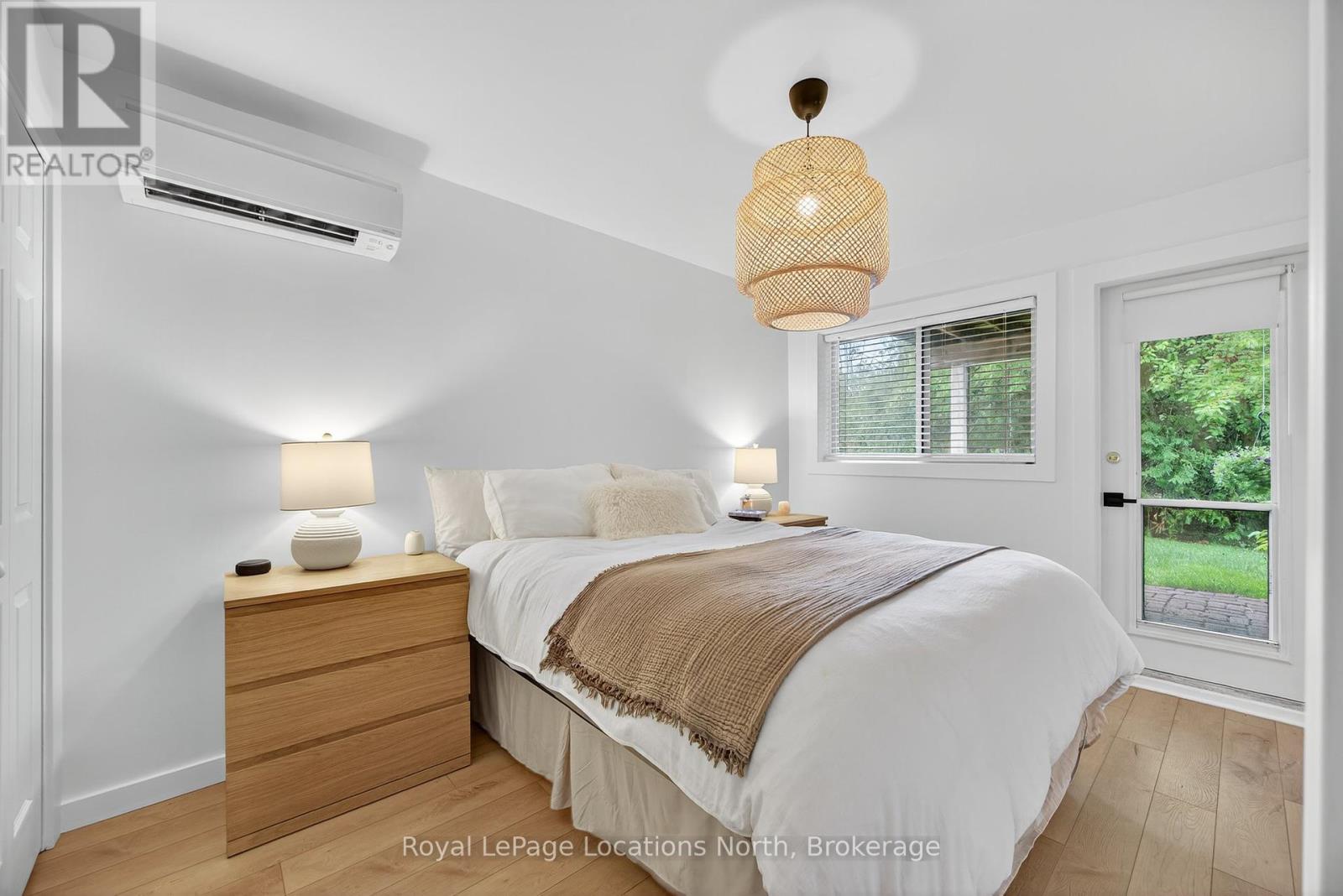 Stunning 2 bed, 1 bath townhouse condo, recently renovated top to bottom. Nestled in the mature trees of Cranberry, this home has been thoughtfully updated throughout, creating a turnkey opportunity for the next owner. The main living/kitchen area is highlighted by a new kitchen (2024) and stainless steel appliances (2024), soaring vaulted ceilings, a custom floor to ceiling electric fireplace wall (2024), and access to a large second storey deck, perfect for taking in sunny afternoons and starry evenings. The ground floor features two sizeable bedrooms, a 4-piece bathroom, and a walkout from the primary bedroom to another outdoor seating area. In addition to an abundance of natural daylight, the custom lighting upgrades are a consistent feature throughout this property. Other recent improvements include a ductless heating/cooling system (2024), hot water tank (2025), baseboard heaters (2024), bathroom (2025), and all new floors and trim (2024). Ideally located in close proximity to everything Collingwood has to offer, and just a few minutes walk to shopping, dining, and Cranberry Golf Course. Book your private showing today!