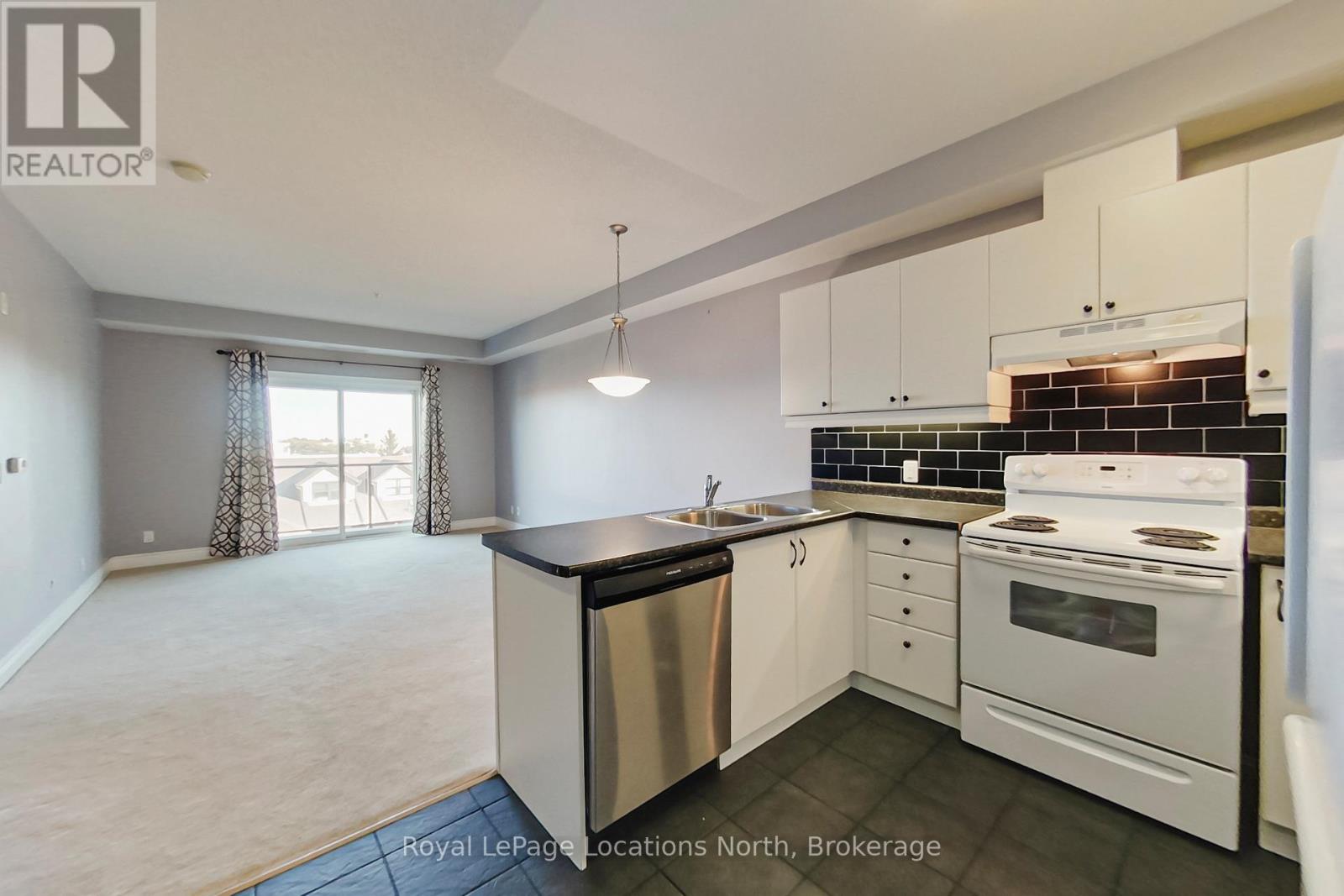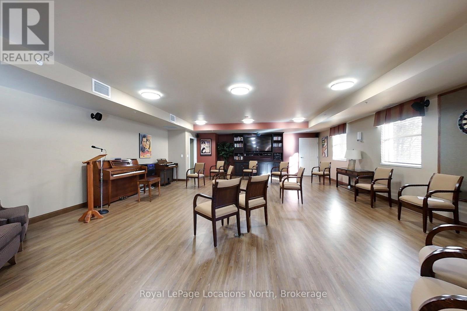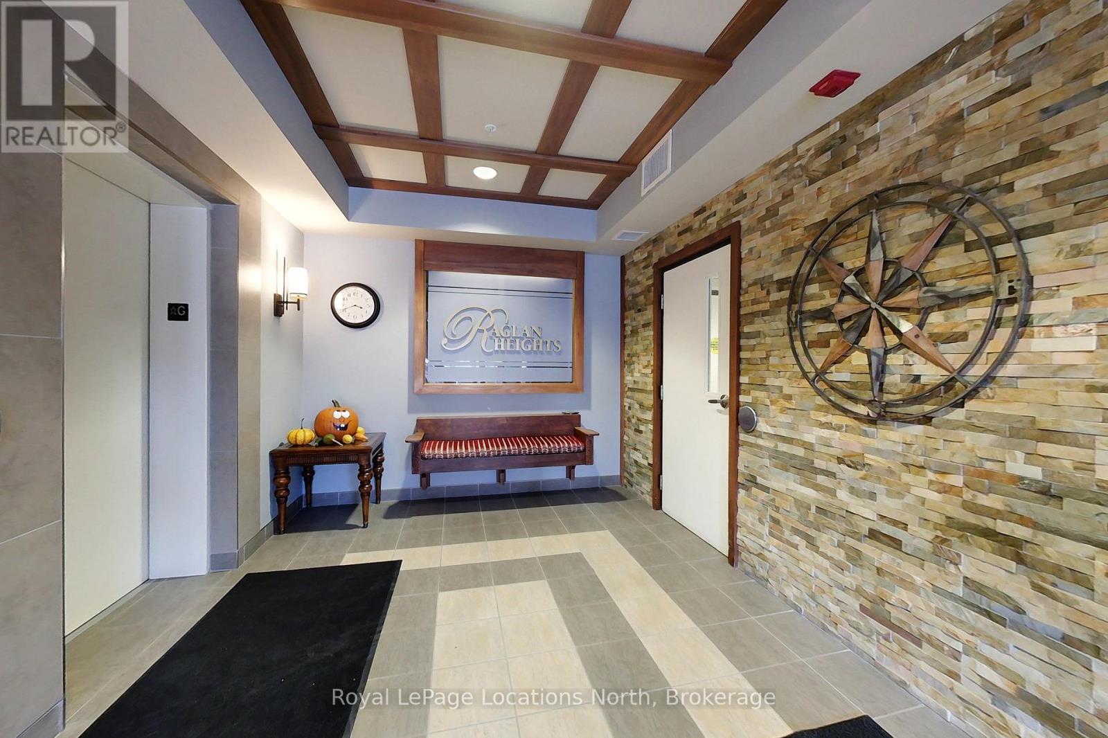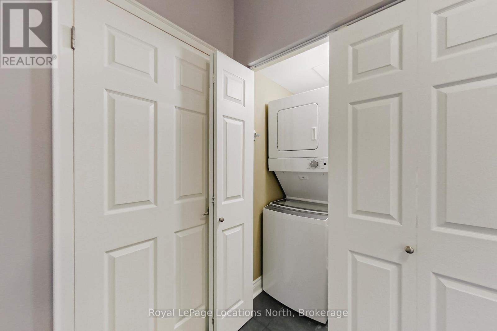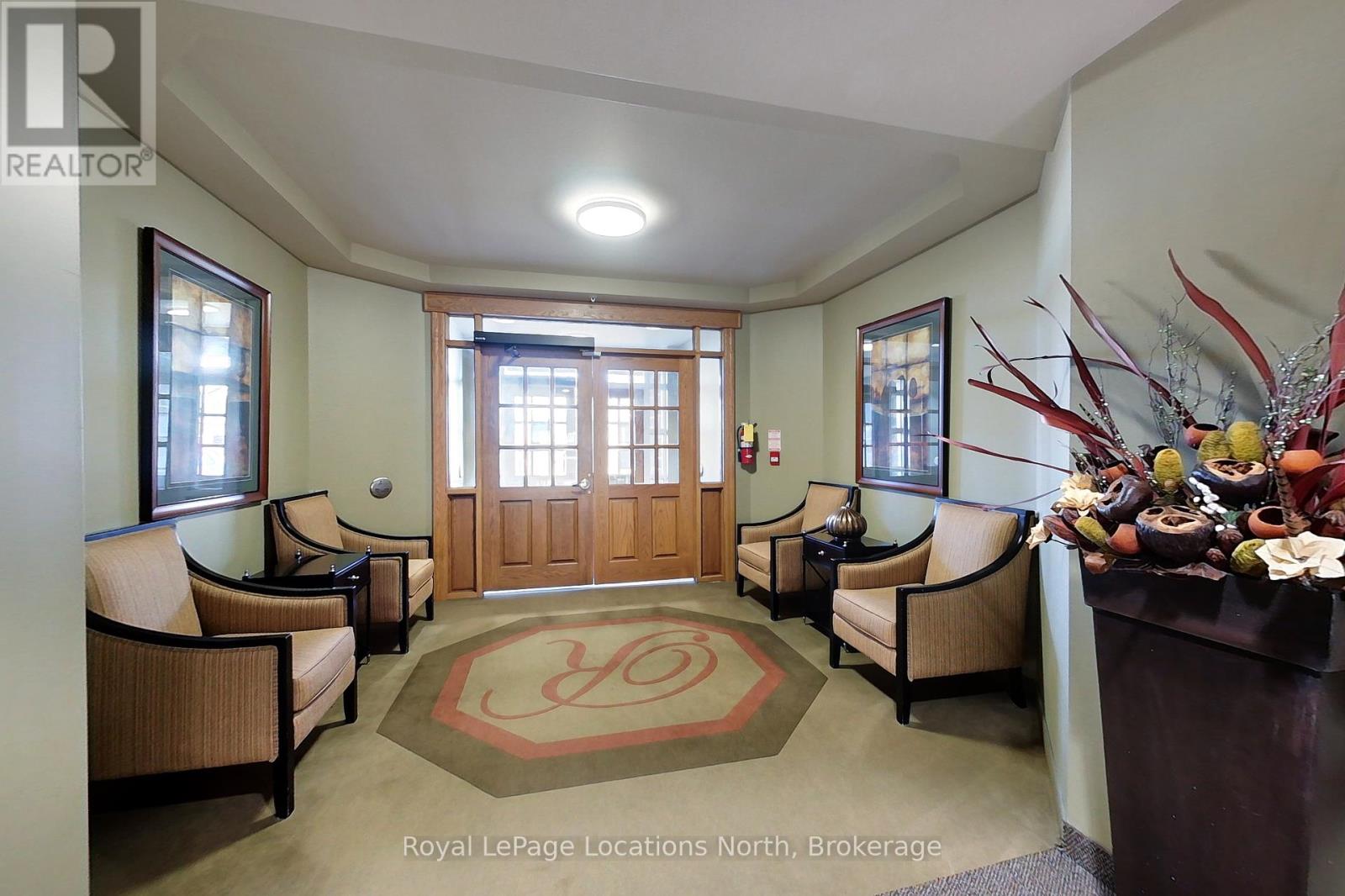 Find your dream retirement in Raglan Village! Imagine a life of gentle activity & relaxation in this cozy one bedroom condo nestled in the heart of Collingwood's esteemed Raglan Village Adult & Retirement Community. Step into an open-concept living area flowing seamlessly onto your private balcony - perfect for enjoying your morning coffee or evening sunset. The kitchen gleams with white cabinets, tiled backsplash, and includes four essential appliances, making meal prep easy. Enjoy the convenience of a full four-piece bathroom with stacked laundry designed for effortless living. Beyond your condo, numerous activities awaits in the exclusive Raglan Club. Swim in the refreshing saltwater lap pool, unwind in the hot tub, stay active in the exercise room, or challenge friends to a game of shuffleboard or pool. Paper yourself at the on-site hairdressing salon, delve into a good book in the library, or savor a delightful meal at the full service dining room. Your new home puts you at the center of it all! Enjoy easy access to walking trails, town bus routes, and the hospital, ensuring convenience and peace of of mind. Plus, you'll benefit from the heated indoor parking spot, a dedicated storage locker, and convenient mail delivery. Treat yourself to a friendly and flexible lifestyle designed just for you! With flexible possession available, your dream retirement starts now in Raglan Village. Don't just imagine it - live it! Contact us today to discover your vibrant future.