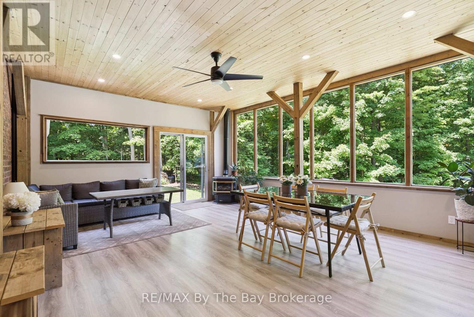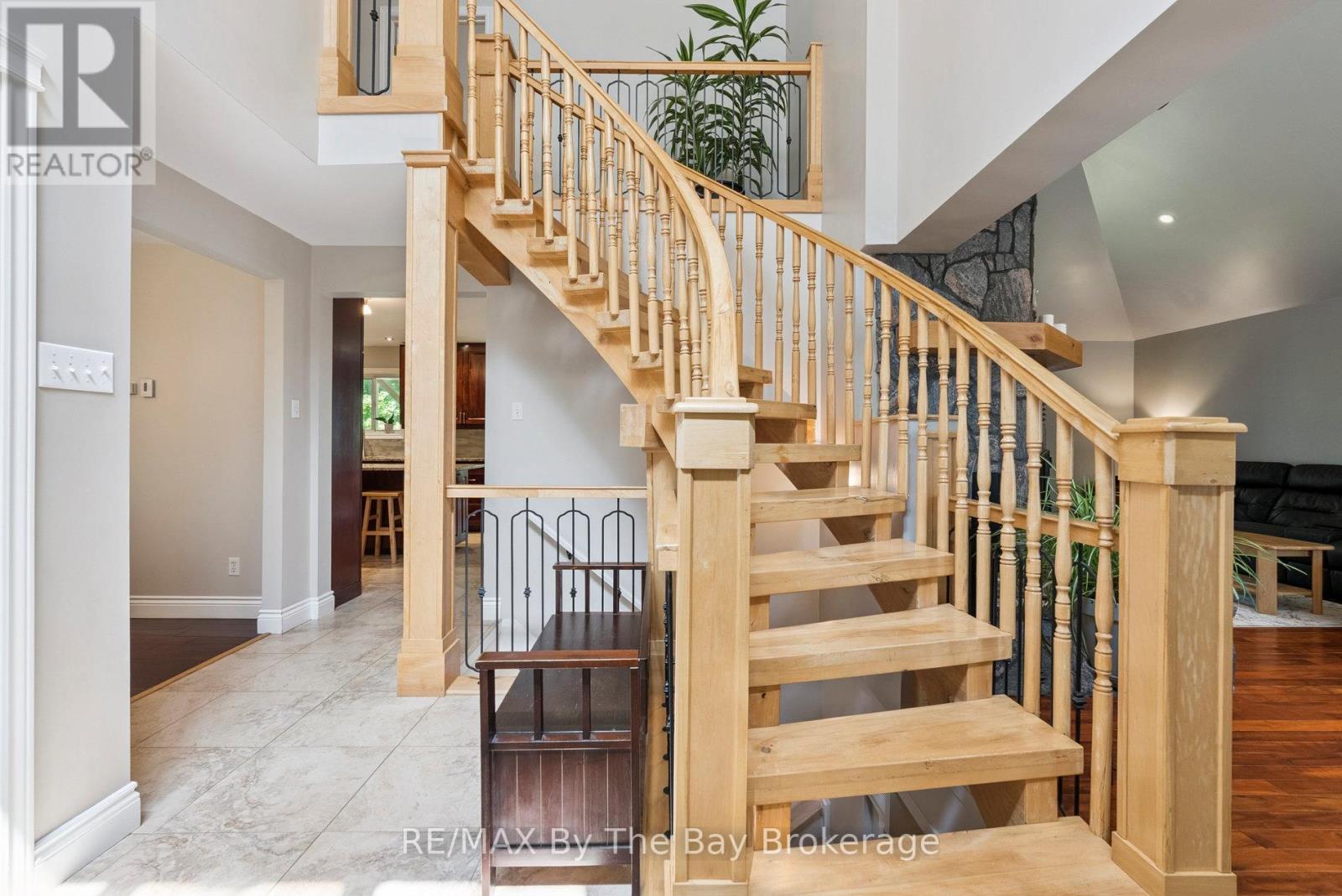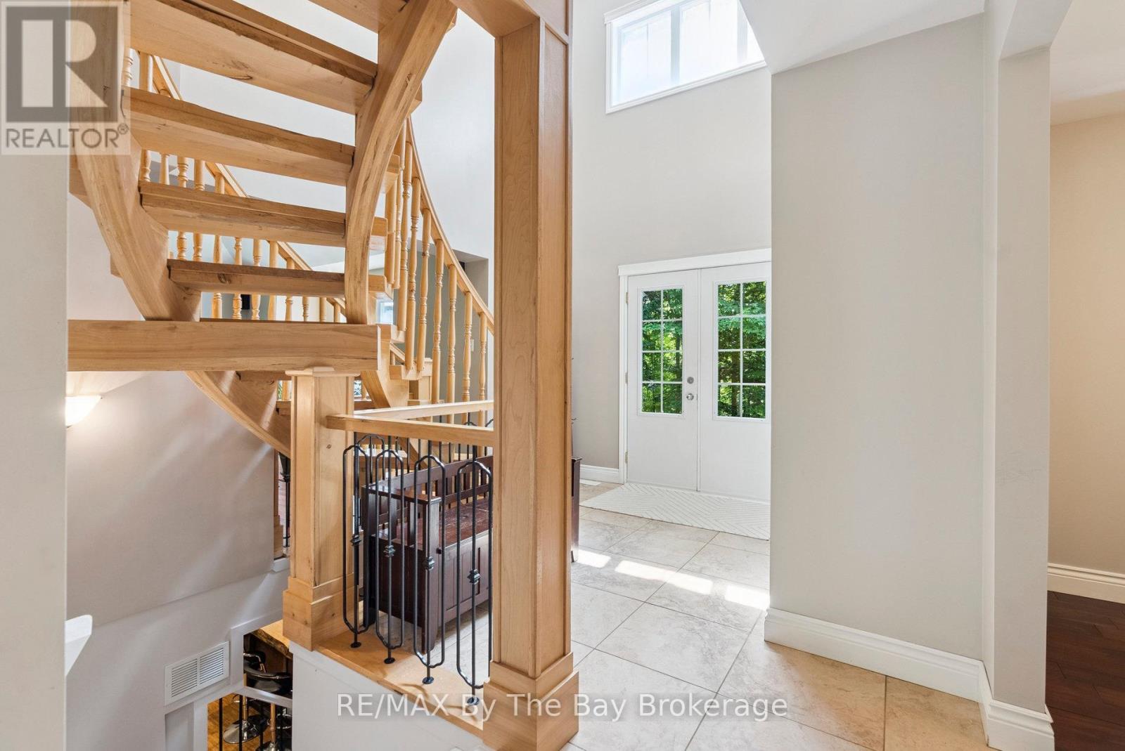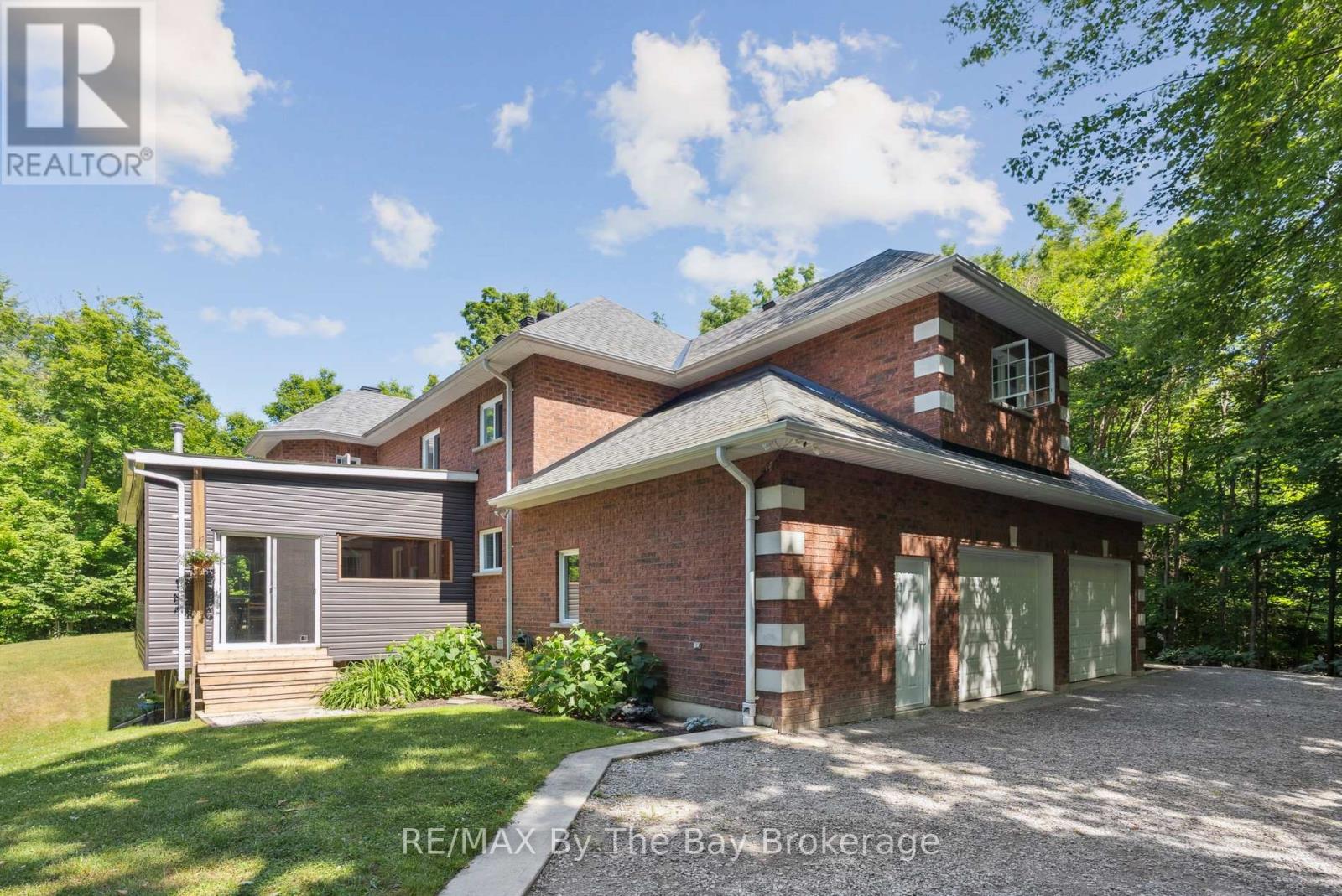Welcome to your dream home, a stunning all brick custom-built, carpet-free two-storey residence offering nearly 5,000 sq. ft. of finished living space on 2.7 private acres. With 4 bedrooms, 4 bathrooms, and a main floor den that could serve as a 5th bedroom, this home is ideal for families, multigenerational living, or anyone seeking space & privacy. From the moment you arrive, you'll be captivated by the mature trees & fresh country breeze. Inside, a handcrafted maple staircase from a tree once on the property greets you with charm & character. The open-concept main floor offers cherry hardwood flooring & a spectacular floor-to-ceiling stone fireplace with a high-efficiency wood-burning insert. The kitchen features cherry cabinetry, granite counters, a walk-in pantry, & a layout designed for those who love to cook & entertain. A walkout leads to a sunroom & deck overlooking the private backyard. Upstairs showcases maple hardwood throughout with generously sized bedrooms, including a luxurious primary suite. The main floor also includes laundry & interior access to a 2.5-car attached garage. The fully finished walkout basement provides incredible flexibility with a second wood-burning stove, bar area, rough-in for kitchenette (in-law potential), plus a massive cold room. Outdoors, a separate 34 x 40 detached shop is fully insulated, wired with 100-amp service, and includes its own driveway perfect for hobbyists, car enthusiasts, or extra workspace. Just off Simcoe County Rd 90 and minutes to Hwy 400, this home combines peaceful country living with commuter convenience. Walk to Simcoe Forest for swimming, hiking & outdoor adventure, with the Nottawasaga River nearby. Enjoy open views, total privacy, no rear neighbours, and the bonus of being on a school bus route serenity, space & nature all in one.