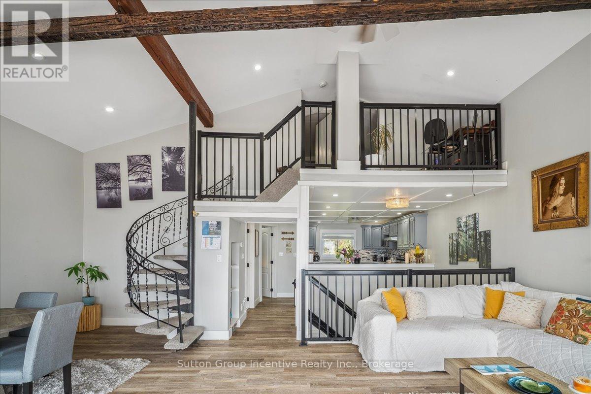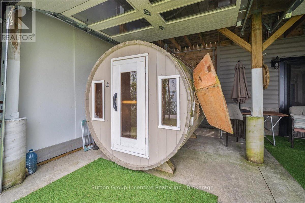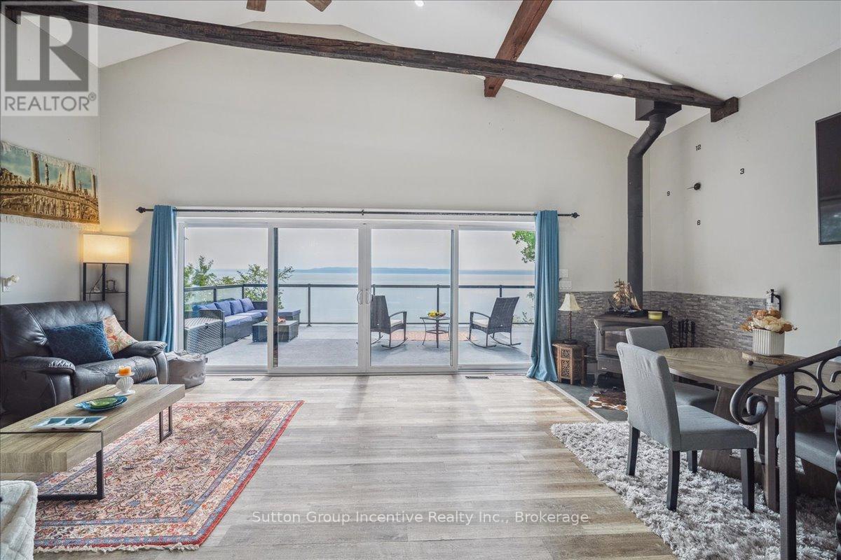 Gratify Yourself With This Meticulously Designed Waterfront Gem on Georgian Bay,This stunning east-facing waterfront property on Georgian Bay rises above the rest with its thoughtful design, exceptional features, and prime location. Offering two full-sized kitchens and a light-filled, functional layout across every level, its an ideal setup for multi-generational living or savvy investors seeking income potential.A true rarity in the area, the charming boathouse adds both character and value to this exceptional offering. Set on over 0.44 acres, this multi-level, two-storey home includes an oversized detached garage and is perfectly positioned just minutes from Owen Sound and local amenities yet only under 3 hours from downtown Toronto. Skip the 400-series traffic and embrace the true cottage lifestyle.Inside, the main level welcomes you with vaulted ceilings, a cozy wood stove, and breathtaking panoramic views. The oversized terrace is an entertainers dream, while main floor bedrooms and a full bath ensure comfort and flow.Upstairs, the loft space offers flexibility for a home office or storage. One of the two upper bedrooms includes a private sink, perfect for a nursery or as an added touch of convenience.The lower level features a modern open-concept second kitchen, dining, and living area, along with two more bedrooms, a full bath, and a walk-out ideal for guests, renters, or in-laws.With Georgian Bay as your backyard and easy access to ski clubs, golf courses, trails, conservation areas, rivers, and lakes, this is truly a four-season playground. Whether you're into boating, fishing, hiking, motorsports, or hunting, this property offers the ultimate blend of work and play.Whether you're searching for a full-time residence or a luxurious family retreat, this is a rare opportunity to own your own slice of paradise on Georgian Bay.A must-see to truly be appreciated.