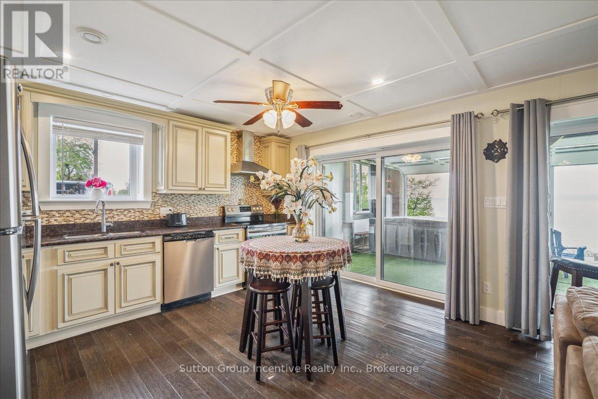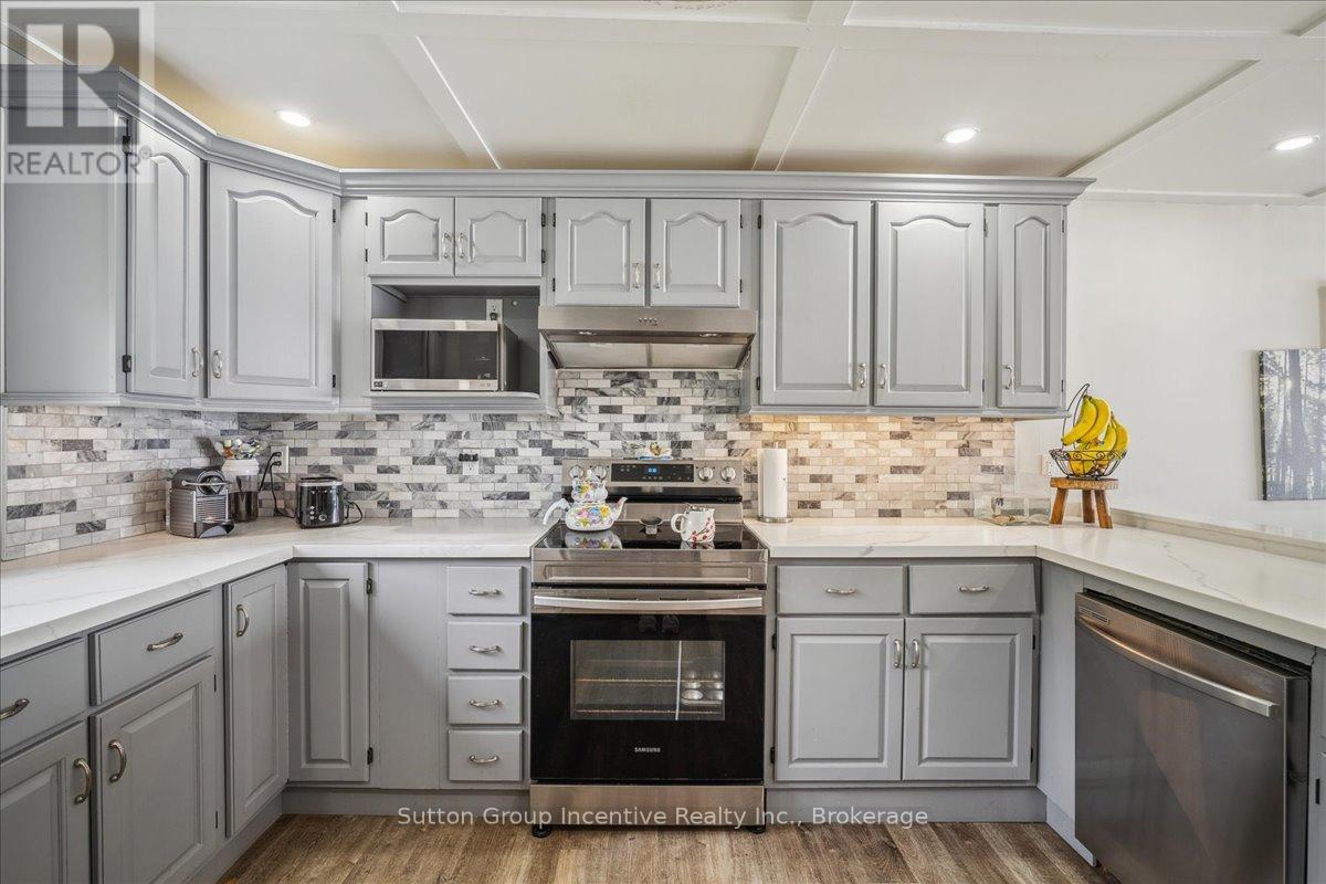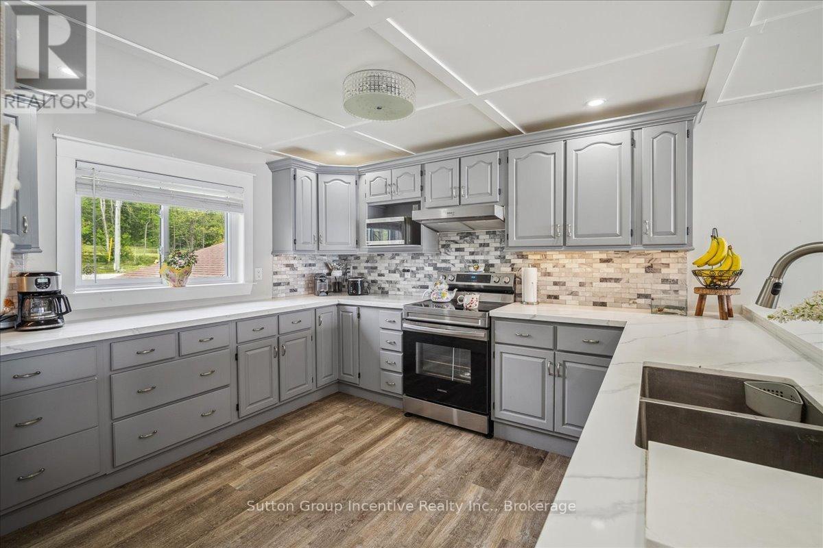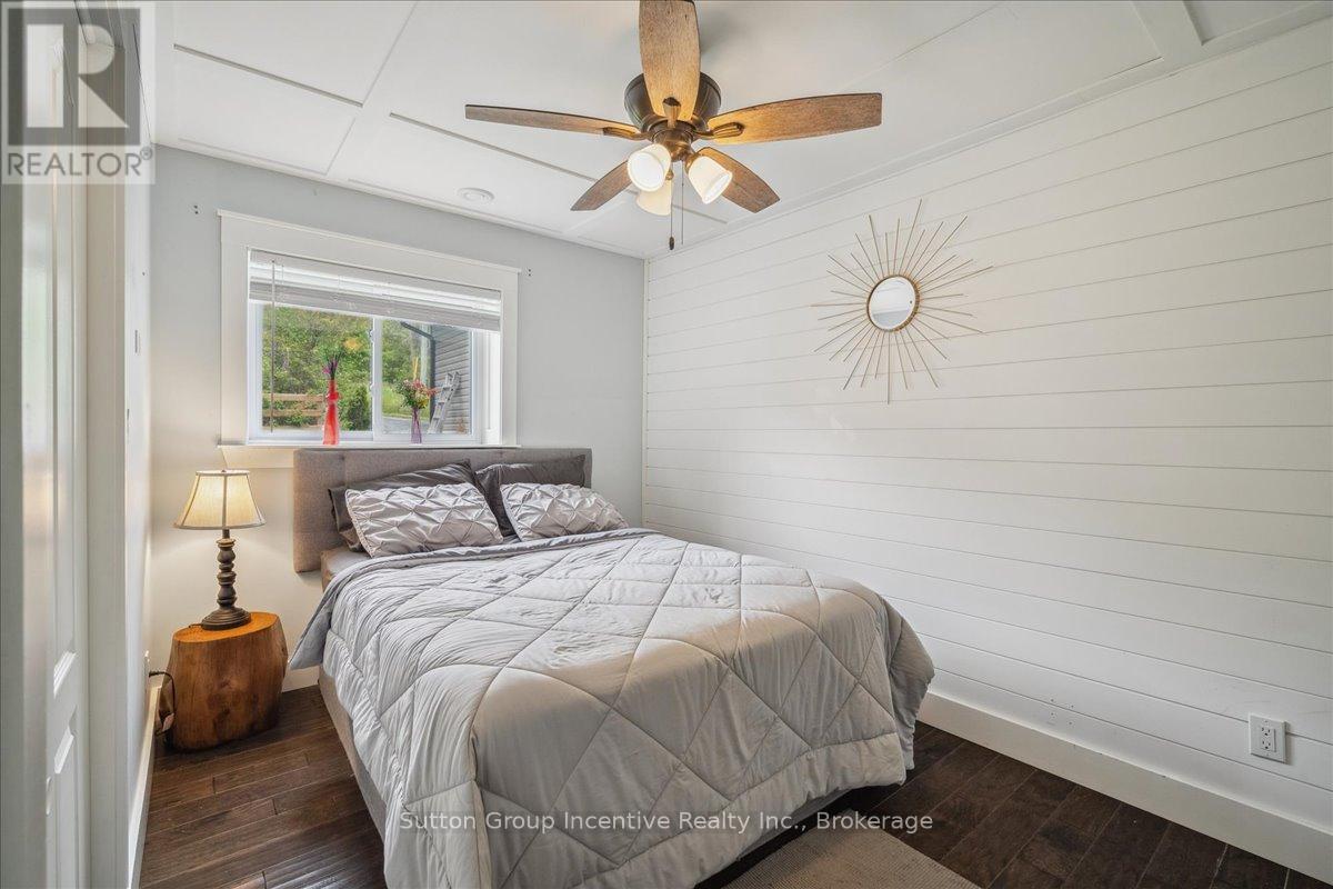 Gratify Yourself With This Meticulously Designed Waterfront Gem on Georgian Bay,This stunning east-facing waterfront property on Georgian Bay rises above the rest with its thoughtful design, exceptional features, and prime location. Offering two full-sized kitchens and a light-filled, functional layout across every level, its an ideal setup for multi-generational living or savvy investors seeking income potential.A true rarity in the area, the charming boathouse adds both character and value to this exceptional offering. Set on over 0.44 acres, this multi-level, two-storey home includes an oversized detached garage and is perfectly positioned just minutes from Owen Sound and local amenities yet only under 3 hours from downtown Toronto. Skip the 400-series traffic and embrace the true cottage lifestyle.Inside, the main level welcomes you with vaulted ceilings, a cozy wood stove, and breathtaking panoramic views. The oversized terrace is an entertainers dream, while main floor bedrooms and a full bath ensure comfort and flow.Upstairs, the loft space offers flexibility for a home office or storage. One of the two upper bedrooms includes a private sink, perfect for a nursery or as an added touch of convenience.The lower level features a modern open-concept second kitchen, dining, and living area, along with two more bedrooms, a full bath, and a walk-out ideal for guests, renters, or in-laws.With Georgian Bay as your backyard and easy access to ski clubs, golf courses, trails, conservation areas, rivers, and lakes, this is truly a four-season playground. Whether you're into boating, fishing, hiking, motorsports, or hunting, this property offers the ultimate blend of work and play.Whether you're searching for a full-time residence or a luxurious family retreat, this is a rare opportunity to own your own slice of paradise on Georgian Bay.A must-see to truly be appreciated.