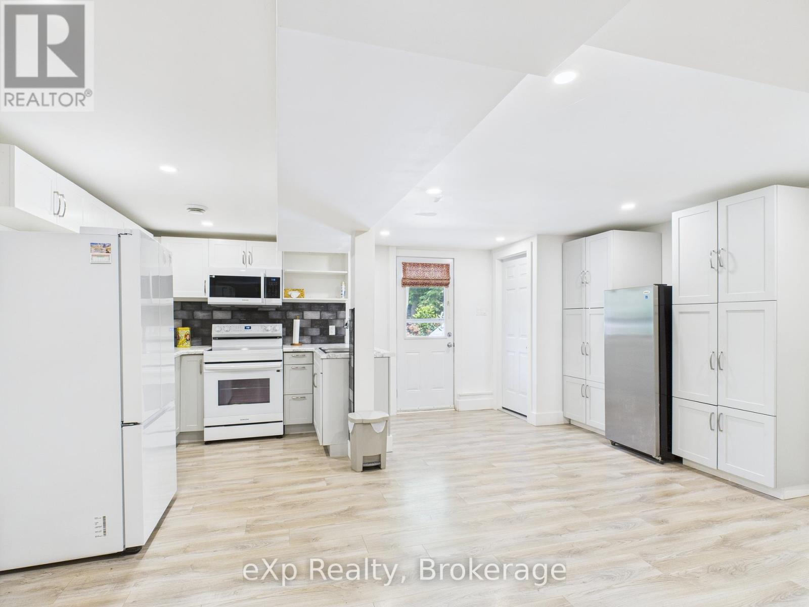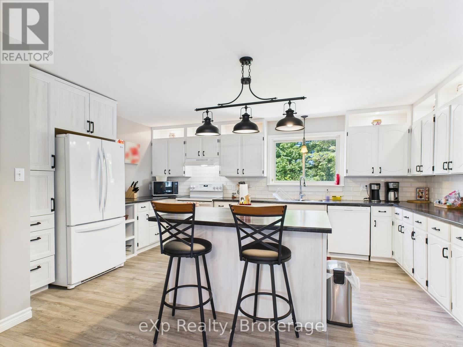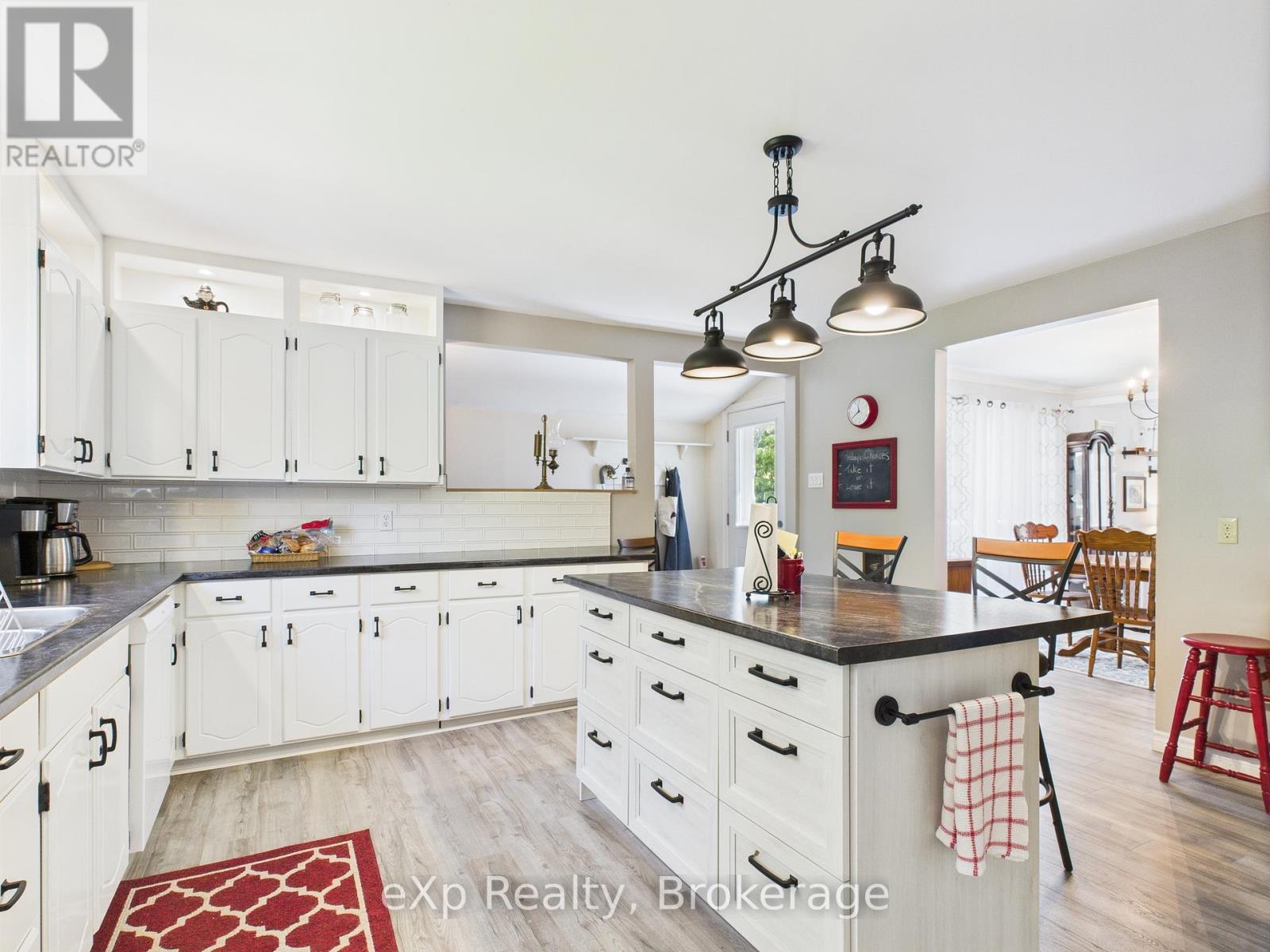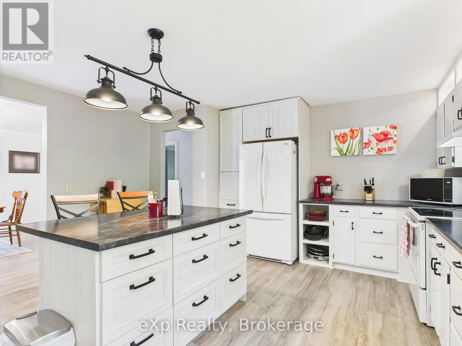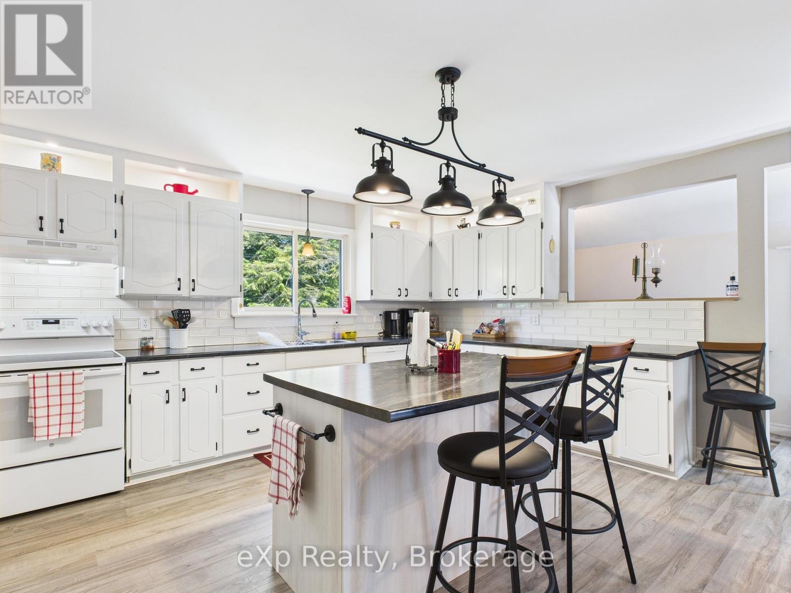 Welcome to your dream retreat in the heart of Point Clark, a charming cottage town renowned for its relaxed lakeside atmosphere and natural beauty. This exceptional raised bungalow is ideally situated just one block from the beach, offering you easy access to sun, sand, and stunning Lake Huron sunsets. Enjoy the expansive wrap-around porch, perfect for relaxing or entertaining.Step inside to discover a thoughtfully updated main floor, featuring a spacious kitchencompletely redone in 2023with plenty of room for culinary adventures. Brand new upstairs flooring (2023) adds a fresh, modern touch, seamlessly connecting to the inviting living and dining area. Three generously sized bedrooms provide ample space for family or guests.The fully finished walkout basement, newly updated in 2023 as guest accommodations, expands your living options with its own full kitchen, two additional bedrooms, a full bathroom, and a convenient laundry area. Warm up by the wood-burning fireplace on chilly evenings, or take advantage of the separate entrance for in-law suite potential or rental income. Large windows bring in plenty of light, creating a bright and welcoming lower level that feels anything but below ground. Step outside to discover an impressive backyard oasis. The large, fully fenced yard is surrounded by mature trees, offering privacy and a peaceful, park-like setting. Entertain or unwind on the spacious deck or soak in the hot tub. Enjoy the new 8x10 shed added in 2022 for all your outdoor gear. Eavestrough covers (2022) provide practical protection, while a new furnace and AC (2022) ensure year-round comfort. Enjoy all the benefits of a strong connection to the outdoors while savoring the unique character and tranquility that Point Clark has to offer. Just steps from the beach, this is more than a home; it's a lifestyle. Dont miss your chance to own this exceptional raised bungalow in one of Ontarios most beloved cottage communities. Schedule your private tour today!