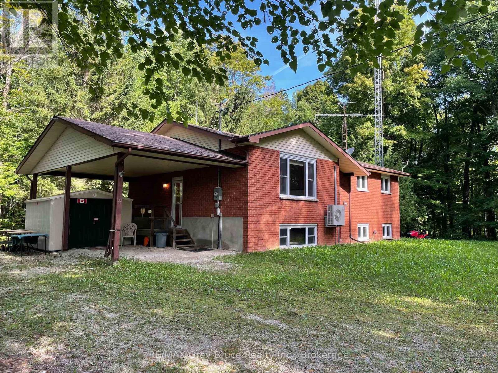 Discover country living at its best in this charming brick bungalow, located just 7 km from Rockford on the desirable Derry Line. Set on over 5 private acres and surrounded by mature trees, this property offers peace, privacy, and a beautiful natural setting, all within a short drive to Owen Sound and Chatsworth. Inside, the home is bright and spacious, featuring a welcoming dining area with patio doors that open to a deck, perfect for relaxing or entertaining outdoors. The main floor offers three comfortable bedrooms, along with a full 4-piece bath. The lower level provides even more living space with a large rec room, two piece bath, plus the potential for a fourth bedroom, workshop, or hobby space to suit your needs. With three sheds and a carport there is tons of space for all your toys. With trails nearby, conservation areas like Bognor Marsh, and Inglis Falls just a short drive away this property is truly a naturalists delight. Whether you're looking for a quiet retreat, room for a growing family, or space to enjoy the outdoors, this sought-after location is a rare find.