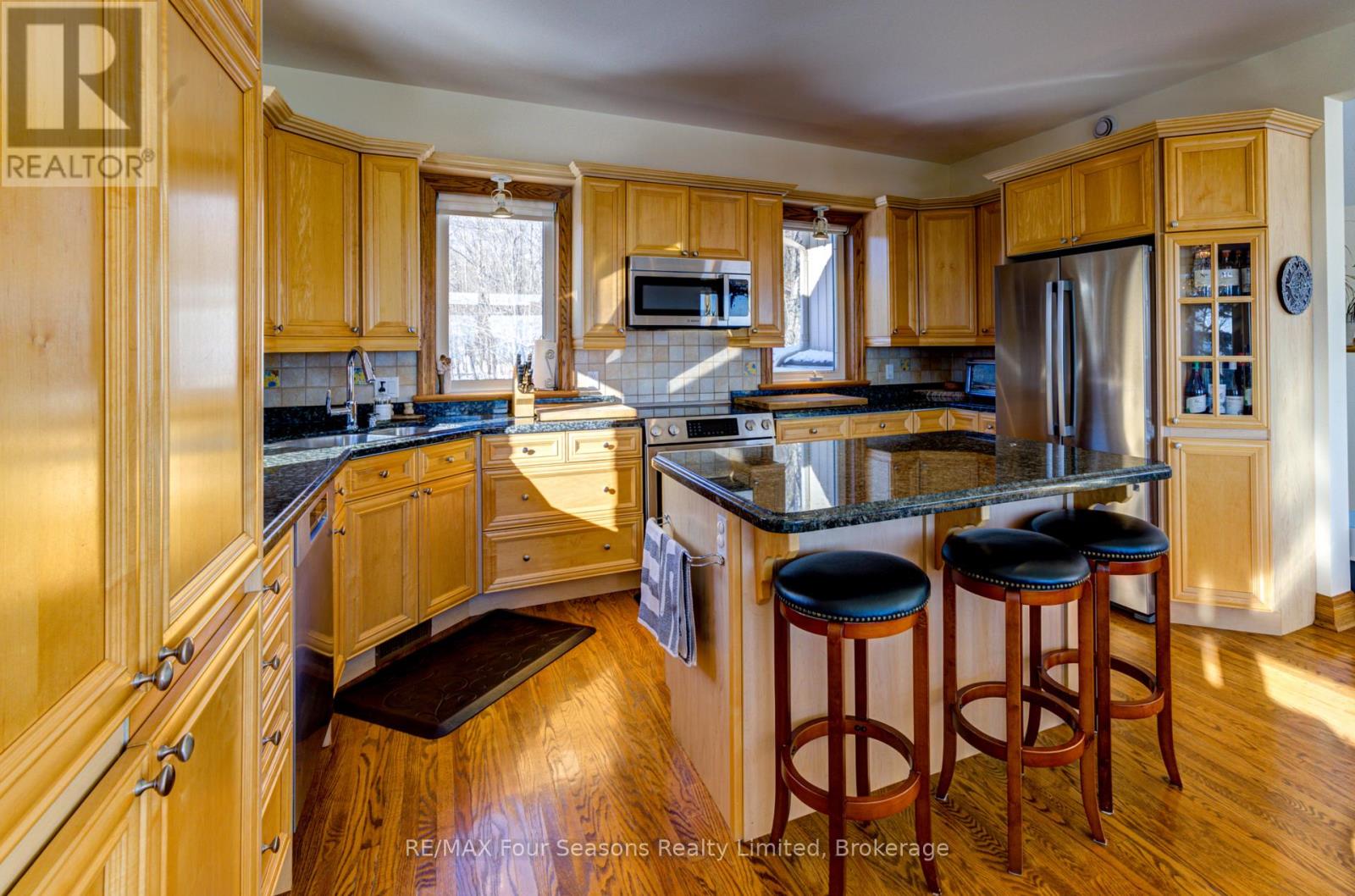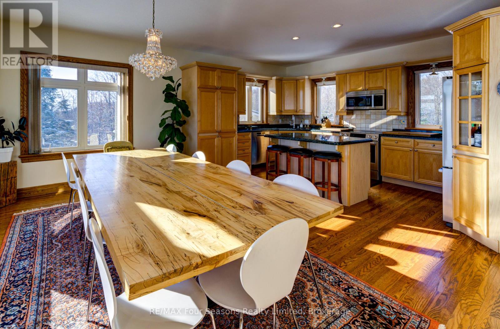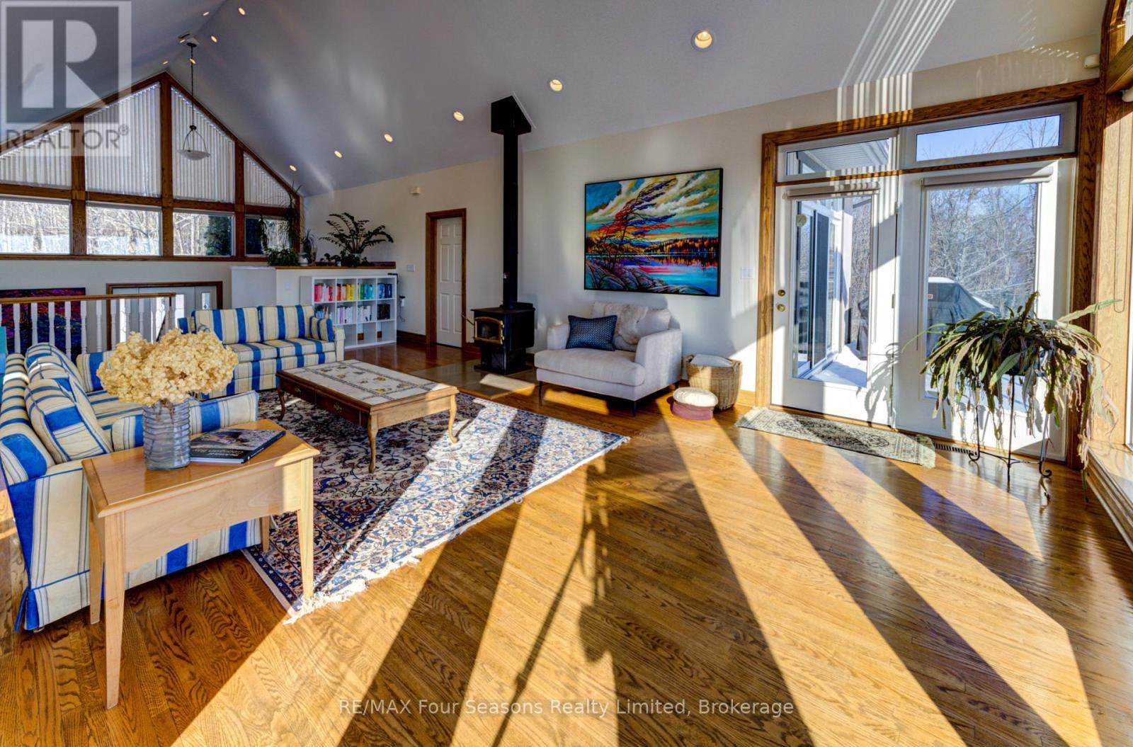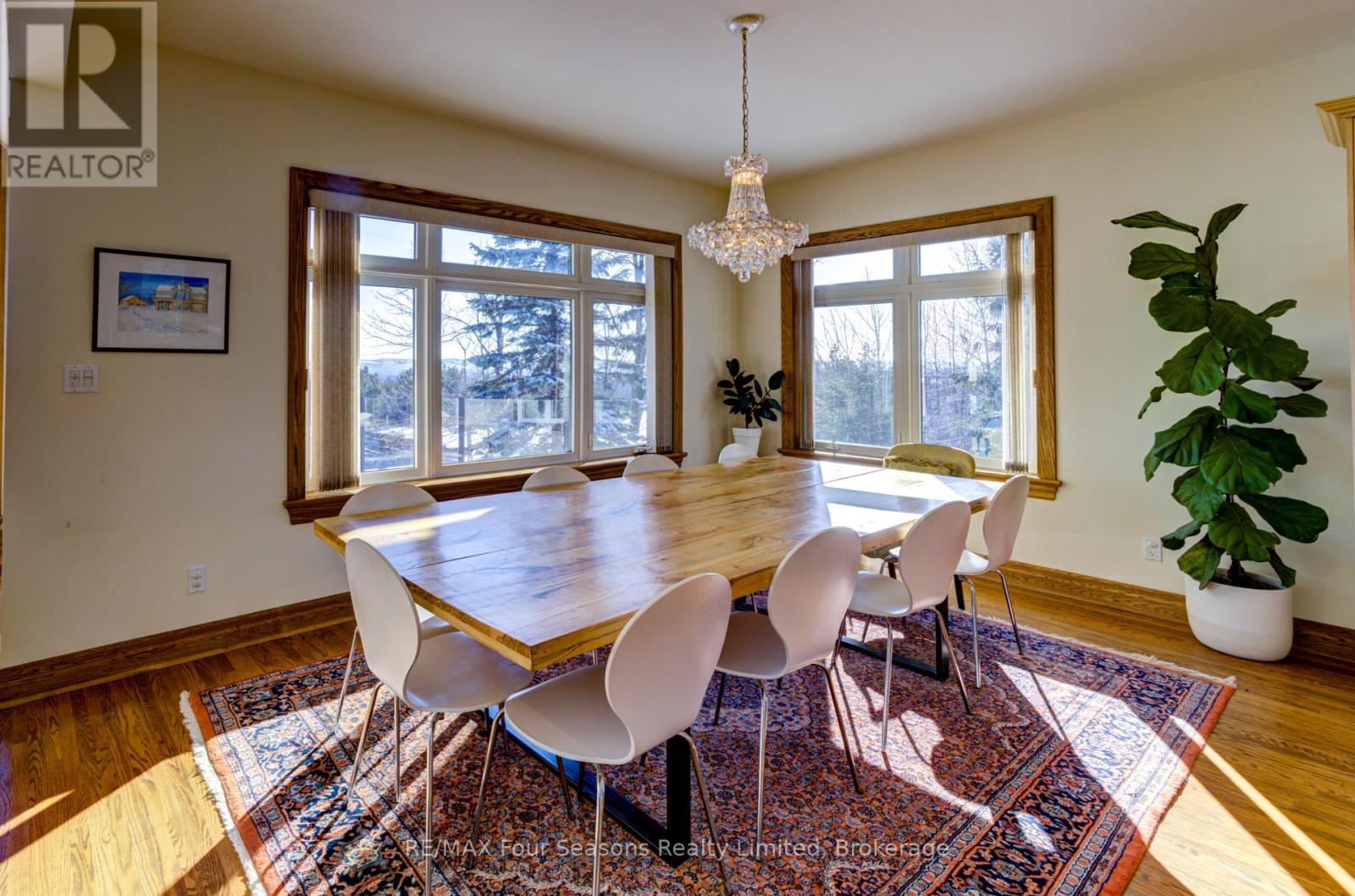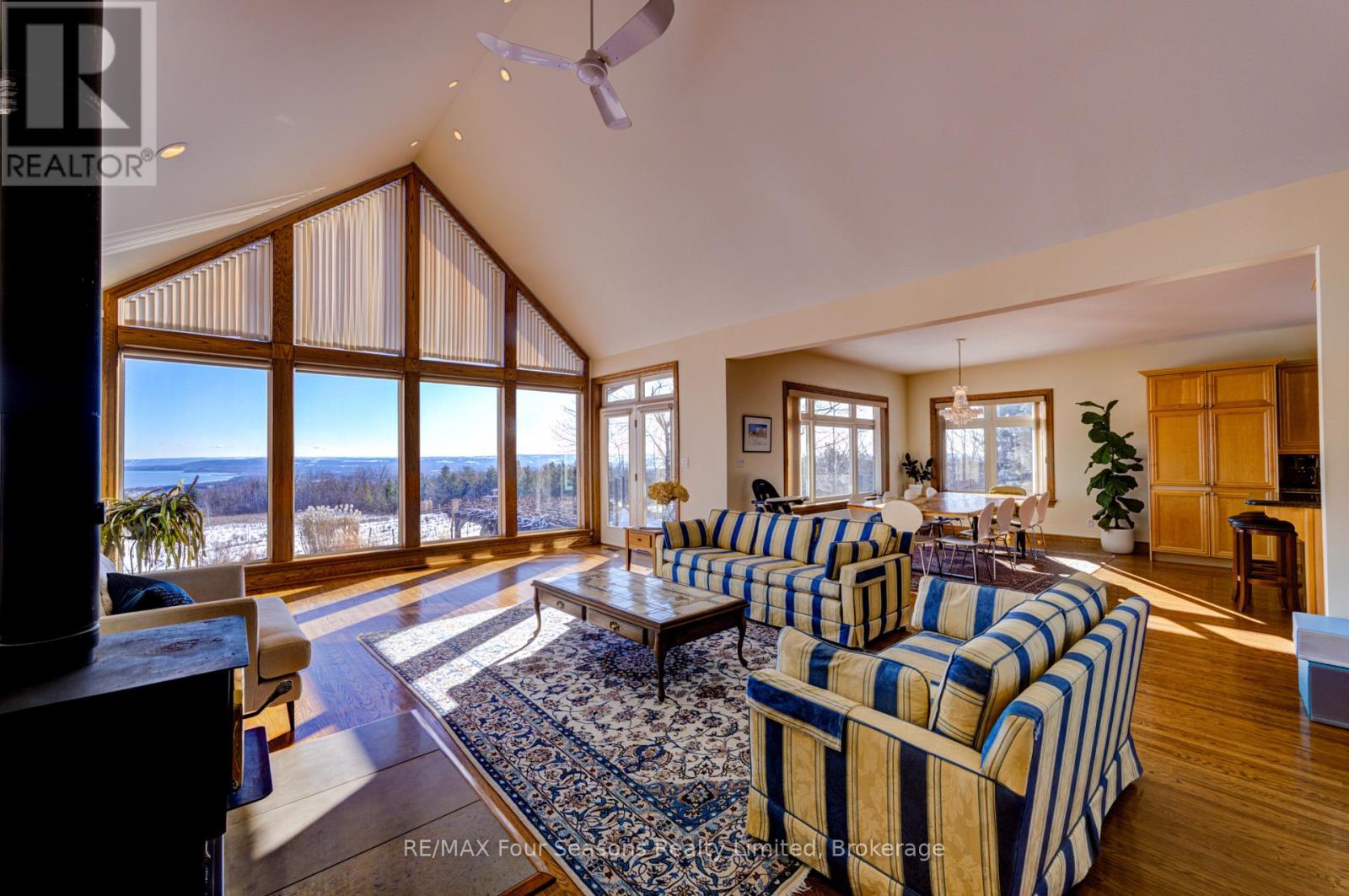 A must-see 4-bedroom retreat with sweeping Georgian Bay and Escarpment views on 18 acres of private forest, vineyard and rolling landscape. Available for annual or short-term lease. Fully furnished and crafted for relaxation, this home offers a spa-like escape with a sauna, cold plunge and dedicated training room. Spend winter days exploring the property's peaceful open spaces, snowshoeing through the forest, or strolling the quiet grounds - then return to cozy up by the fire, unwind with family, or entertain friends while taking in the expansive views. Panoramic windows and vaulted ceilings frame the scenery from the living room, while the bright walkout level opens to outdoor areas perfect for gathering. Enjoy nearby quiet beaches, scenic cycling roads, and quick access to top ski hills-all while living in complete privacy. A rare offering for tenants seeking serenity, space and an elevated four-season lifestyle.