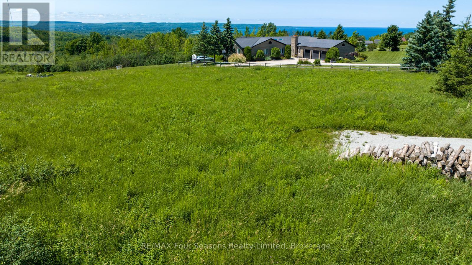 1.69 acre building lot with breathtaking valley and bay views The majority of the lot is flat, with a gentle slope at the back, making it an ideal location for a bungalow with a walkout basement. The property's location is highly convenient, as it is only minutes away from downtown Meaford and a short drive to Thornbury, where you can enjoy a wide range of amenities. The region offers world-class golf courses, skiing opportunities, a picturesque harbour for boating, excellent restaurants, theaters, and shopping options. With the vast space provided by this lot, you have the opportunity to build your dream home and fully immerse yourself in the stunning views. Finding great building lots is challenging enough, but finding one with such remarkable views is even rarer. To ensure compliance with any height restrictions and setbacks that may apply, contact for further information. Additionally, thanks to the western exposure, you'll have the pleasure of witnessing lovely sunsets from your backyard, which overlooks unobstructed views of the valley and the Escarpment. Don't miss the chance to secure this exceptional property and start turning your dream home into a reality, while enjoying the beauty of the surrounding landscape.