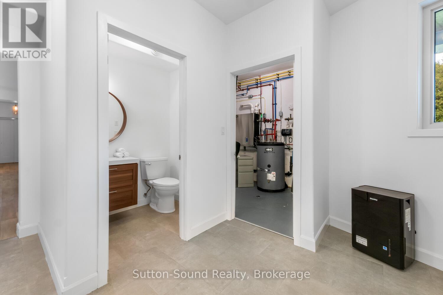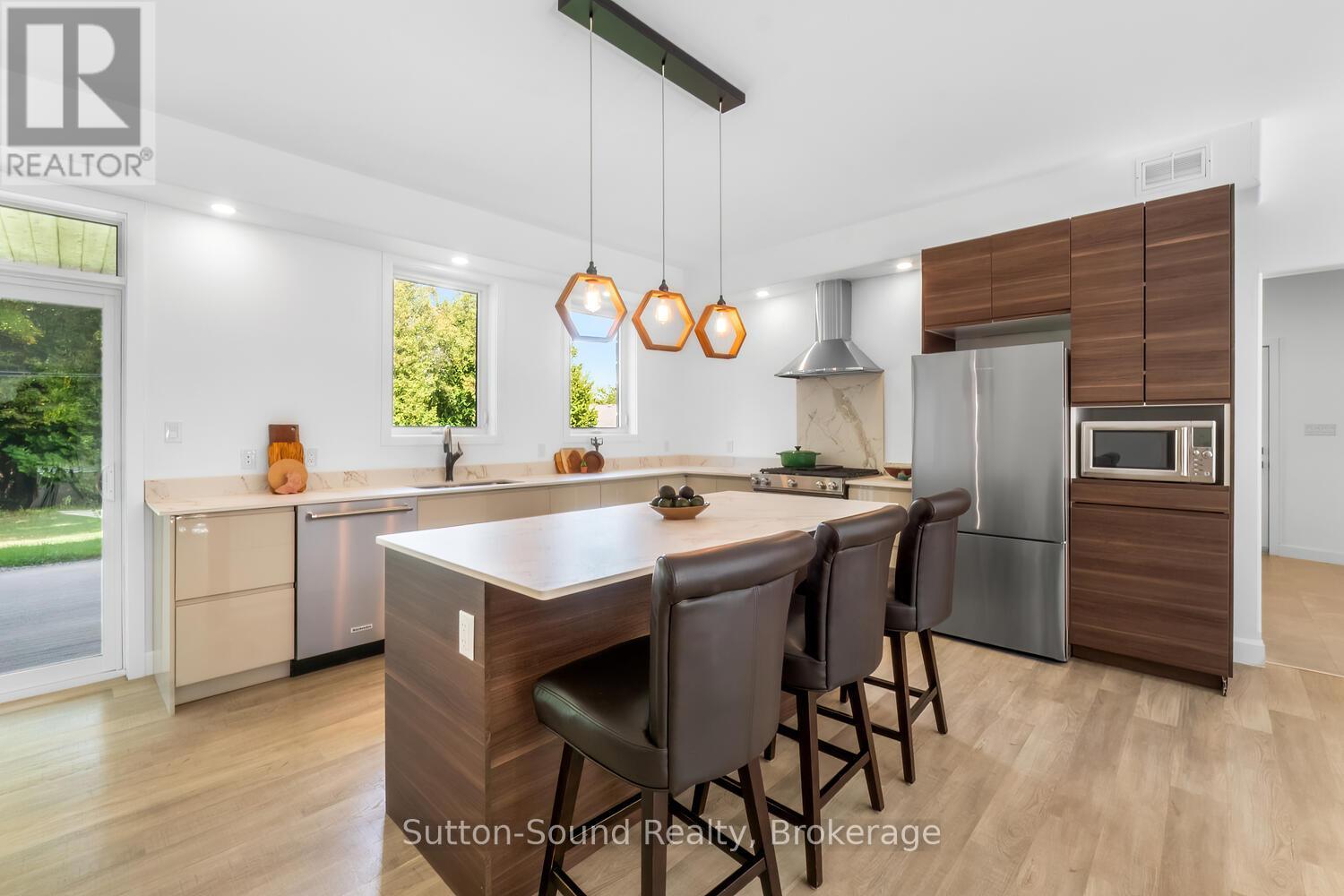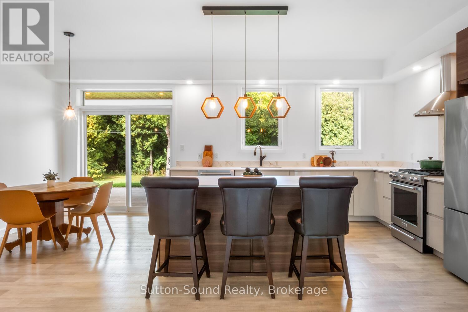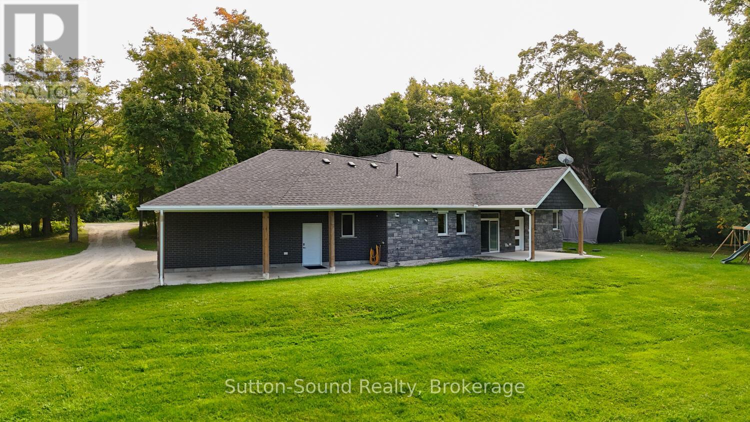 Discover this thoughtfully designed 2 bedroom, 1.5 bathroom bungalow, built in 2018 with sturdy stone and brick construction. Offering comfort, style, and convenience all on one level, its an excellent option for retirees or anyone seeking easy living. The covered front entry welcomes you with no steps into the home, ensuring accessibility for everyone. Inside, you'll find yourself at the heart of the home in a spacious open-concept living area, where high ceilings and large windows fill the space with natural light. A cozy propane fireplace adds warmth and charm to the living room, while the modern kitchen boasts stainless steel appliances, a gas stove, and a large island with seating - perfect for gathering with family or friends. The seamless flow of the layout makes it ideal for both everyday living and entertaining. The primary bedroom features ensuite access to a luxurious 4-piece bathroom, complete with a walk-in shower and relaxing soaker tub. Across the hall, the second bedroom overlooks the private backyard. The laundry room, equipped with a Maytag washer and gas dryer, offers a walkout to the covered patio - an inviting space to enjoy the outdoors. Additional conveniences include abundant closet storage and a handy 2-piece bathroom located off the garage, perfect for guests. Radiant in-floor heating throughout the home ensures steady, efficient warmth all year round. Outside, the property offers plenty of space and parking options with an attached 2 car garage, additional carport, and dual driveway access with fresh gravel, allowing for a circular drive. Set on a generous 1-acre lot, this home provides room to relax and enjoy nature, while still being just minutes from the amenities of Lions Head, Georgian Bay, hiking trails, and more. Blending modern design with the ease of one-level living, this home is a welcoming retreat on the beautiful Bruce Peninsula.