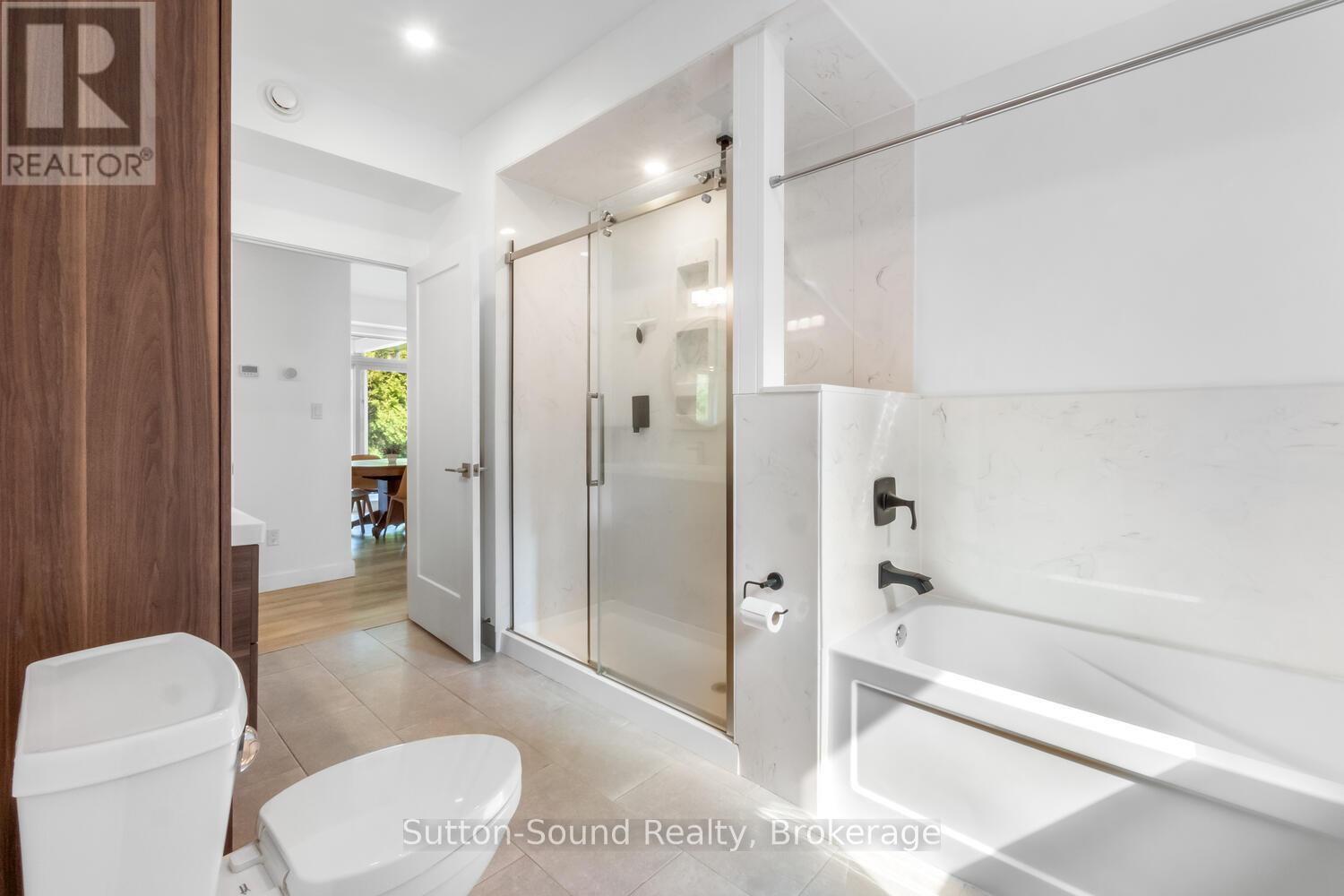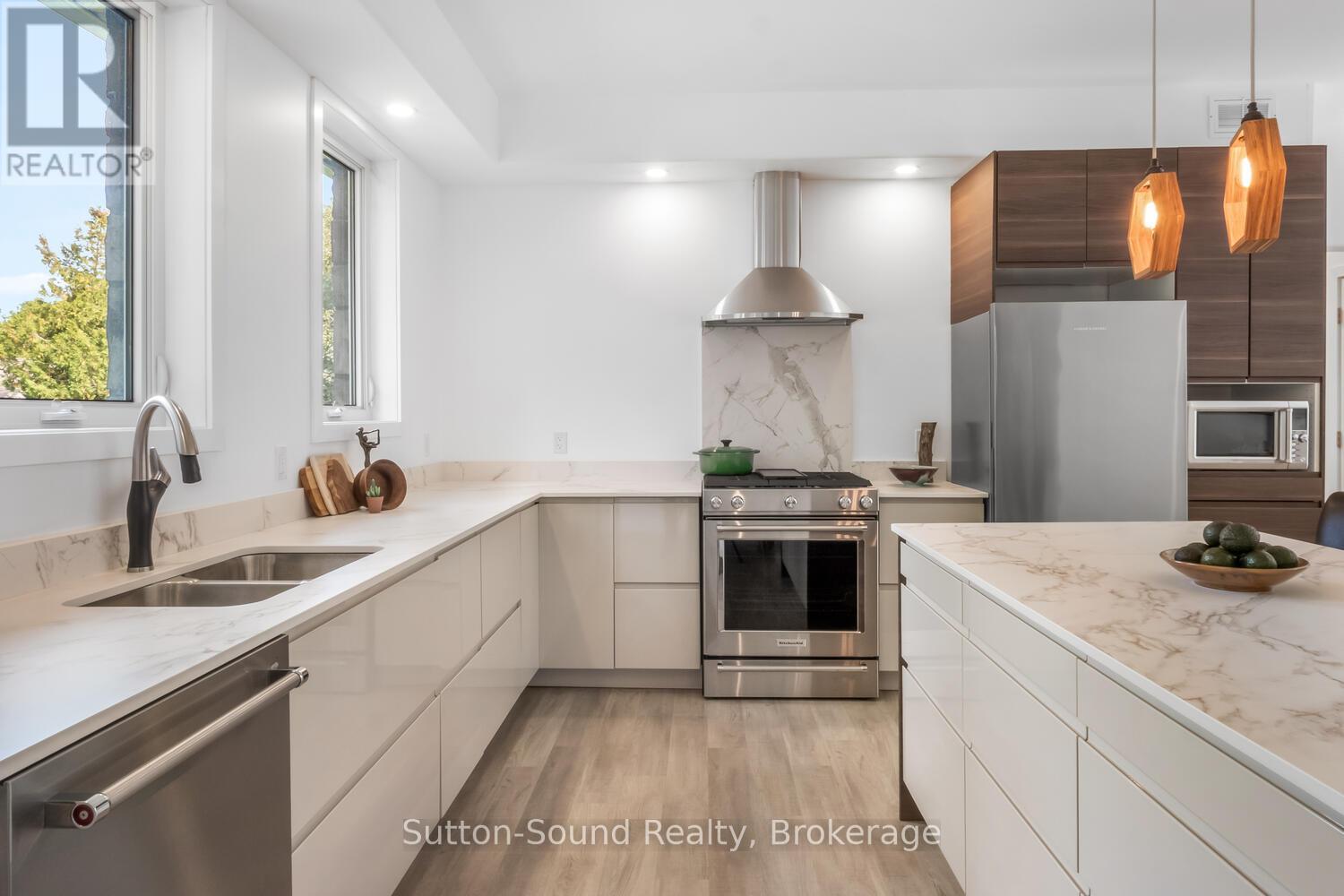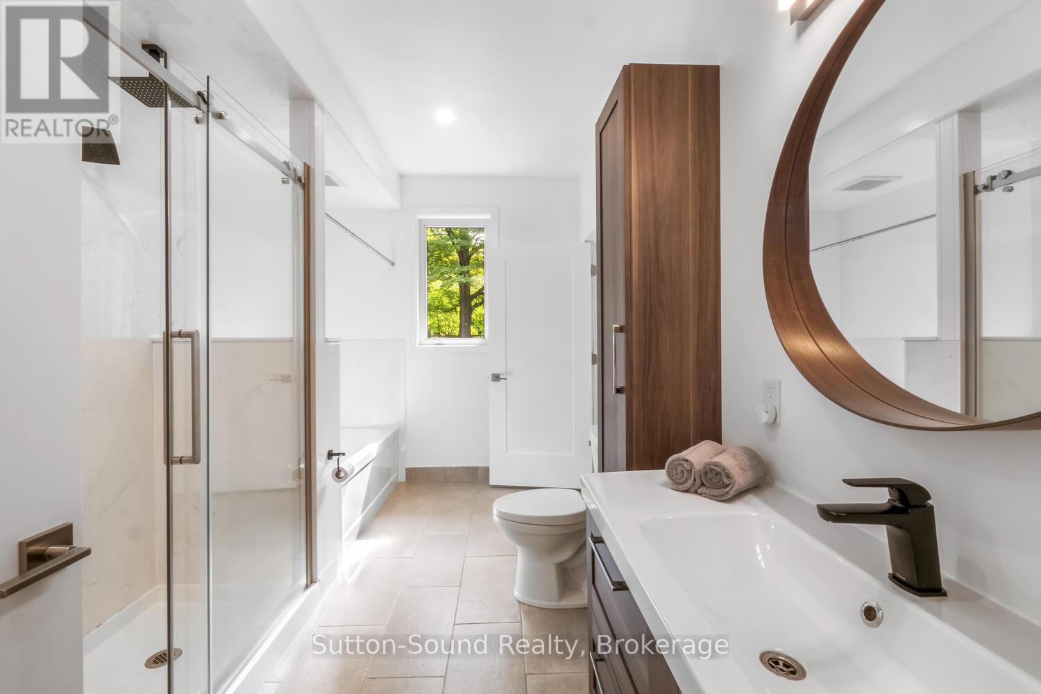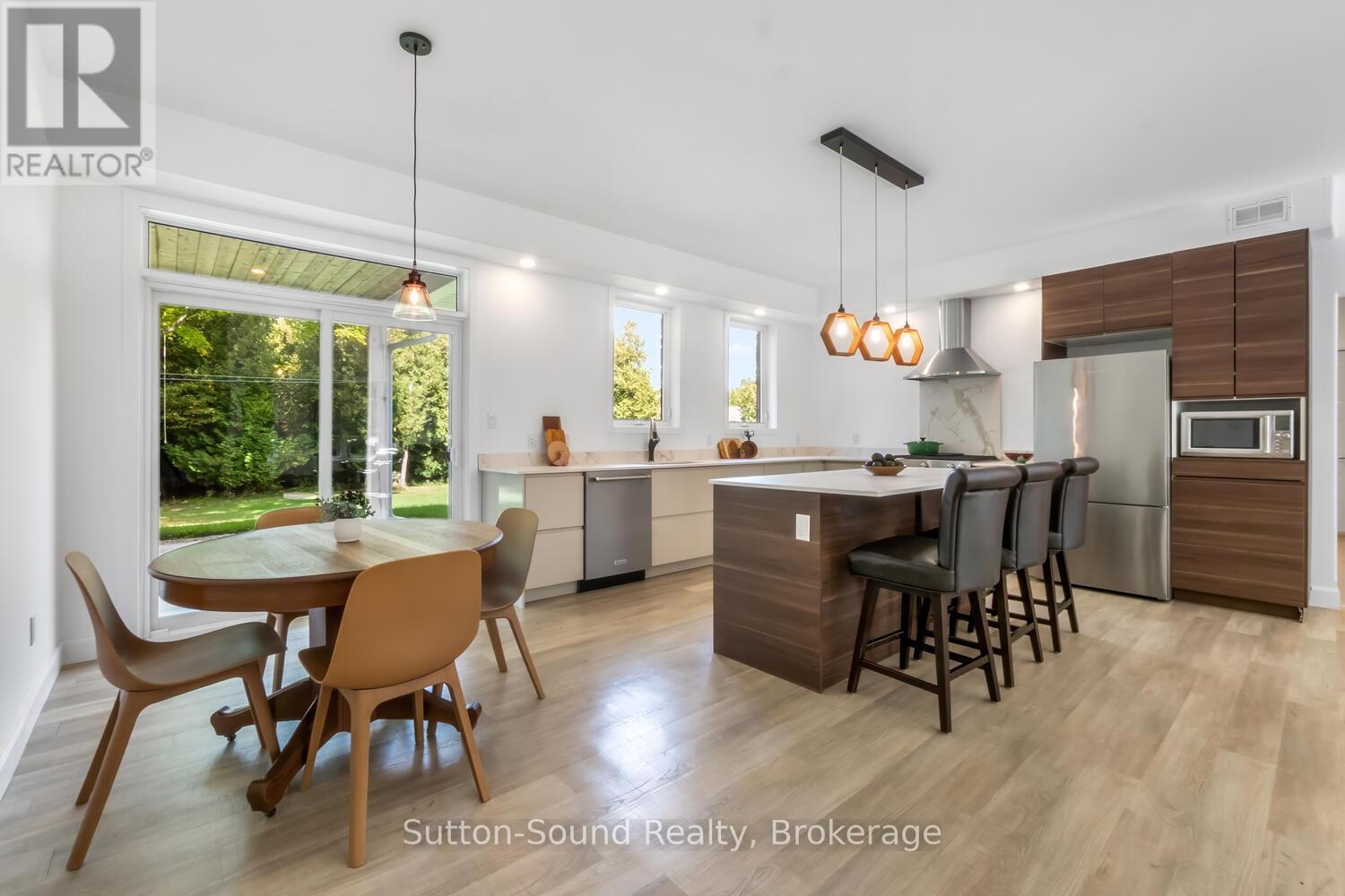 Discover this thoughtfully designed 2 bedroom, 1.5 bathroom bungalow, built in 2018 with sturdy stone and brick construction. Offering comfort, style, and convenience all on one level, its an excellent option for retirees or anyone seeking easy living. The covered front entry welcomes you with no steps into the home, ensuring accessibility for everyone. Inside, you'll find yourself at the heart of the home in a spacious open-concept living area, where high ceilings and large windows fill the space with natural light. A cozy propane fireplace adds warmth and charm to the living room, while the modern kitchen boasts stainless steel appliances, a gas stove, and a large island with seating - perfect for gathering with family or friends. The seamless flow of the layout makes it ideal for both everyday living and entertaining. The primary bedroom features ensuite access to a luxurious 4-piece bathroom, complete with a walk-in shower and relaxing soaker tub. Across the hall, the second bedroom overlooks the private backyard. The laundry room, equipped with a Maytag washer and gas dryer, offers a walkout to the covered patio - an inviting space to enjoy the outdoors. Additional conveniences include abundant closet storage and a handy 2-piece bathroom located off the garage, perfect for guests. Radiant in-floor heating throughout the home ensures steady, efficient warmth all year round. Outside, the property offers plenty of space and parking options with an attached 2 car garage, additional carport, and dual driveway access with fresh gravel, allowing for a circular drive. Set on a generous 1-acre lot, this home provides room to relax and enjoy nature, while still being just minutes from the amenities of Lions Head, Georgian Bay, hiking trails, and more. Blending modern design with the ease of one-level living, this home is a welcoming retreat on the beautiful Bruce Peninsula.