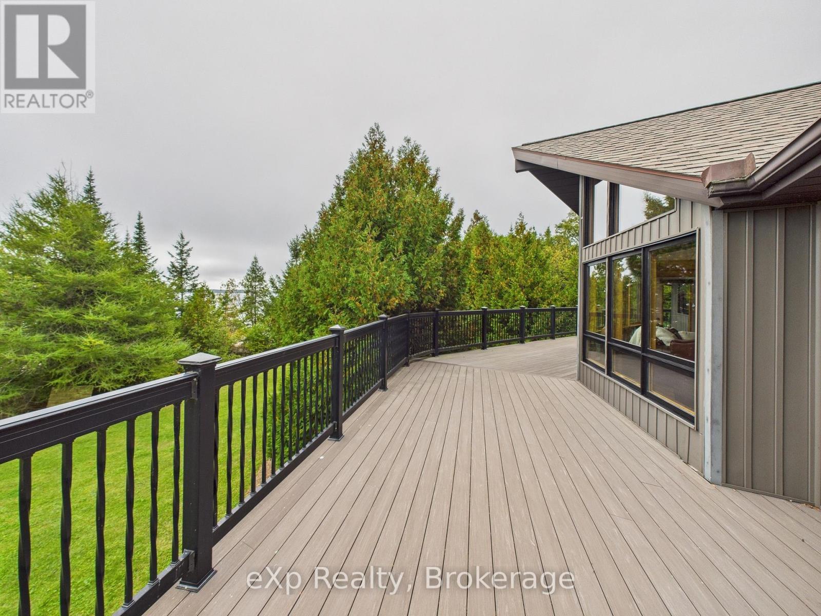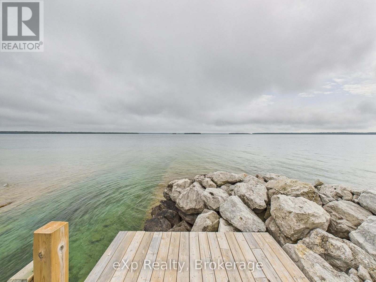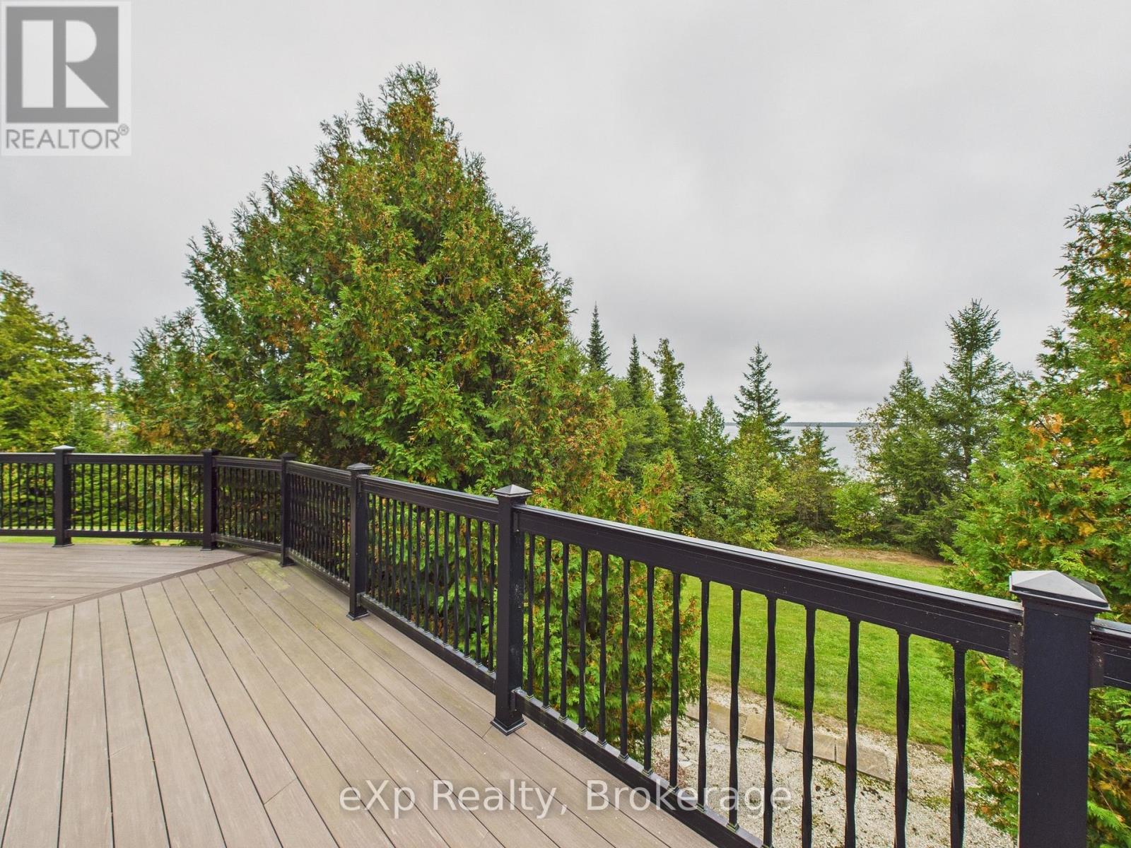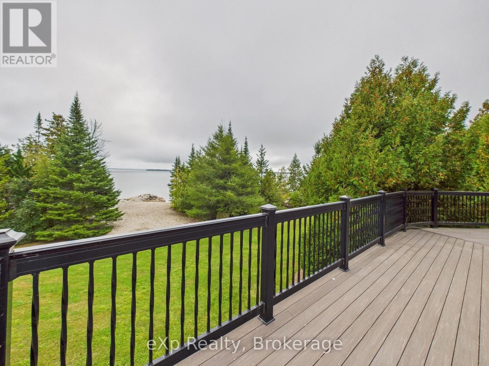 Welcome to 31 Goderich Point Loop, Northern Bruce Peninsula, a stunning waterfront sanctuary that guarantees exceptional privacy and showcases the beauty of nature. Nestled on a generous lot with crystal-clear waters and a private dock, this property is perfect for accommodating your watercraft, including larger boats, thanks to its ample depth. Constructed in 1996, this two-story residence encompasses four spacious bedrooms and three bathrooms, along with a walkout basement featuring multiple entrances. At the heart of the home lies a magnificent stone fireplace that enhances the inviting atmosphere throughout the space. The interior is adorned with exquisite wood finishes, while expansive windows allow an abundance of natural light and offer breathtaking views. Step outside onto the composite wraparound deck, ideal for entertaining or simply savoring the mesmerizing sunsets. A long driveway leads to the home, enhancing its secluded feel, while the double-car garage provides added convenience. Whether you're relishing a tranquil morning by the water or hosting gatherings with friends and family, this property is thoughtfully designed for relaxation and connection with the surrounding natural landscape.