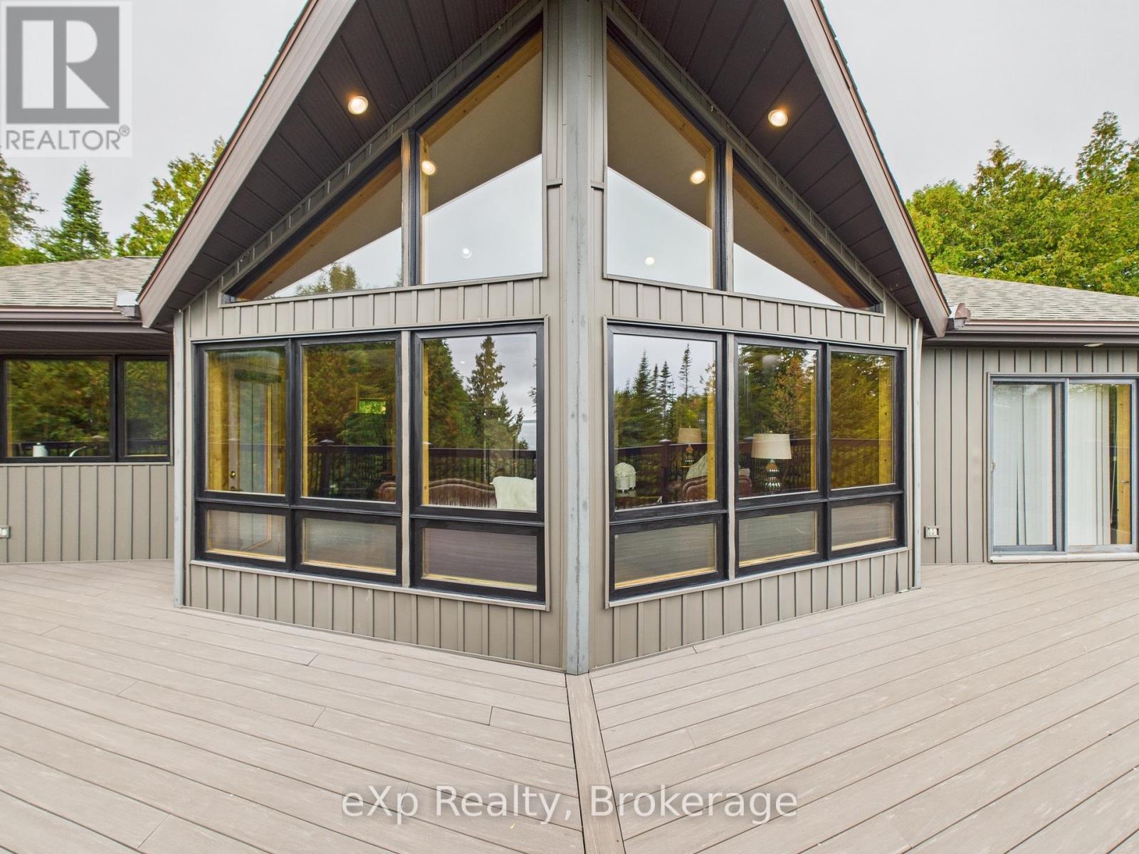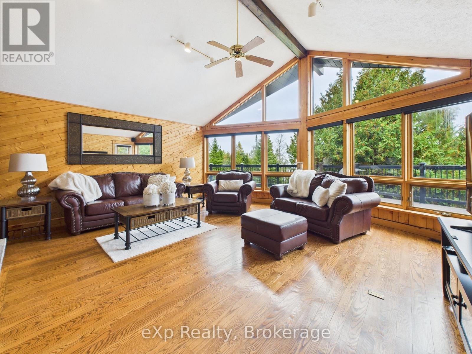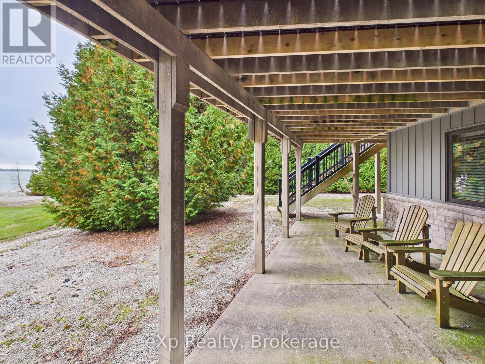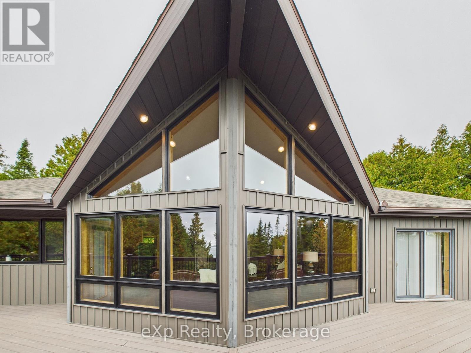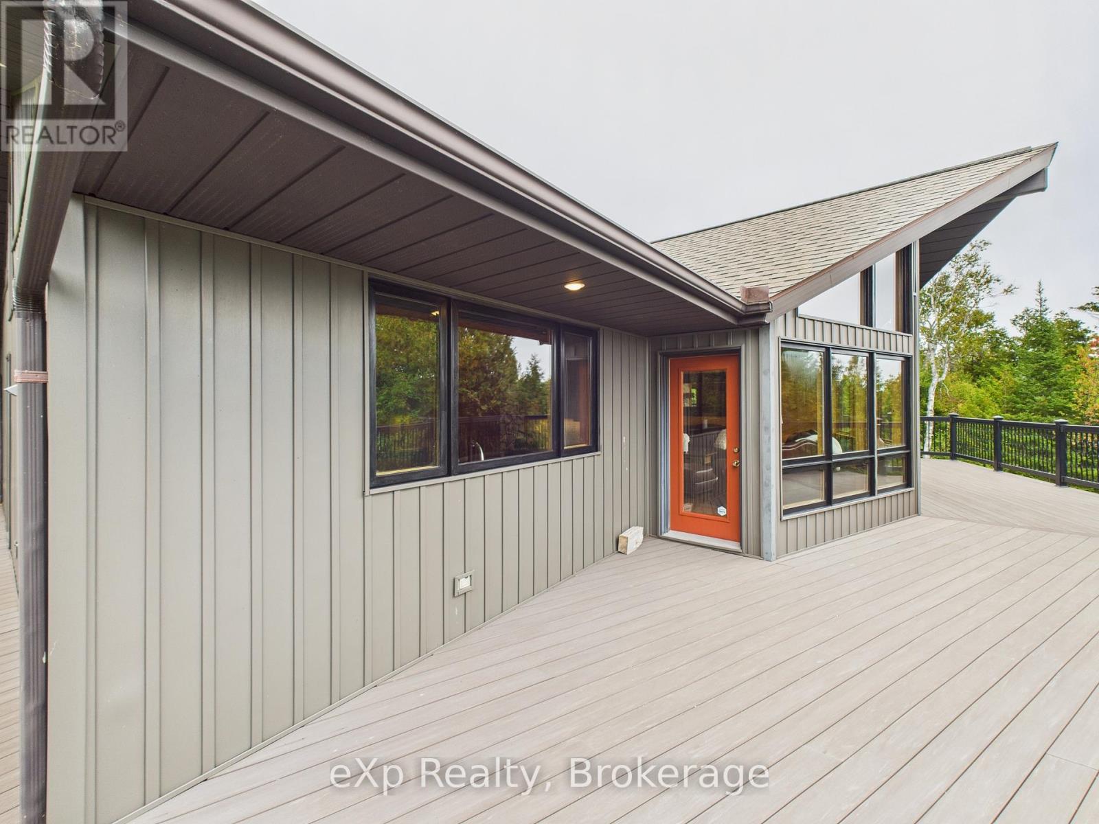 Welcome to 31 Goderich Point Loop, Northern Bruce Peninsula, a stunning waterfront sanctuary that guarantees exceptional privacy and showcases the beauty of nature. Nestled on a generous lot with crystal-clear waters and a private dock, this property is perfect for accommodating your watercraft, including larger boats, thanks to its ample depth. Constructed in 1996, this two-story residence encompasses four spacious bedrooms and three bathrooms, along with a walkout basement featuring multiple entrances. At the heart of the home lies a magnificent stone fireplace that enhances the inviting atmosphere throughout the space. The interior is adorned with exquisite wood finishes, while expansive windows allow an abundance of natural light and offer breathtaking views. Step outside onto the composite wraparound deck, ideal for entertaining or simply savoring the mesmerizing sunsets. A long driveway leads to the home, enhancing its secluded feel, while the double-car garage provides added convenience. Whether you're relishing a tranquil morning by the water or hosting gatherings with friends and family, this property is thoughtfully designed for relaxation and connection with the surrounding natural landscape.