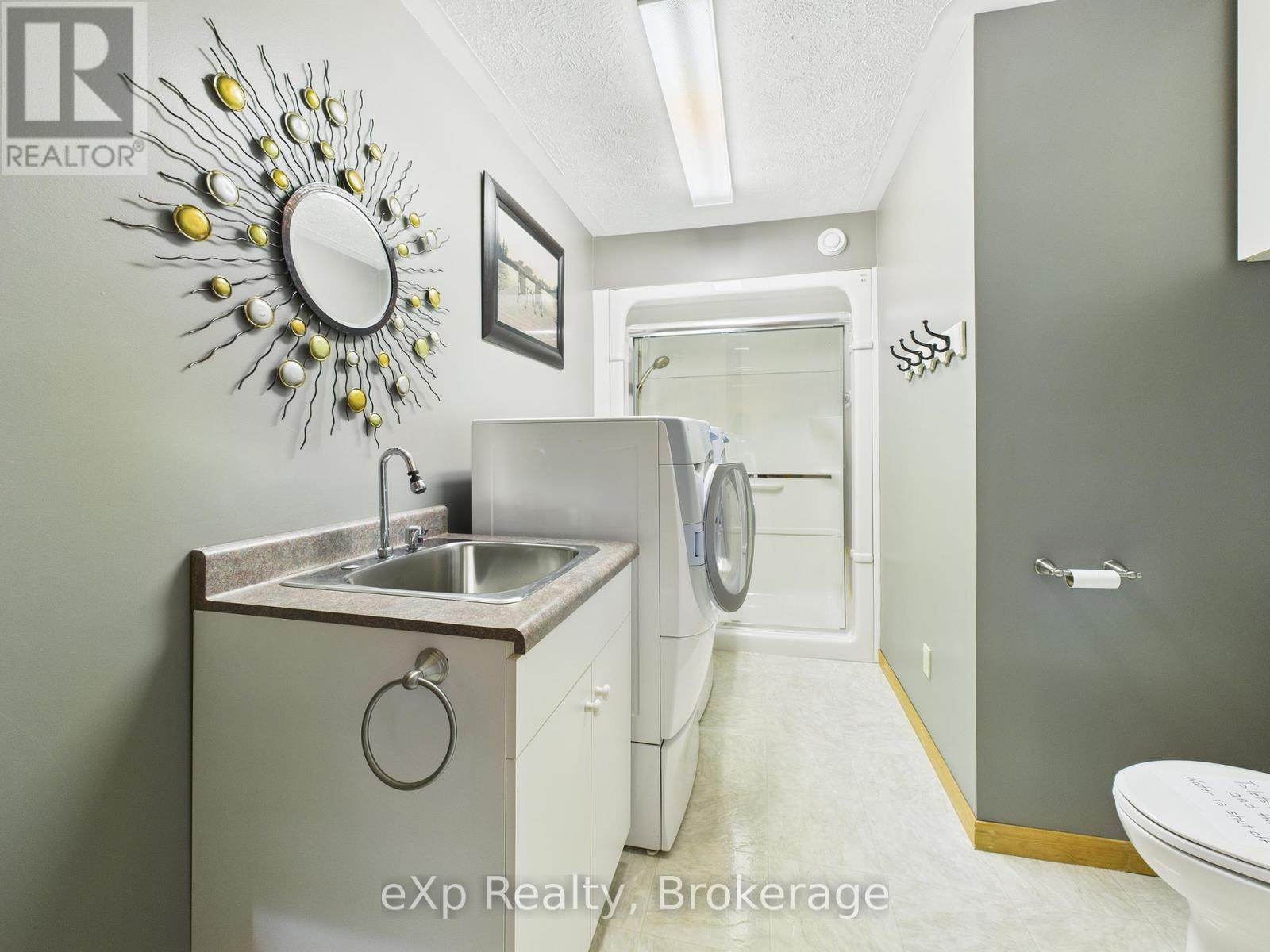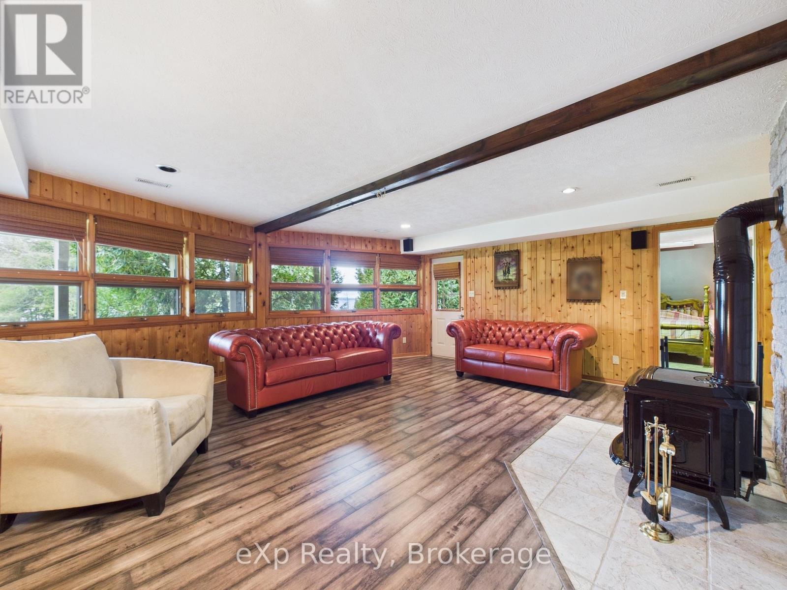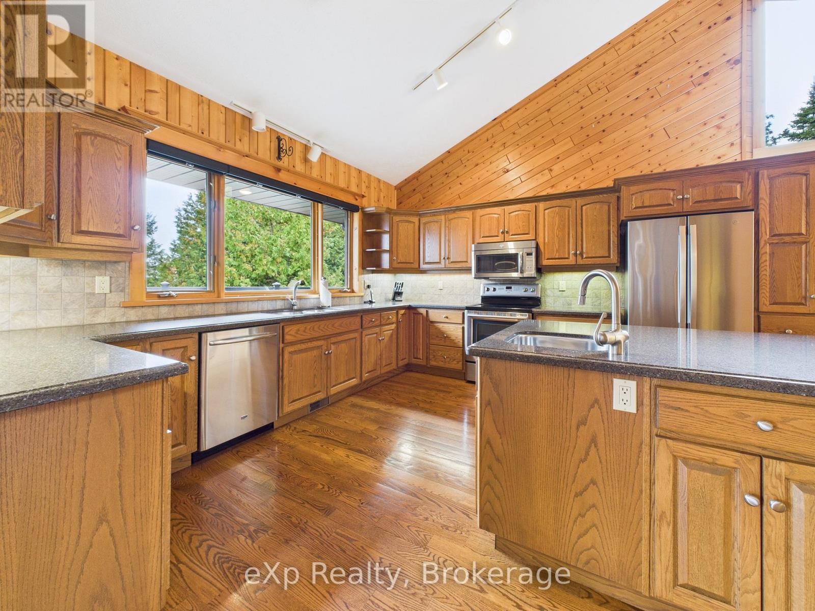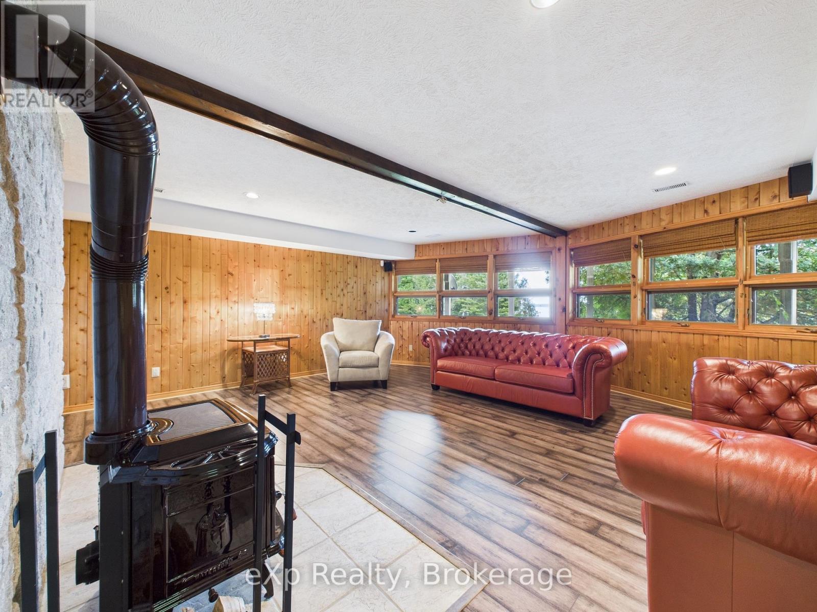 Welcome to 31 Goderich Point Loop, Northern Bruce Peninsula, a stunning waterfront sanctuary that guarantees exceptional privacy and showcases the beauty of nature. Nestled on a generous lot with crystal-clear waters and a private dock, this property is perfect for accommodating your watercraft, including larger boats, thanks to its ample depth. Constructed in 1996, this two-story residence encompasses four spacious bedrooms and three bathrooms, along with a walkout basement featuring multiple entrances. At the heart of the home lies a magnificent stone fireplace that enhances the inviting atmosphere throughout the space. The interior is adorned with exquisite wood finishes, while expansive windows allow an abundance of natural light and offer breathtaking views. Step outside onto the composite wraparound deck, ideal for entertaining or simply savoring the mesmerizing sunsets. A long driveway leads to the home, enhancing its secluded feel, while the double-car garage provides added convenience. Whether you're relishing a tranquil morning by the water or hosting gatherings with friends and family, this property is thoughtfully designed for relaxation and connection with the surrounding natural landscape.