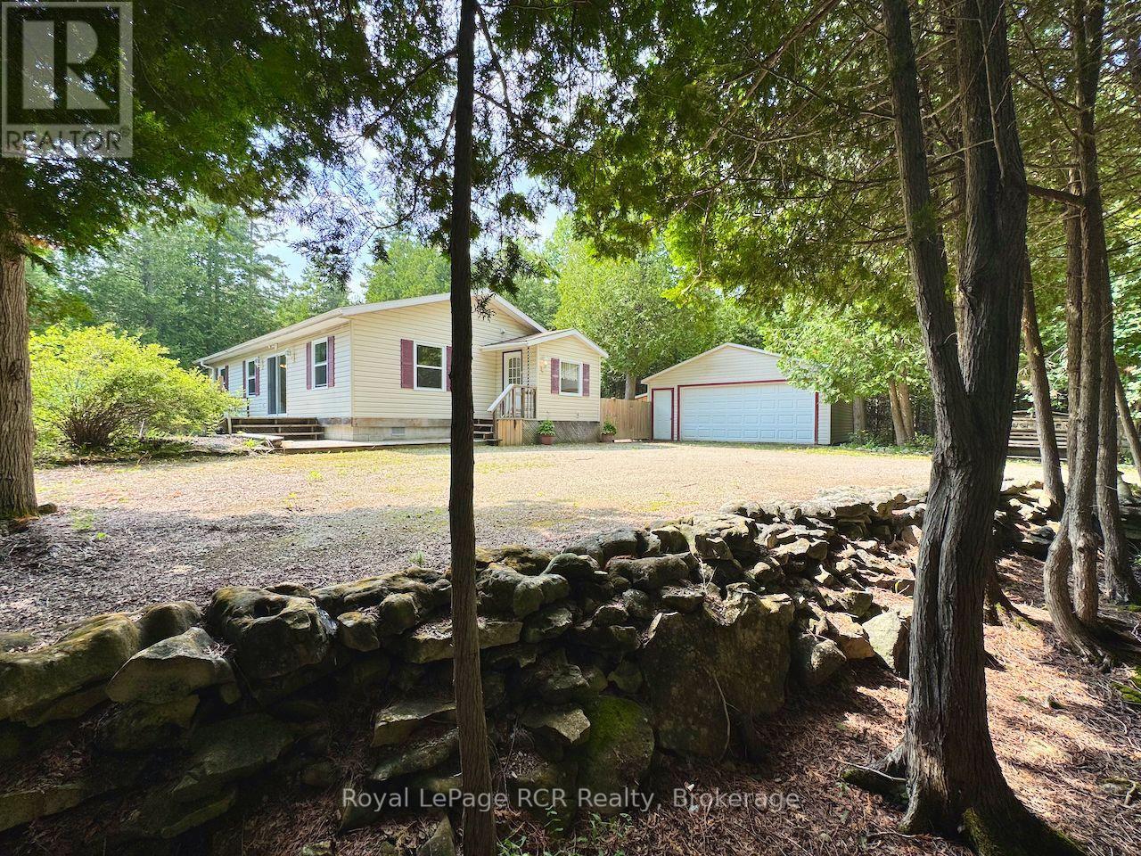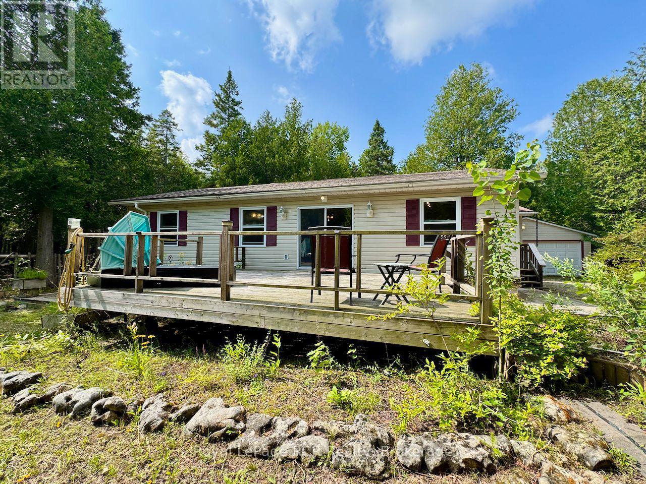 Condo Living in the Country ... might be a great way to describe 323 East Road! THE HOME ... an efficient1,255 sq ft raised bungalow offering one-floor living. 3 bedrooms, 2 bathrooms, great layout with mudroom entry and open-concept central living space with walkout to over 500 sq ft of raised decking. NATURAL WOOD KITCHEN with loads of STORAGE & BREAKFAST BAR. Newer 2008 BUILD, and well-maintained, incl NEW (2025) FORCED-AIR FURNACE & newer roof. THE PROPERTY ... 5.03 ACRES, private WINDING DRIVEWAY, natural rock LANDSCAPING & WILDFLOWERS, RAISED PLANTING BEDS - all surrounded by TREES, FOR YEAR-ROUND PRIVACY. 329ft x 729ft property has TRAILS throughout, with simply STUNNING LIMESTONE ROCK formations. 22ft x 20ft DETACHED GARAGE next to the house and a SEPARATE CARPORToff the rock-lined driveway entry. Centrally located - mins from Dyers Bay (Georgian Bay public beach &boat launch!) & Bruce Trail Access, 15mins to Lions Head (shopping, hospital w/24hr emerg, health clinic, library, post office, marina & sand beach), 20 mins to National Park/Grotto, 25mins to Tobermory! This newer, efficient home and property offers PRIVACY and is SURROUNDED BY NATURE ... if you are looking for an efficient, manageable home or vacation property in a serene setting, this is definitely ONE THAT YOU WILL WANT TO SEE!!