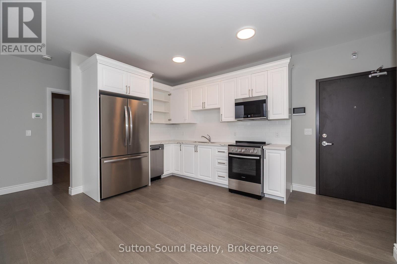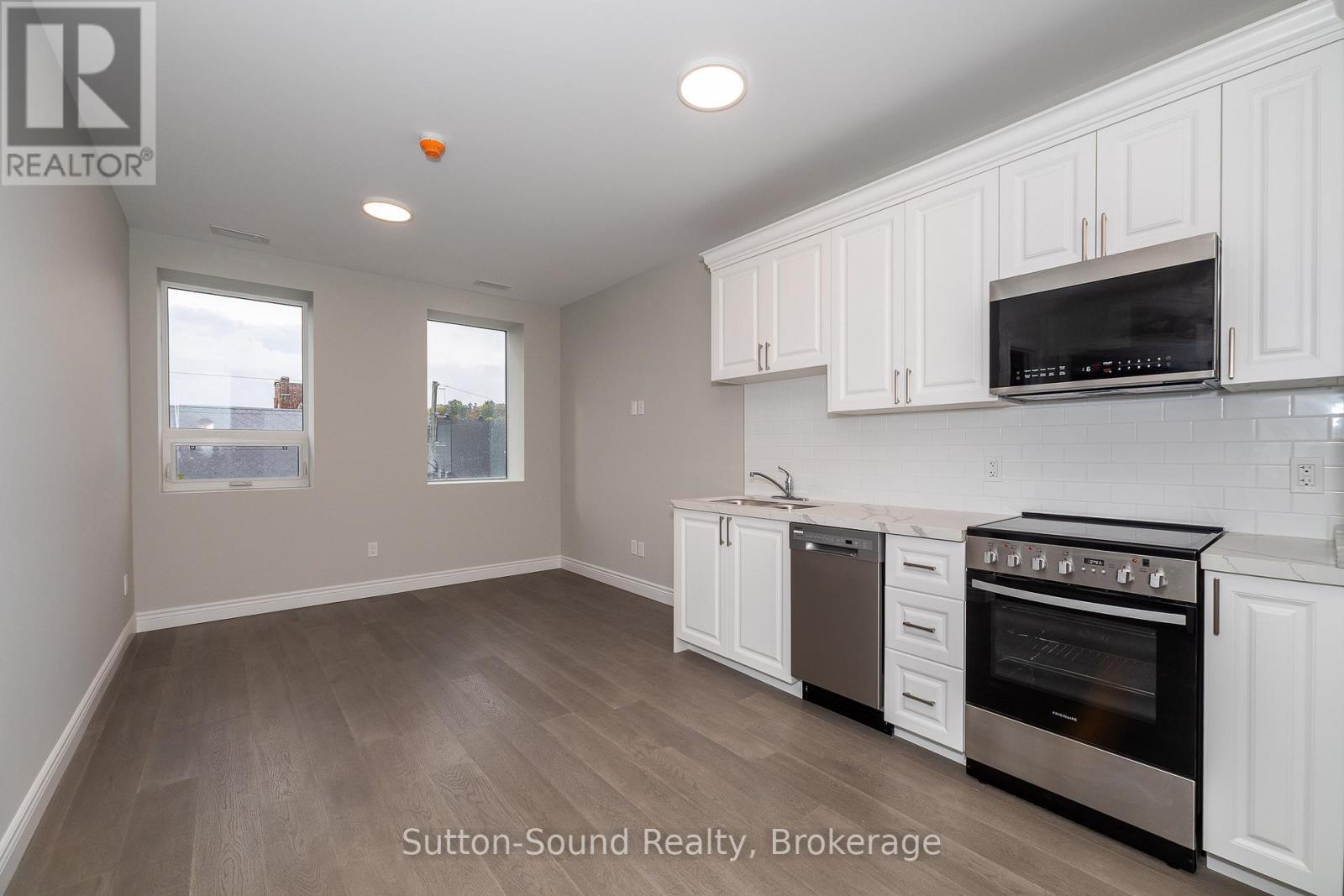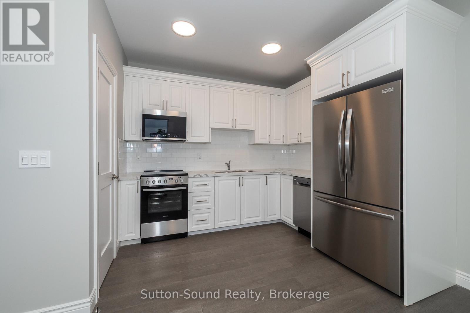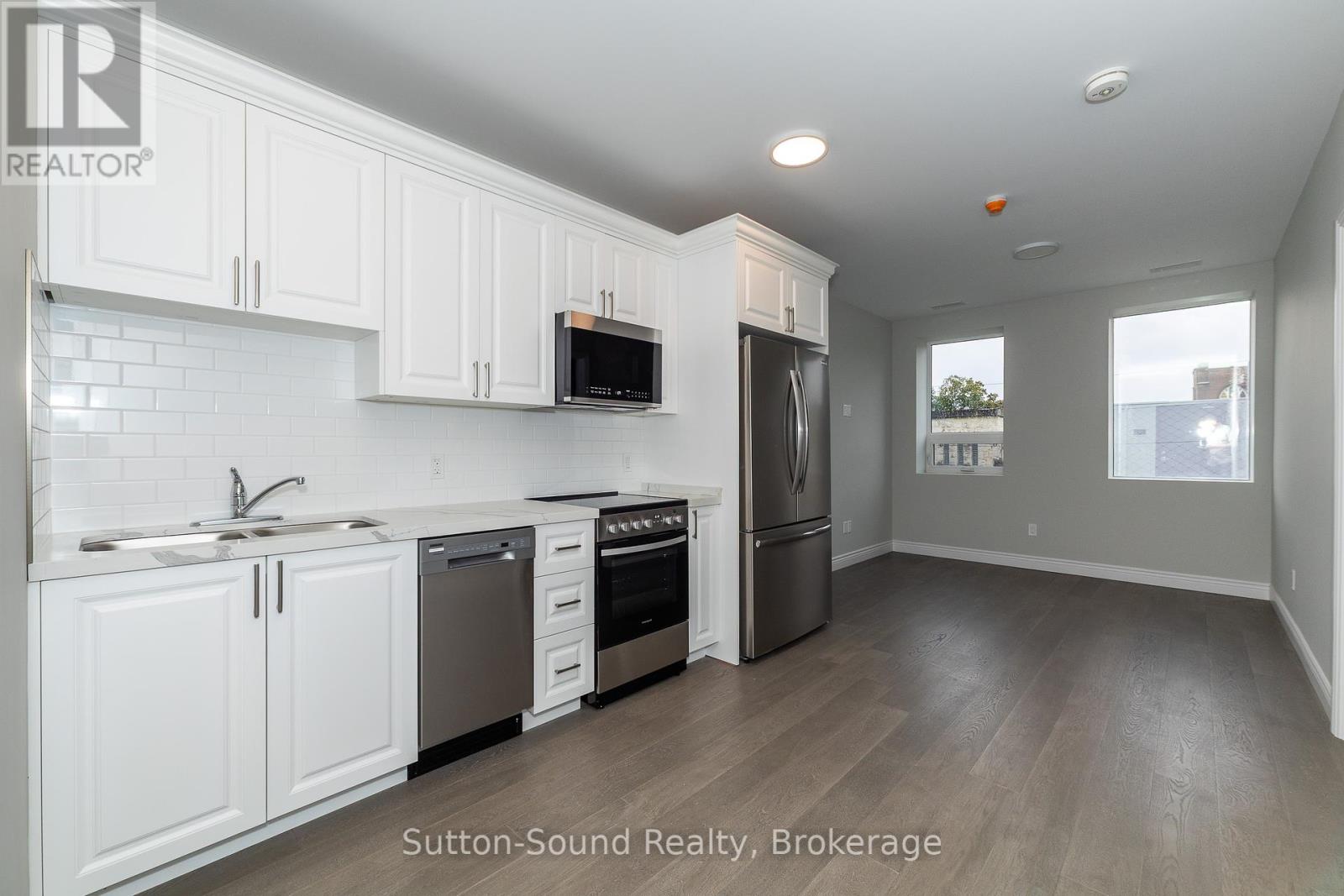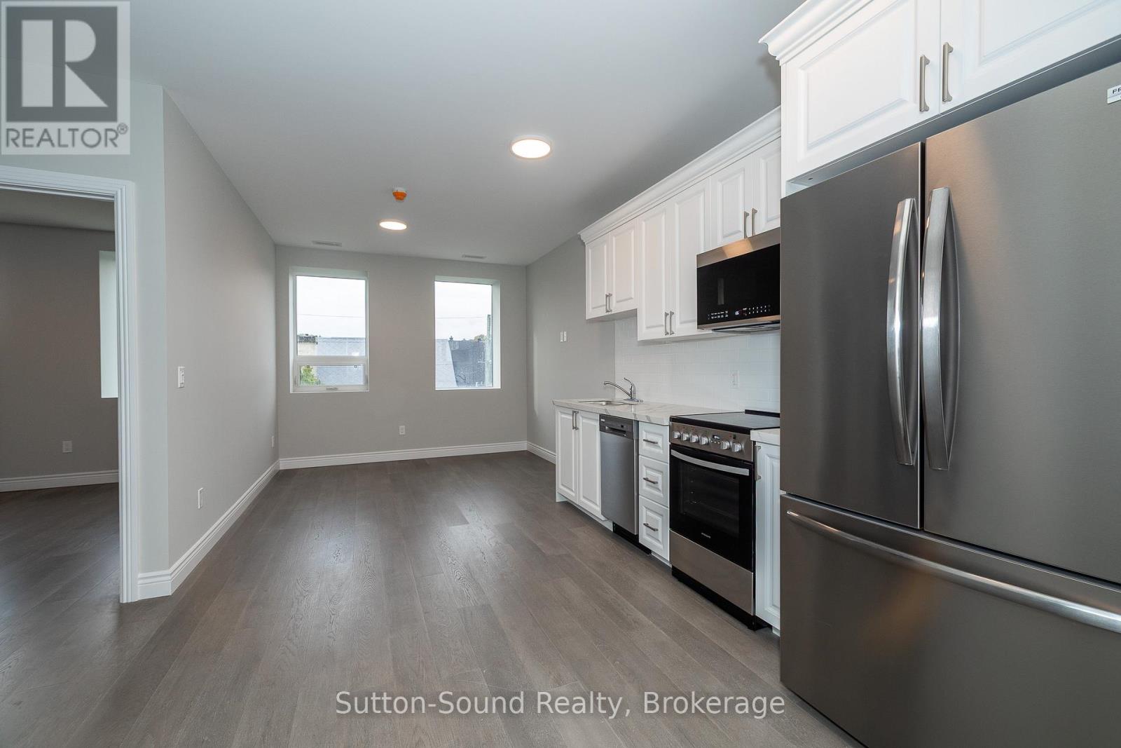 Welcome to the Edgewater building in beautiful Owen Sound. This apartments are an all in cost for you. Included in the rent is your highspeed internet, cable, telephone, all utilities and parking. A close walk to the downtown with all the amenities any person could want. These high quality units are done with hardwood floors for easy up keep and in unit laundry. Quartz counter tops in the kitchen and 9 foot ceilings with an open concept and built in closet organizers. No wasted space in these amazing units. A common room for family gatherings and a roof top patio with out door kitchen for beautiful evenings for your enjoyment. A total of 21 units are available for lease in this building.