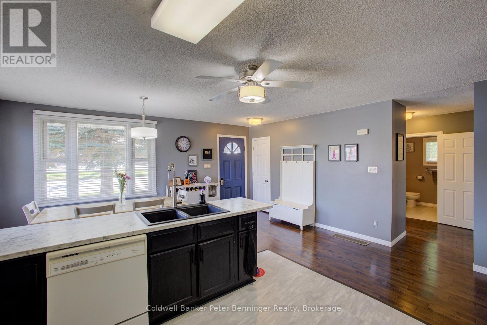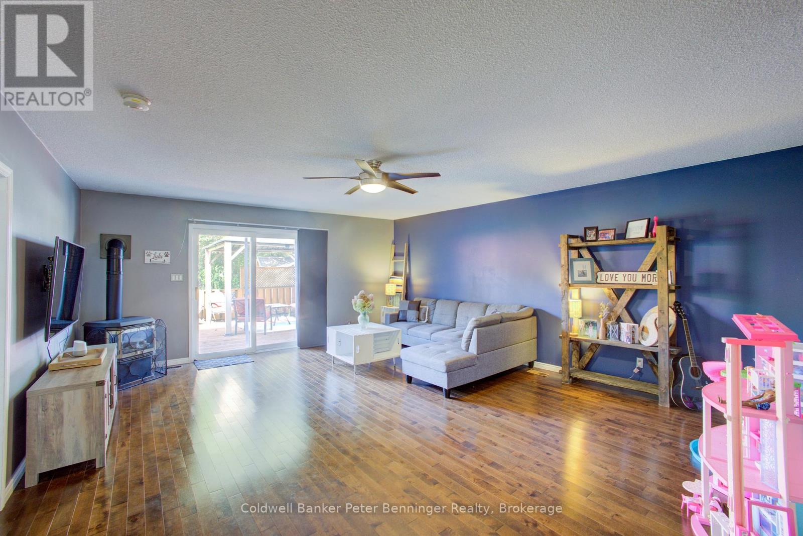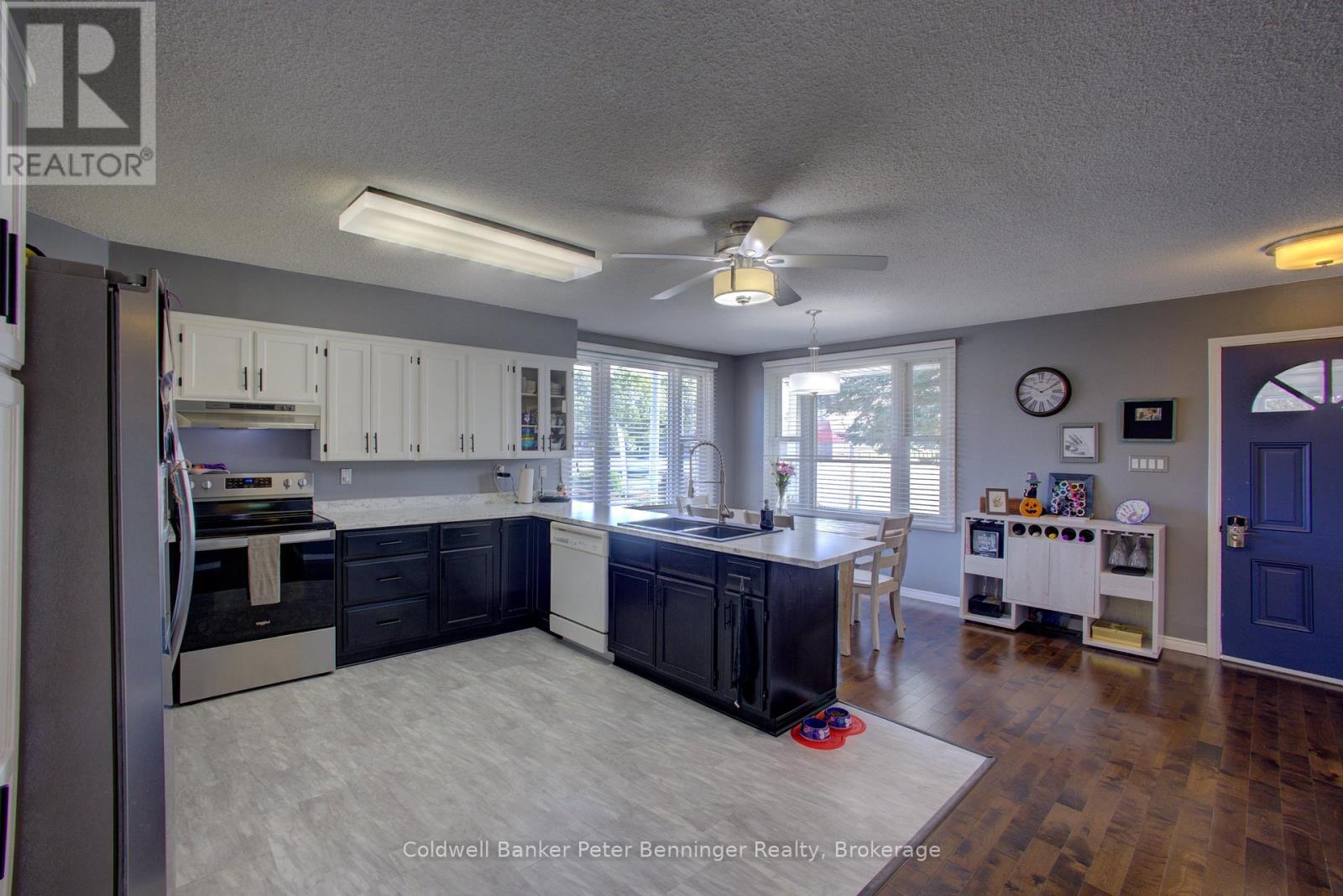 Surprise yourself and step in the front door of this charming home featuring hardwood floors, 3 spacious bedrooms including a master suite with a walk in closet and private en suite bath. The open concept kitchen and dining area boasts a new countertop, sink and tap with plenty of natural light perfect for entertaining family and friends. In the lower level, you will find a large rec room, workbench and loads of storage. From the living room, step out patio doors to a large deck with a gazebo ideal for relaxing or hosting summer barbeques. The mature trees provide shade and privacy while the spacious shed offers extra storage for tools and outdoor gear. Additional highlights include new shingles in 2021, parking for 4 vehicles, and a fantastic location within walking distance to shops, restaurants, schools, parks and trails. Move in ready home combining comfort, space and convenience. Perfect starter or retirement home. Don't miss your chance to own this wonderful property--schedule your showing today! Office Residential Zoning allows for several permitted uses.