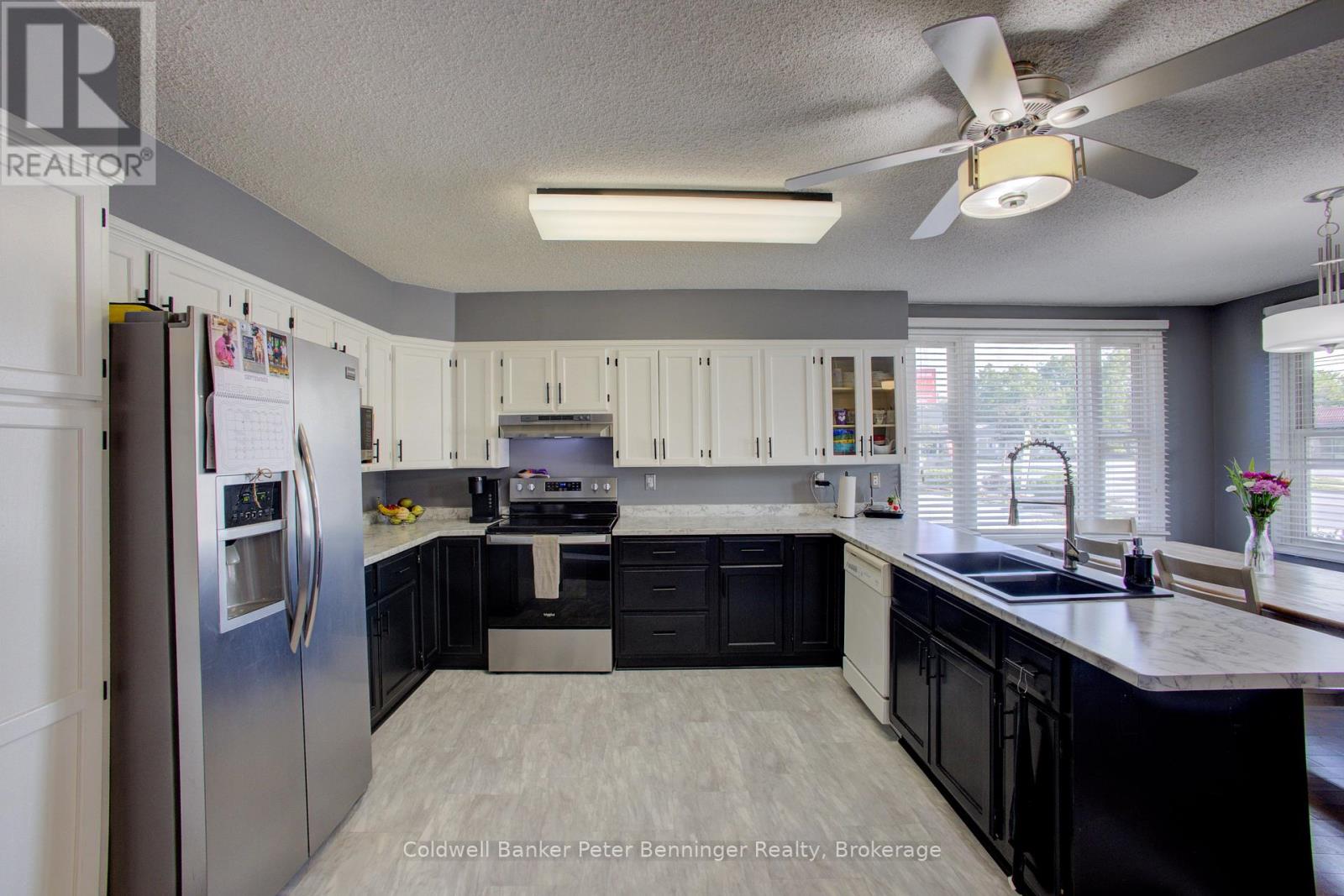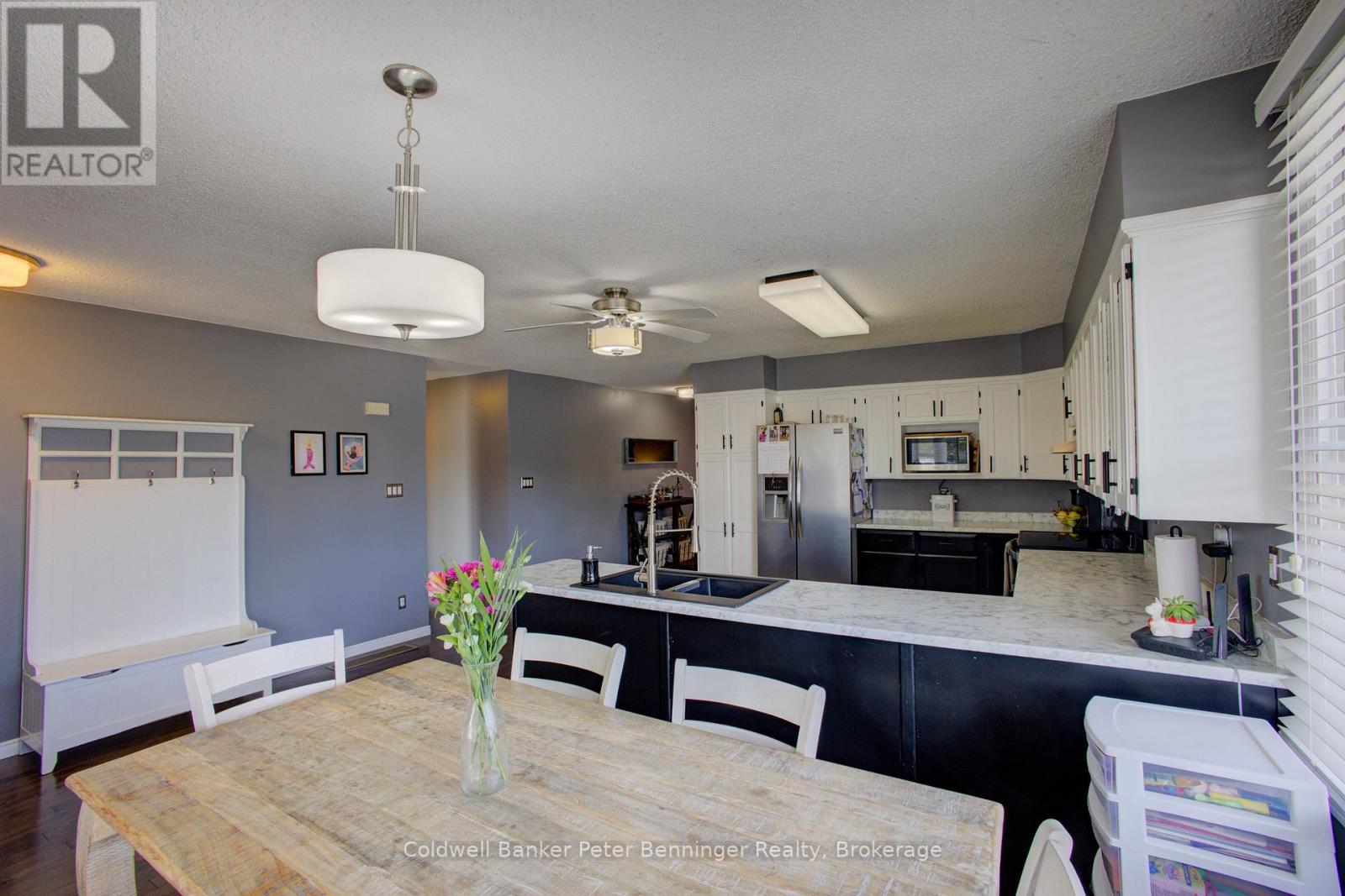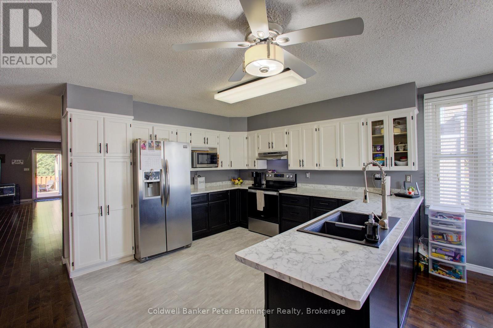 Surprise yourself and step in the front door of this charming home featuring hardwood floors, 3 spacious bedrooms including a master suite with a walk in closet and private en suite bath. The open concept kitchen and dining area boasts a new countertop, sink and tap with plenty of natural light perfect for entertaining family and friends. In the lower level, you will find a large rec room, workbench and loads of storage. From the living room, step out patio doors to a large deck with a gazebo ideal for relaxing or hosting summer barbeques. The mature trees provide shade and privacy while the spacious shed offers extra storage for tools and outdoor gear. Additional highlights include new shingles in 2021, parking for 4 vehicles, and a fantastic location within walking distance to shops, restaurants, schools, parks and trails. Move in ready home combining comfort, space and convenience. Perfect starter or retirement home. Don't miss your chance to own this wonderful property--schedule your showing today! Office Residential Zoning allows for several permitted uses.