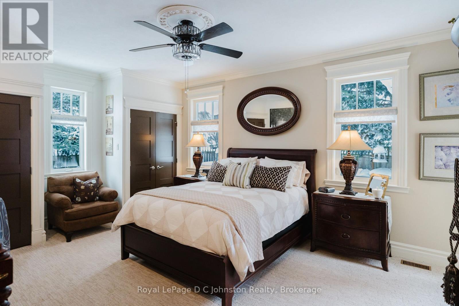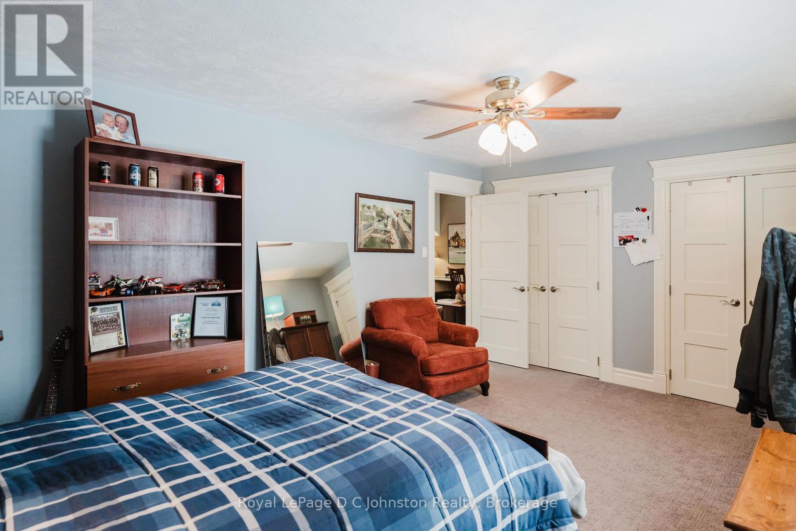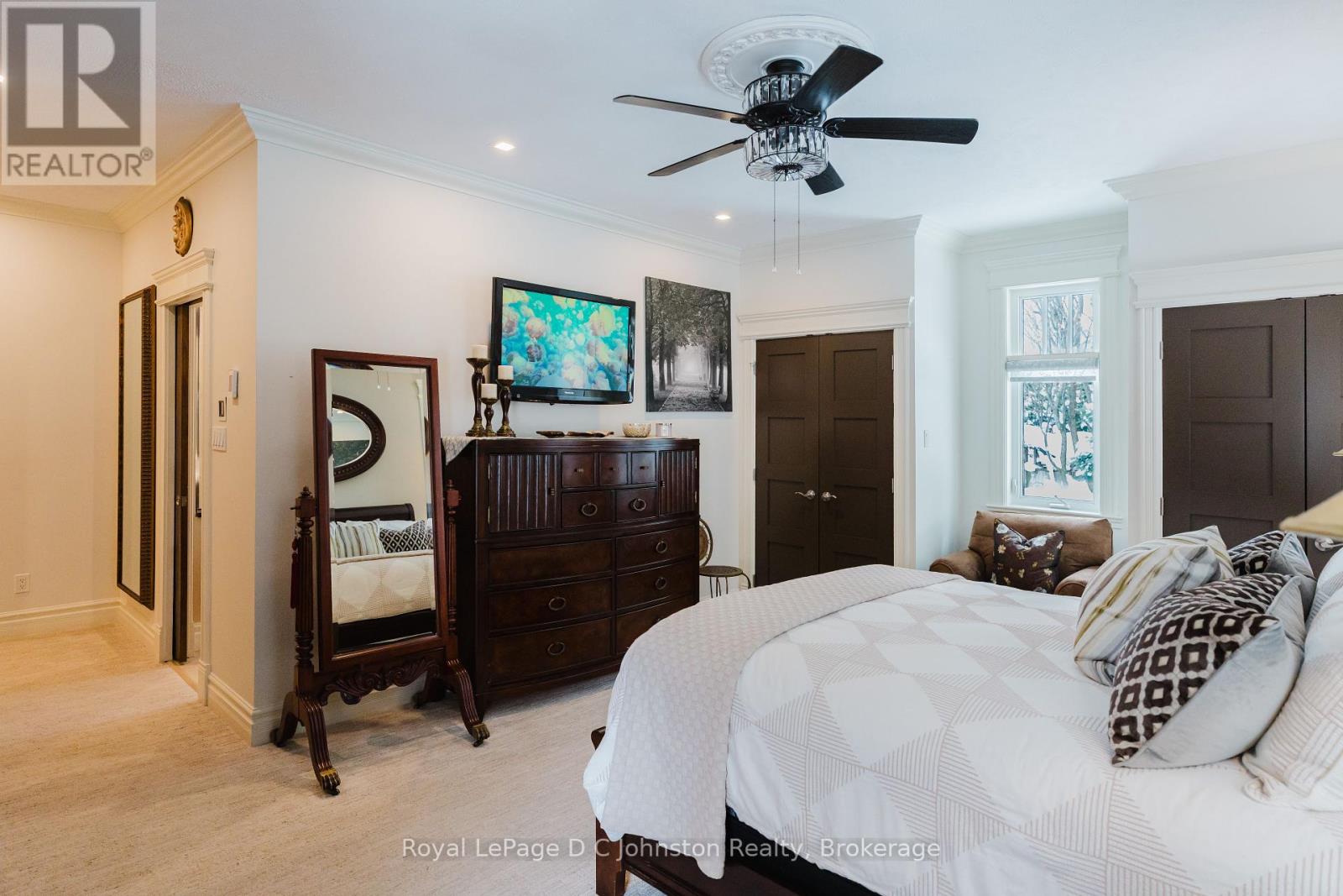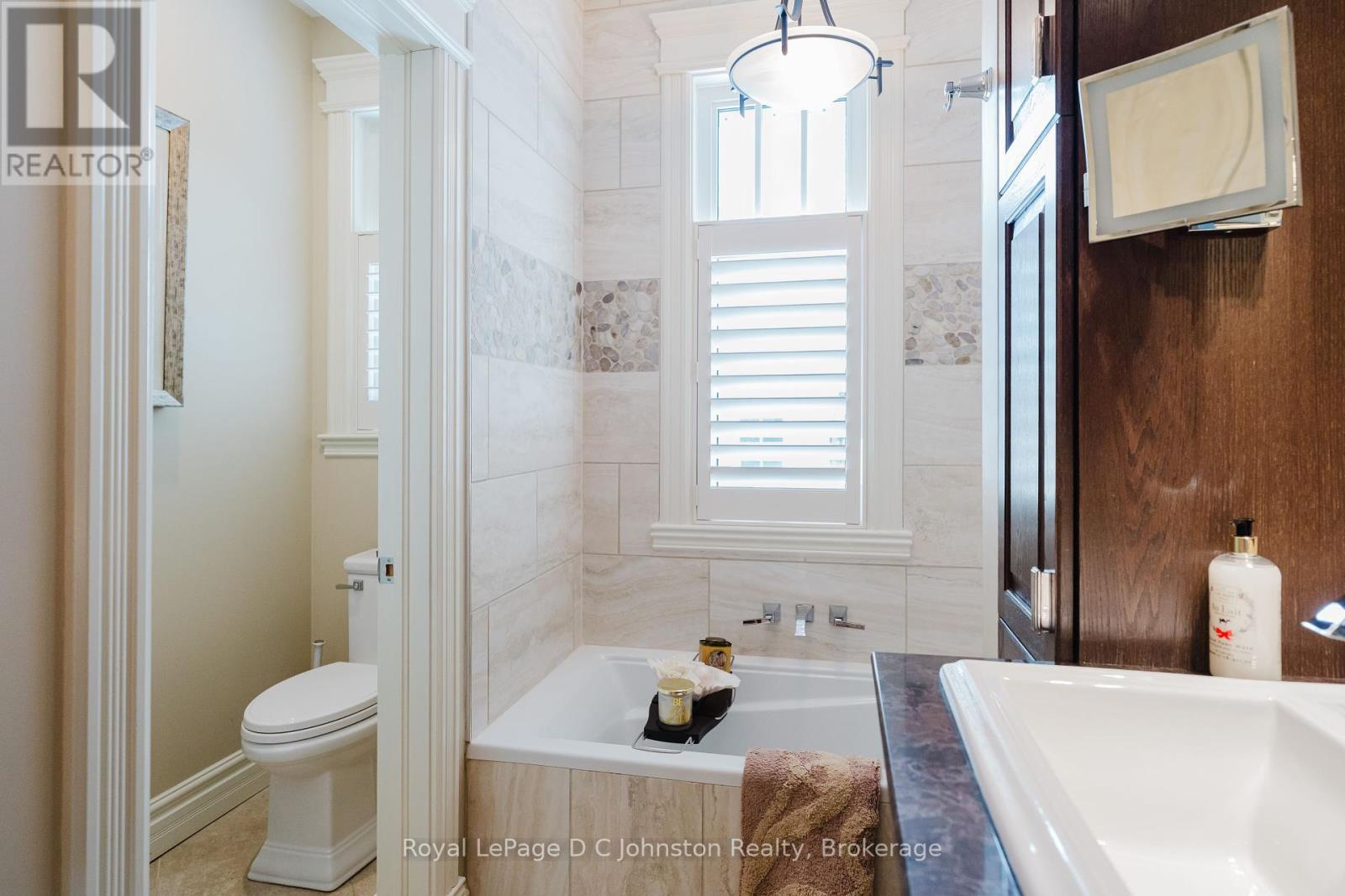 Experience the pinnacle of luxury in this stunning 4 bedroom, 4 bathroom home, custom built by Berner Contracting in 2005. Nestled on a mature lot in an exclusive enclave in Port Elgin, the home spans over 5,000 square feet on 3 levels and has been meticulously updated and renovated since 2019, blending elegance, comfort and functionality. Inside, find exquisite craftsmanship, including rustic barn board and beam details that add touches of warmth. A newly designed gourmet kitchen features a unique island adorned by hand-hewn posts, ambient lighting, Cambria countertops, and top-tier stainless steel appliances. The inviting dining room is sectioned for formal and more casual dining, complete with a built in butler's pantry. There are two versatile office spaces on the main floor, perfect for work from home or easily adaptable for playroom, guest room or more living space. A stylish guest bath is conveniently located off the main hall. The master suite has been thoughtfully reconfigured to include a spa-like ensuite with heated floors and a dreamy walk-in closet/dressing room. The main floor laundry room boasts custom cabinetry and heated ceramic floors. Upstairs, the loft offers a cozy living space with skylight, two guest bedrooms, and a beautifully re-modelled bathroom. The basement has been enhanced with a larger, brighter window for proper egress, 4th bedroom and bath, recreation room and plenty of storage space. A basement workshop with walk-up access to the double garage provides the perfect space for projects. New roof shingles were installed June 2024. Whole home Generac generator. Outside, an interlock stone driveway leads to a fenced-in space for your dog, 2 garden sheds, a fully fenced yard, Armour stone landscaping with built in sprinkler system and a reimagined front porch with elegant stonework. Every detail of this home has been thoughtfully curated to offer an unparalleled living experience - don't miss the opportunity to make it yours!