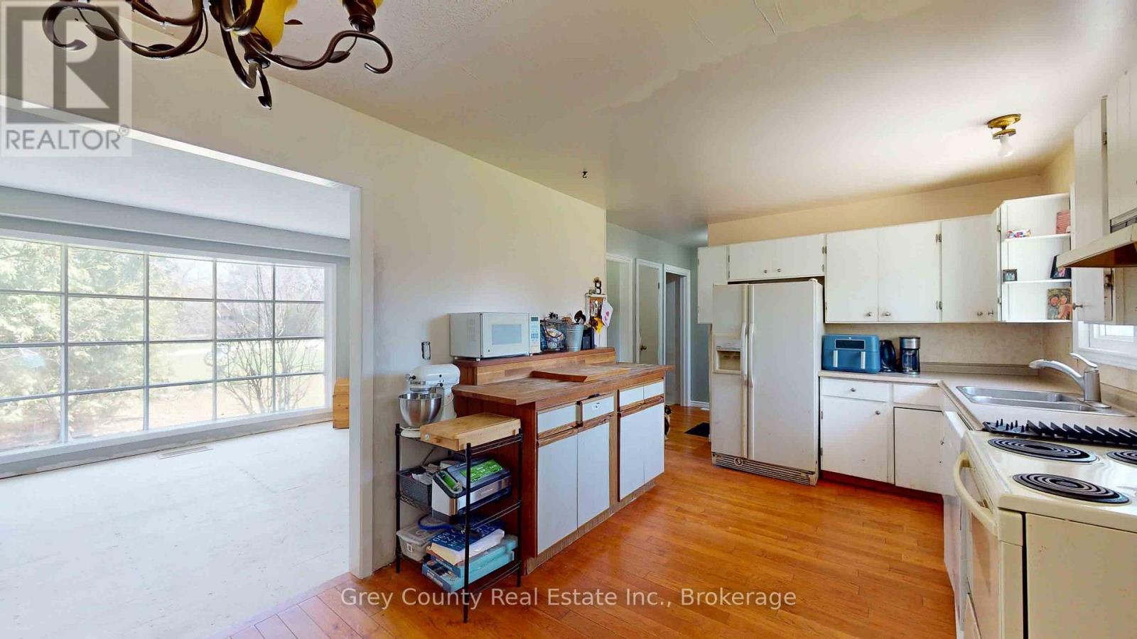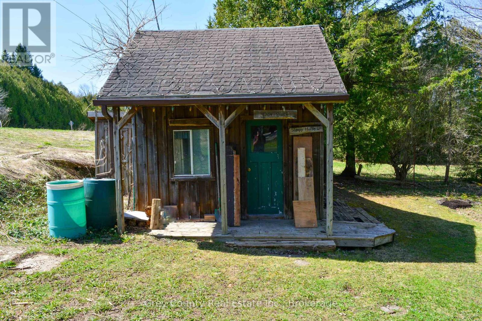 Charming Brick Family Home with Loads of Potential Just Minutes from Markdale. Set on a beautifully lot in a quiet, desirable neighbourhood just outside of Markdale, this 3-bedroom brick home offers space, character, and a head start on some key updates making it an ideal fit for someone looking to add their own style and value over time. The main floor welcomes you with a spacious layout that includes a large living room complete with a gas fireplace, perfect for cozy evenings. A dining area provides plenty of room for family meals or entertaining guests, and the kitchen offers great functionality with lots of counter space and natural light. A convenient 2-piece powder room rounds out the main level. Upstairs, you'll find three well-sized bedrooms, including a primary bedroom with a 3-piece ensuite. A full 4-piece bathroom serves the additional bedrooms. Some updates have been started on this level, offering a great chance for a new owner to bring their own vision and complete the transformation. The lower level features a large, family room with another gas fireplace . There's also a laundry room with storage space, plus a separate utility room. Step outside through the covered breezeway that connects the home to the attached garage handy feature thats perfect for those snowy or rainy days. From there, you can access the rear deck, where theres plenty of space for BBQs, lounging, or simply enjoying the scenic view. The backyard is a real highlight, offering space to play, garden, or just unwind. Tucked away in the yard is a super cute Bunkie complete with a, sleeping loft, and covered porch making it a perfect spot for weekend guests, a studio, or a creative retreat. Theres also a 10' x 8' garden shed converted into a chicken coop. This property offers the perfect blend of rural charm and convenience, with all the amenities of Markdale just a short drive away. With some finishing touches and personal upgrades, this home could truly shine.