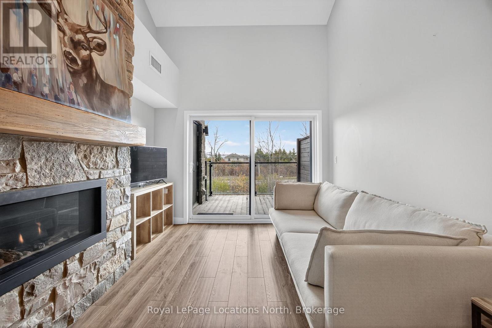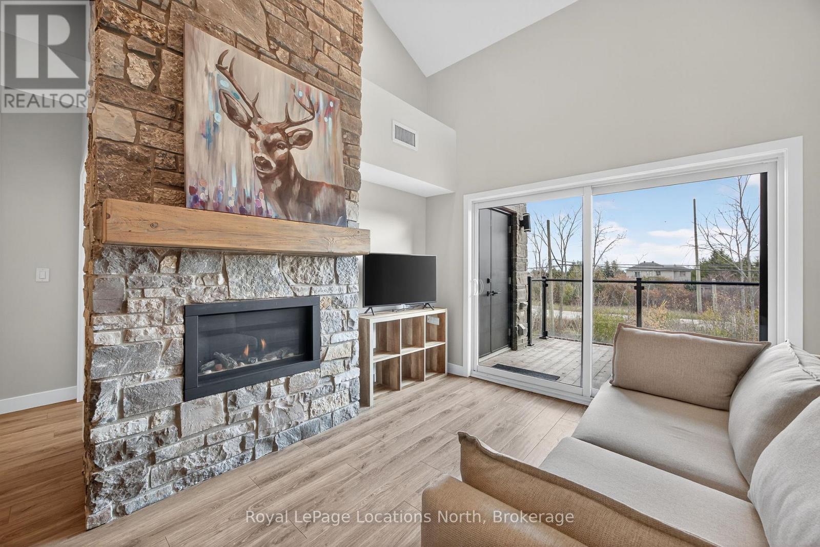 Annual or seasonal rental. 3-bedroom, 2-bathroom two-storey loft-style condo in the highly desirable Mountain House community. This modern unit offers an open-concept layout with soaring ceilings, upgraded finishes, and a bright, spacious living area complete with a natural gas fireplace. The kitchen features contemporary cabinetry, quartz counters, stainless-steel appliances, and an ideal flow for entertaining. The loft-level primary bedroom provides excellent privacy, while two additional bedrooms on the main level offer flexibility for family, guests, or office use. Enjoy a private covered balcony with natural gas BBQ hookup, plus a convenient mud room and a laundry room. Resort-style amenities include a year-round heated outdoor pool, hot tub, well-appointed rec centre, and an indoor/outdoor fireplace lounge. Prime location just minutes to Blue Mountain Village, Collingwood, Georgian Bay, and endless trails, golf courses, restaurants, and spas. The perfect four-season home or investment opportunity in one of the area's most sought-after communities.