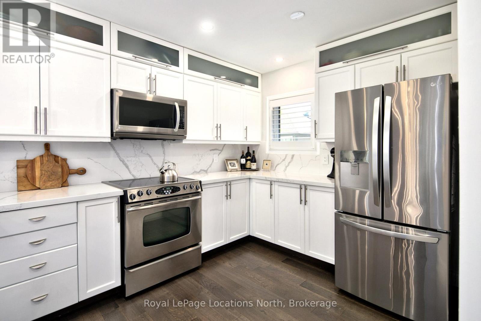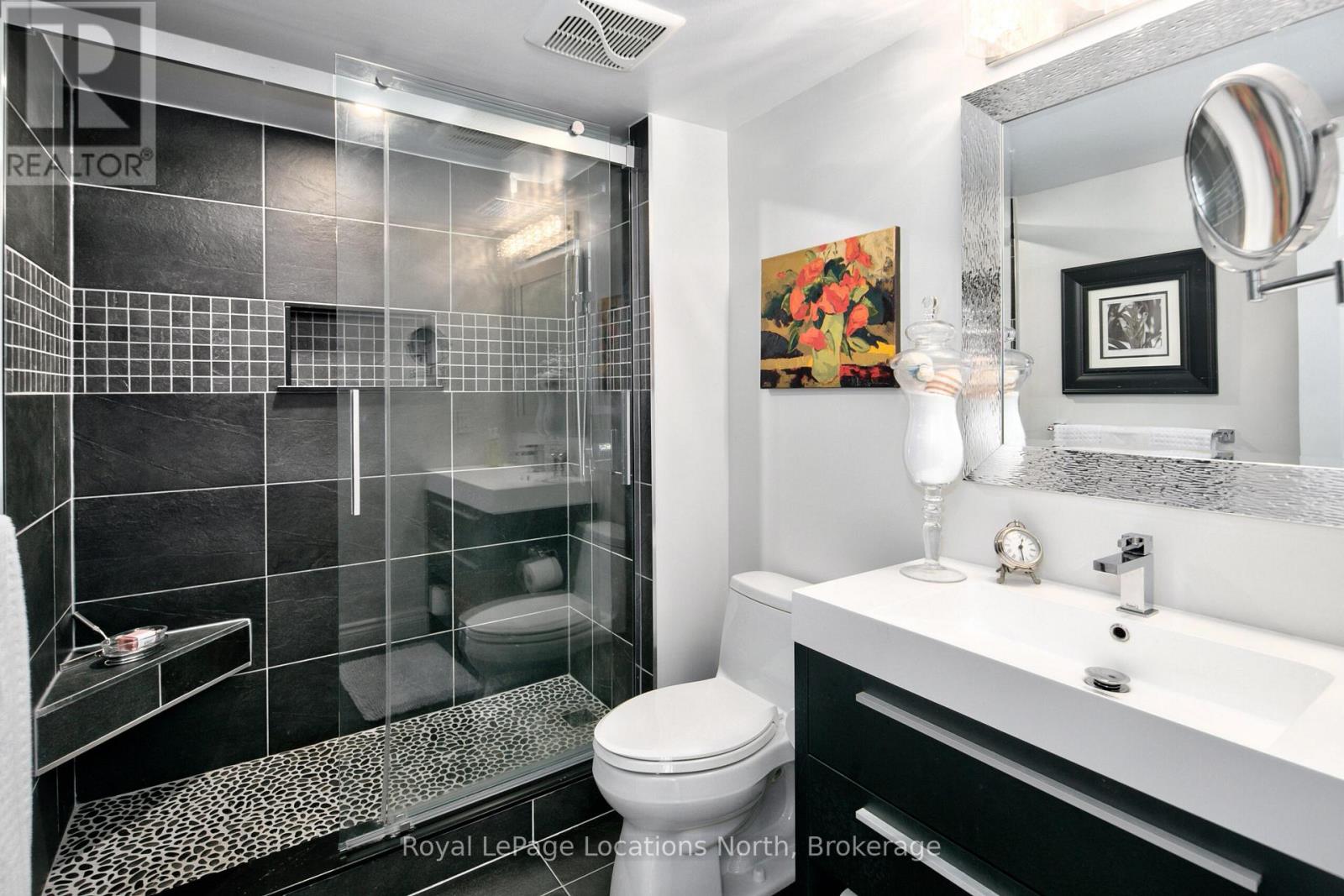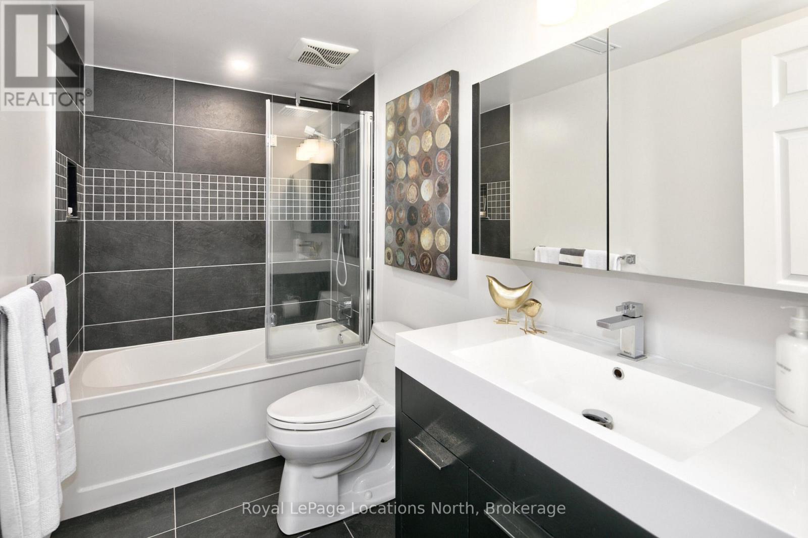 QUICK CLOSING AVAILABLE! Stunning Lighthouse Point condo with rare oversized deck!Beautifully upgraded 3-bedroom, 2-bathroom condo with the perfect blend of comfort, style, and resort-style living-just steps from Georgian Bay in one of Collingwood's most sought-after waterfront communities.The bright open-concept layout features a spacious living, dining, and kitchen area ideal for entertaining. The kitchen boasts sleek waterfall quartz countertops and backsplash, a breakfast bar with space for seating, and abundant storage. The dining room opens directly to the incredible private deck-one of only 14 in the entire development-perfect for summer dining, lounging, and hosting friends. The living room is highlighted by a stone-surround gas fireplace and large windows that food the space with natural light.The primary suite includes a walk-in closet with built ins and a stylish 3pc ensuite, while two additional bedrooms and a second bathroom provide plenty of space for family or guests. A separate 270sqft garage adds convenience and additional storage.Enjoy the resort lifestyle Lighthouse Point is known for, with access to 3 pools, 2 hot tubs, 6 state of the art pickleball courts, tennis courts, a gym, 2 beaches, walking trails, a marina, and a clubhouse-all just minutes from downtown Collingwood, Blue Mountain, and private ski and golf clubs.Looking for a low maintenance home in a desirable Collingwood community? This is the perfect place for a summer getaway, winter weekend home or year round retreat.Monthly condo fee:$921.89 (subject to change)