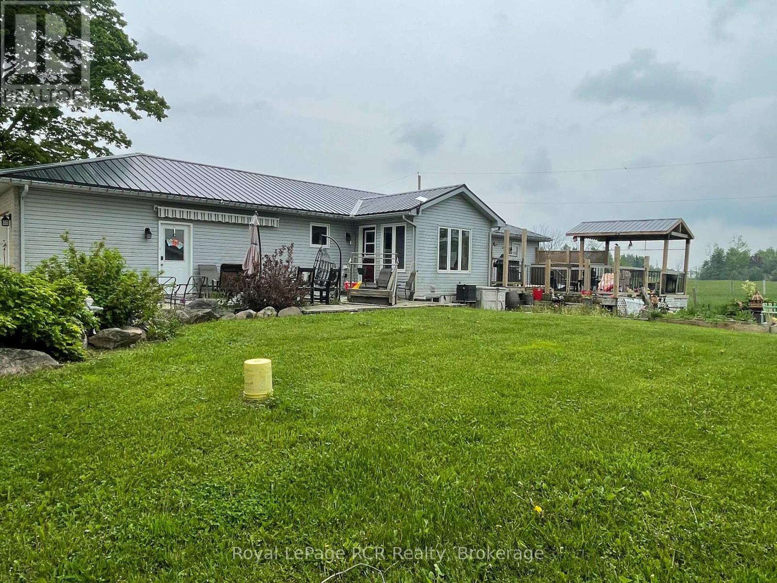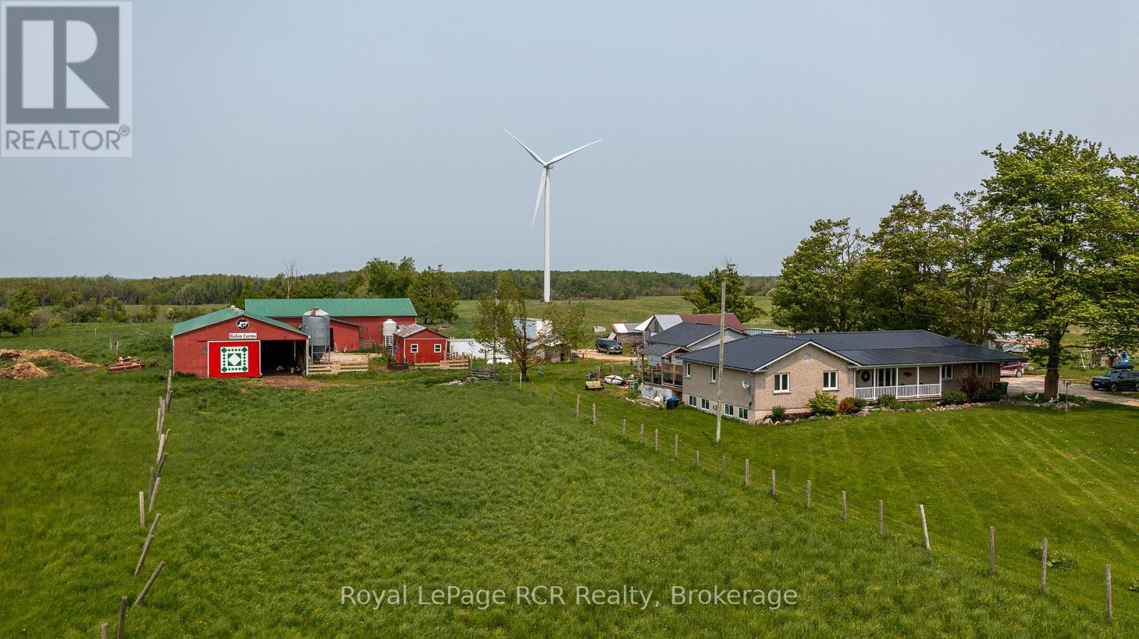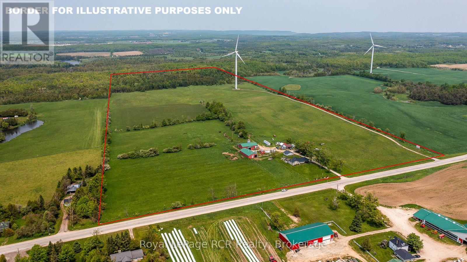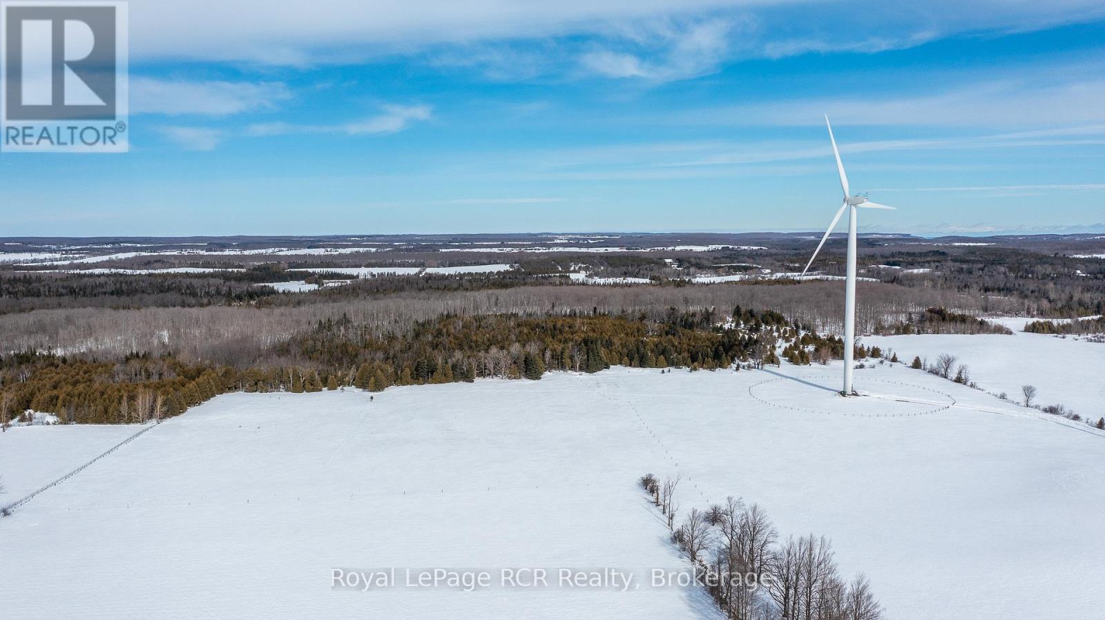 100 acre farm in Grey Highlands on a paved road. There are 60 acres being used for hay and pasture. Additional income from the wind turbine which brings in approximately $20,000 per year. There are 2 barns: 45x75 each, and 3 sheds: 22x32, 30x28 and 16x18. A 1650 square foot bungalow with covered front porch and attached garage was built in 2005. The home has 3 bedrooms and 2 bathrooms on the main level. The partially finished basement has potential for a self-contained in-law suite with a walk-out. Located in a thriving agricultural community in the former Osprey Township, between Maxwell and Singhampton. Industrial portion of taxes are paid by the turbine company (approx $4200). Taxes are at farm rate.