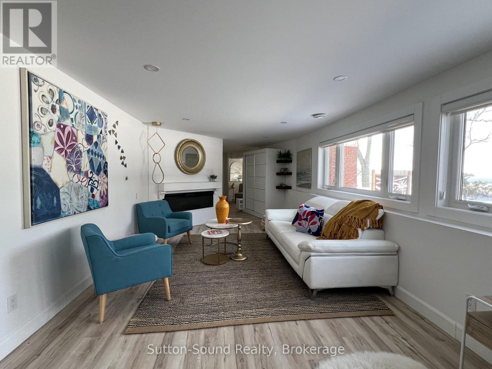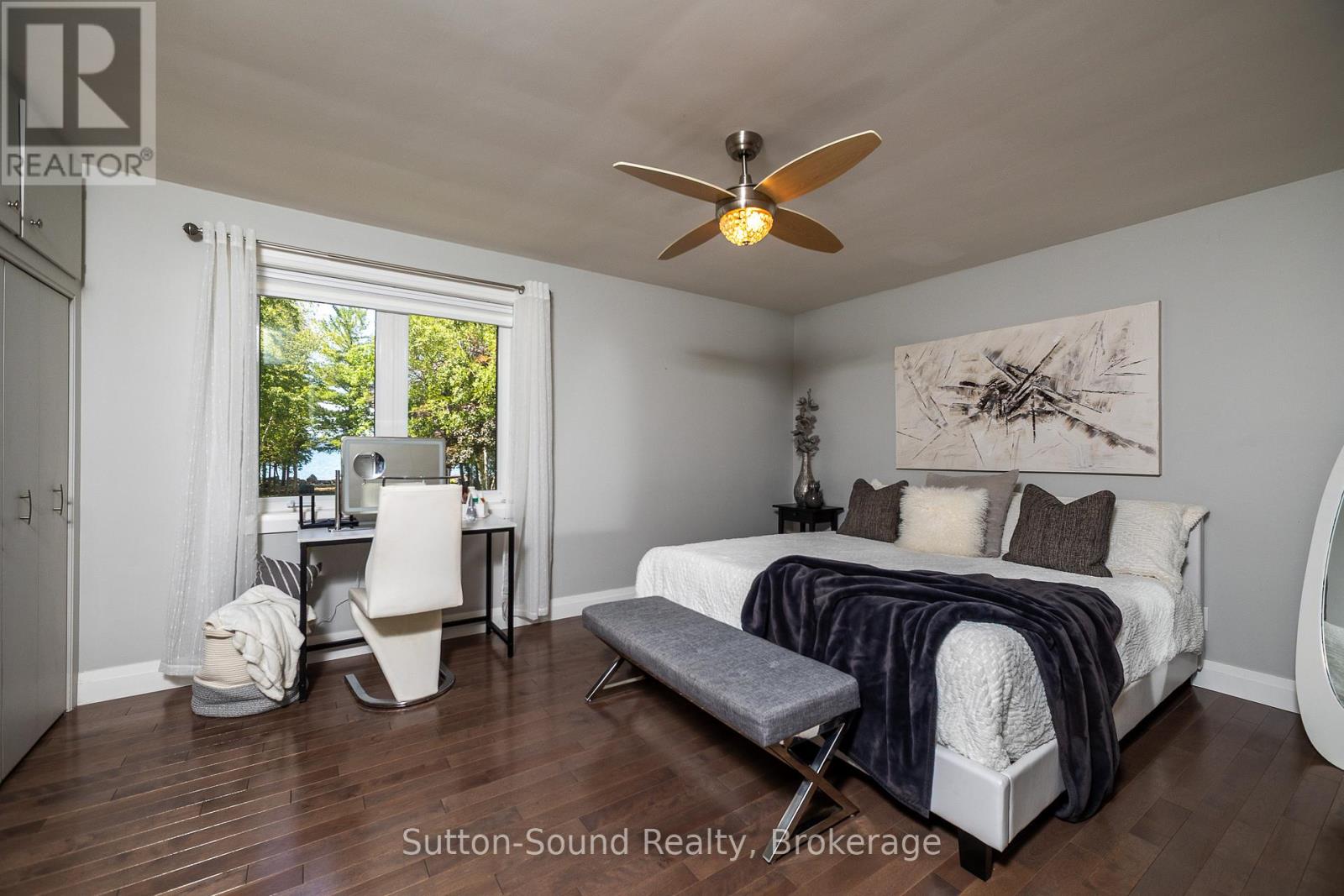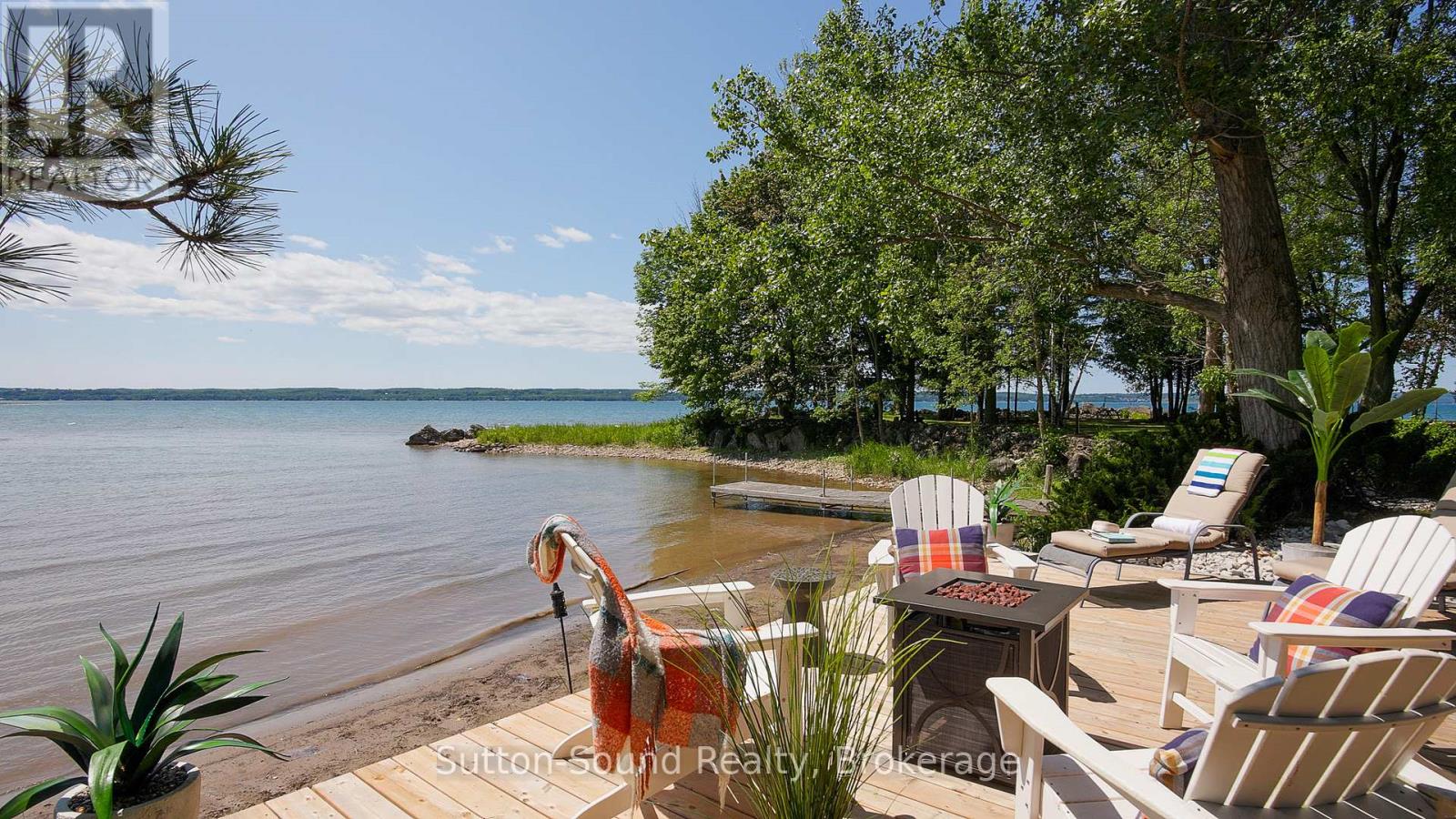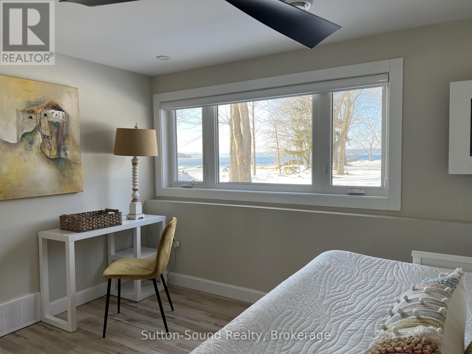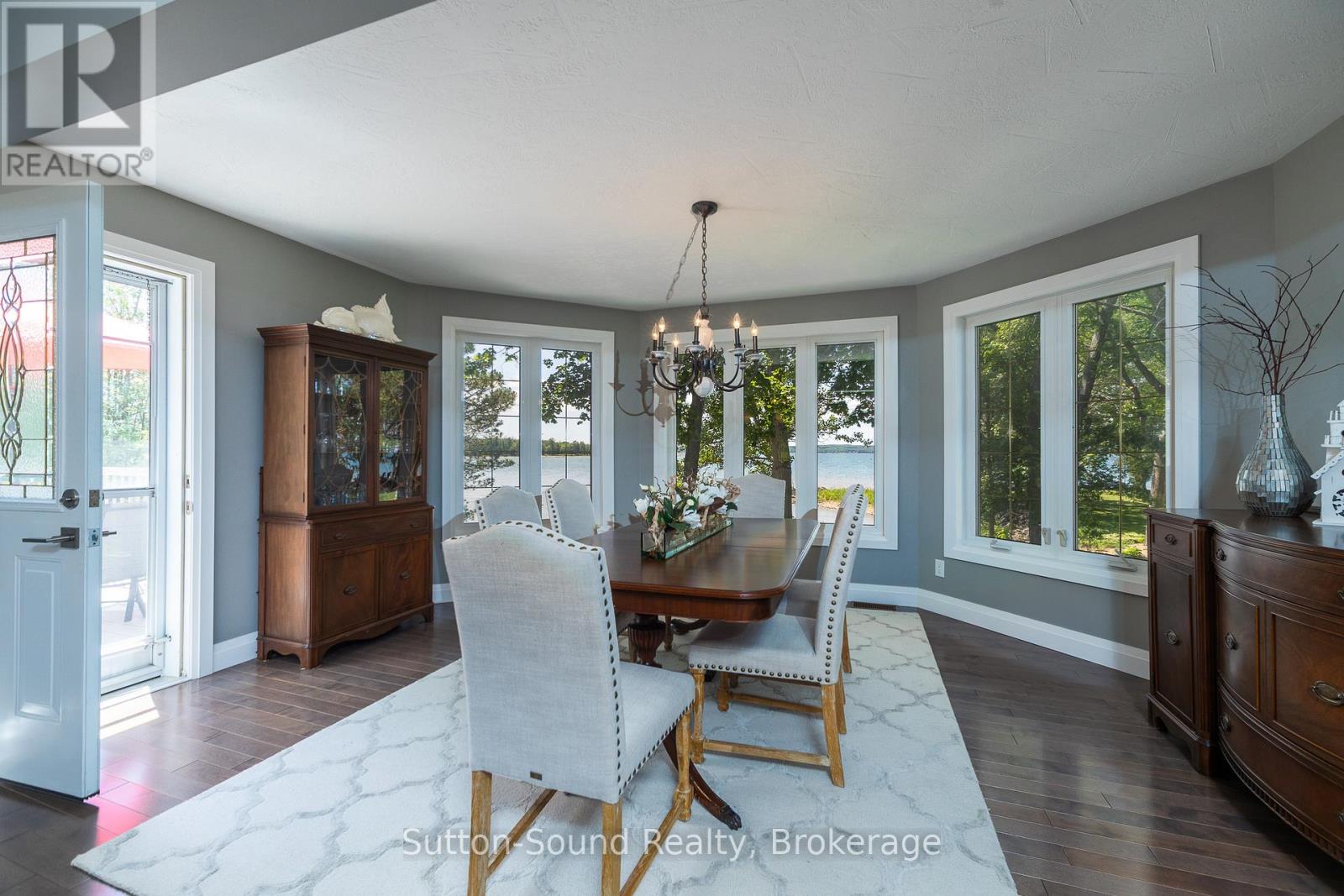 Welcome to 359288 Grey Rd 15, a beautifully updated Georgian Bay waterfront retreat just minutes from Owen Sound. This impeccably maintained 4-bedroom, 3 bathroom bungalow with attached garage offers over 400 ft of pristine shoreline, and is nestled on a sprawling, beautifully landscaped 0.65 acre lot with panoramic views and unforgettable sunsets. Designed with both comfort and sophistication in mind, the main level features a spacious, open concept eat-in kitchen complete with a granite island- ideal for entertaining- flowing seamlessly into a stunning dining room addition with expansive windows that frame the captivating waterfront. The main floor also hosts a powder room, living room with gas fireplace, two generously sized bedrooms and a spa-inspired bathroom showcasing exquisite tilework and glass walk-in shower. Energy-efficient ground source heating ensures year-round comfort. The fully finished lower level, with its own private entrance, offers exceptional versatility- perfect for extended family or guests- featuring a second dine-in kitchen with quartz countertops, a welcoming living room with electric fireplace, two additional bedrooms, and a beautifully appointed 4-pc bath with soaking tub and tiled shower. Step outside and the multiple entertaining areas, a spacious dock, and thoughtfully designed spaces invite you to relax and enjoy the very best of refined waterfront living.
