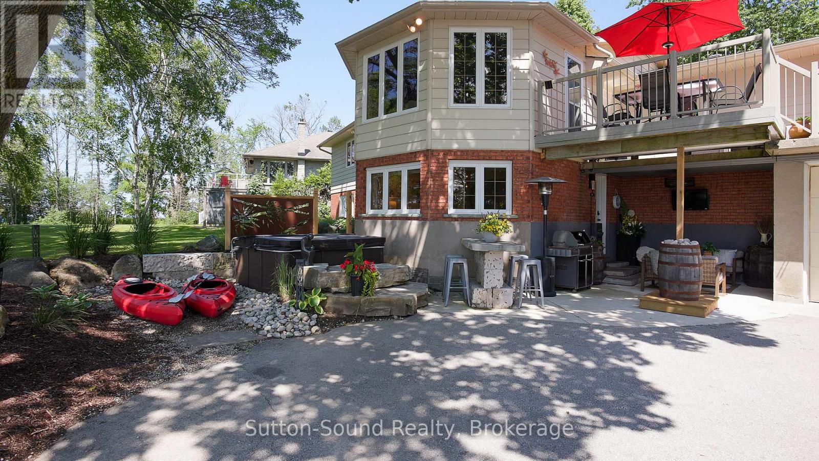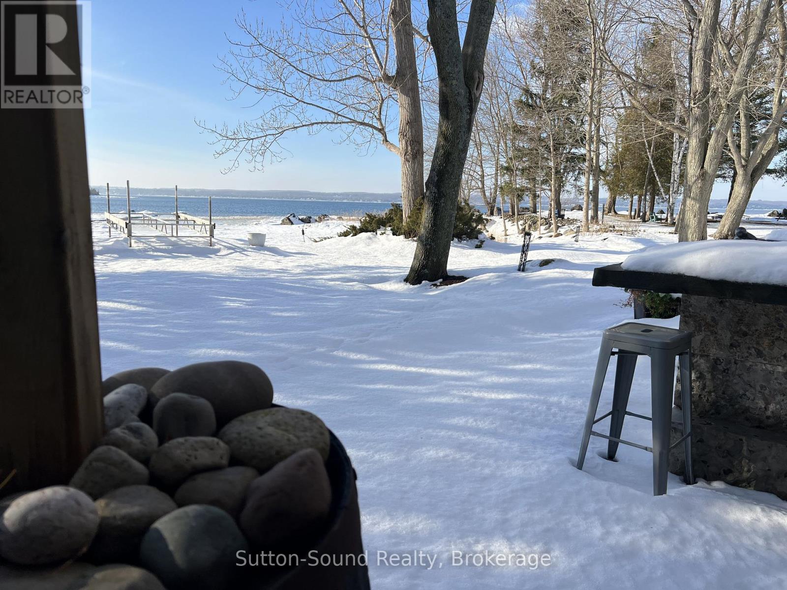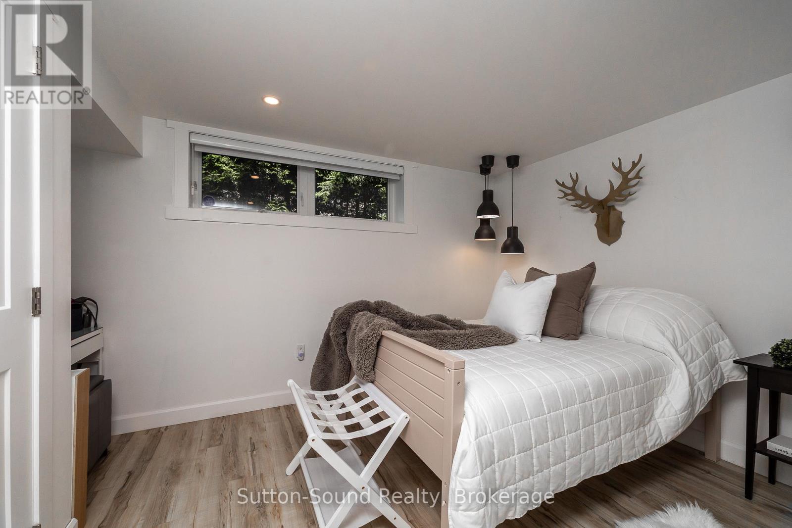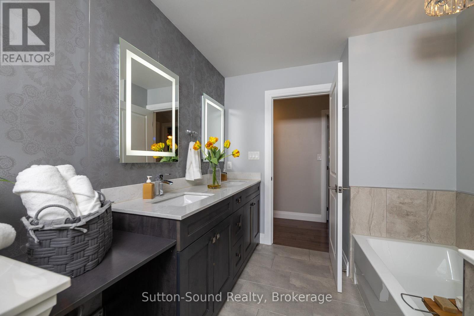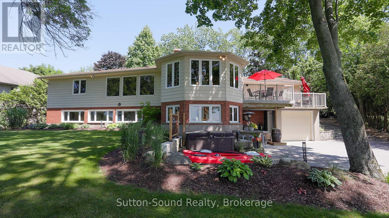 Welcome to 359288 Grey Rd 15, a beautifully updated Georgian Bay waterfront retreat just minutes from Owen Sound. This impeccably maintained 4-bedroom, 3 bathroom bungalow with attached garage offers over 400 ft of pristine shoreline, and is nestled on a sprawling, beautifully landscaped 0.65 acre lot with panoramic views and unforgettable sunsets. Designed with both comfort and sophistication in mind, the main level features a spacious, open concept eat-in kitchen complete with a granite island- ideal for entertaining- flowing seamlessly into a stunning dining room addition with expansive windows that frame the captivating waterfront. The main floor also hosts a powder room, living room with gas fireplace, two generously sized bedrooms and a spa-inspired bathroom showcasing exquisite tilework and glass walk-in shower. Energy-efficient ground source heating ensures year-round comfort. The fully finished lower level, with its own private entrance, offers exceptional versatility- perfect for extended family or guests- featuring a second dine-in kitchen with quartz countertops, a welcoming living room with electric fireplace, two additional bedrooms, and a beautifully appointed 4-pc bath with soaking tub and tiled shower. Step outside and the multiple entertaining areas, a spacious dock, and thoughtfully designed spaces invite you to relax and enjoy the very best of refined waterfront living.