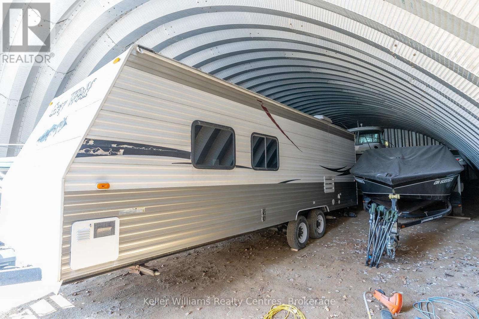 Introducing a truly unique offering that combines comfortable residential living with an established marine storage operation. Set in a peaceful Stokes Bay just minutes from Lions Head and close to Black Creek Provincial Park (Big Sandy Beach), this property delivers both lifestyle appeal and exceptional business potential, all near the warm waters of Lake Huron. The well-maintained 4-bedroom, 2-bathroom bungalow offers practical single-level living designed for ease and accessibility. Bringing warmth, ambiance, and flexible heating, this Ontario home features two propane fireplaces that elevate both everyday living and entertaining. Generously sized bedrooms provide flexibility for family living, guest accommodations, or conversion into a fitness room or creative space. Two bright and inviting living areas create the perfect setting for gatherings or quiet evenings at home. A dedicated office with its own separate entrance offers a professional workspace ideal for managing on-site operations or working remotely. Surrounding the home, thoughtfully landscaped grounds feature low-maintenance gardens, a tranquil pond, and a charming gazebo-an inviting spot to relax and enjoy the natural surroundings. What truly sets this property apart is the impressive marine infrastructure. Three substantial storage buildings-measuring 64' x 40', 80' x 40', and an expansive 244' x 40'-provide extensive capacity for boat storage, and equipment. Whether expanding an existing marine enterprise, launching a new venture, or simply securing dependable storage solutions, the scale and versatility of these facilities present significant passive income potential. This is a rare opportunity to secure a property that seamlessly blends home, business, and the sought-after lifestyle of the Bruce Peninsula.