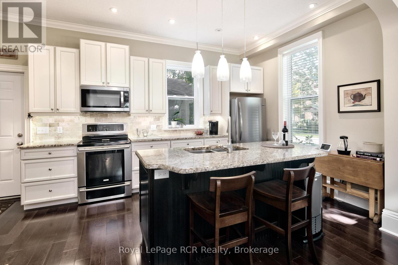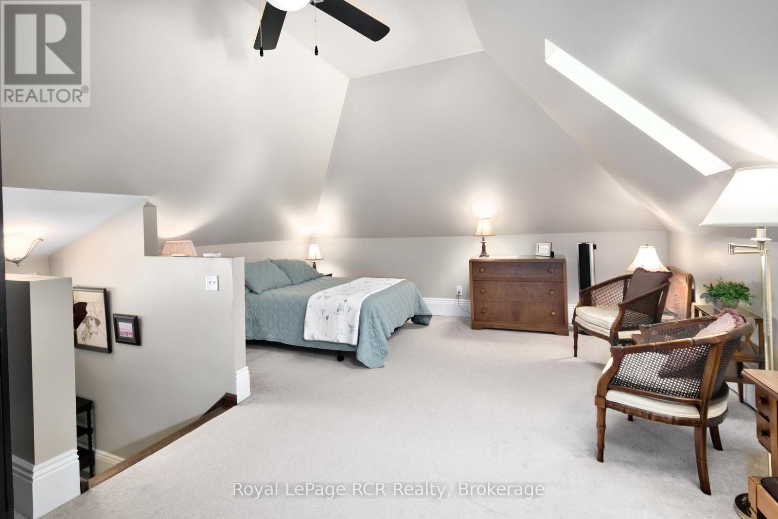 Welcome to this 4 bed 3 bath 2.5-storey century home with attached garage, offering 2,616 square feet of beautifully updated living space while preserving its timeless character. Set on a corner lot in a desirable, family-friendly neighbourhood, this home combines classic charm with modern convenience. The inviting front porch sets the tone, leading into a warm and welcoming open concept main floor. The kitchen features an island with granite countertops, a large pantry, and engineered hardwood floors, opening to a dining area that flows seamlessly into the spacious living room. Here, soaring high ceilings, a cozy gas fireplace, hardwood flooring, and custom crown molding create an elegant space for both everyday living and entertaining. A convenient 2-pc bathroom completes the main level. Upstairs, the primary bedroom is generously sized with a good closet, accompanied by two additional bedrooms, a full 4-pc bathroom, and a well-placed laundry area. The finished attic offers versatility with a fourth bedroom or recreation room, along with its own 3-pc bathroom and dedicated heat pump and A/C. The unfinished basement provides ample storage and workshop space. Outdoors, a flagstone patio, mature trees, and a storage shed add to the property's appeal. The single attached garage with a concrete driveway enhances both functionality and convenience. Additional features include a fibreglass roof (2018), forced-air natural gas furnace with central air, and ceiling fans in all bedrooms. With its private side entrance, thoughtful renovations, and unbeatable location within walking distance to Kelso Beach and the harbour, this century home is the perfect blend of comfort, character, and lifestyle.