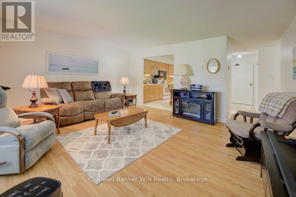 Welcome to Unit 206 located at 497 Birmingham St W in the beautiful town of Mount Forest. This 2-bedroom condo is a clean and tidy unit, ready for its next owners to enjoy. The eat-in kitchen is spacious and open concept to the living room area. The living room has lots of natural light from the large bay window and also features a walk-out to the balcony. Enjoy your balcony no matter the weather as this balcony has been enclosed, with windows that you can open on the warm sunny days for that refreshing breeze. Enjoy your morning coffee with a view from the back of the building, showcasing lots of lush greenery. 2 bedrooms as well as an in-suite laundry room and a 3-piece bathroom round out the remainder of the condo. The primary bedroom features a walk-in closet that doubles as a cheater ensuite access to the 3-pc bathroom. Enjoy a prime location located close to the hospital, downtown, walking trails as well as a great location to enjoy the annual Mount Forest Fireworks Festival from! The building has secure entry, an elevator and the unit comes with an assigned parking space that is included with your monthly condo fee.