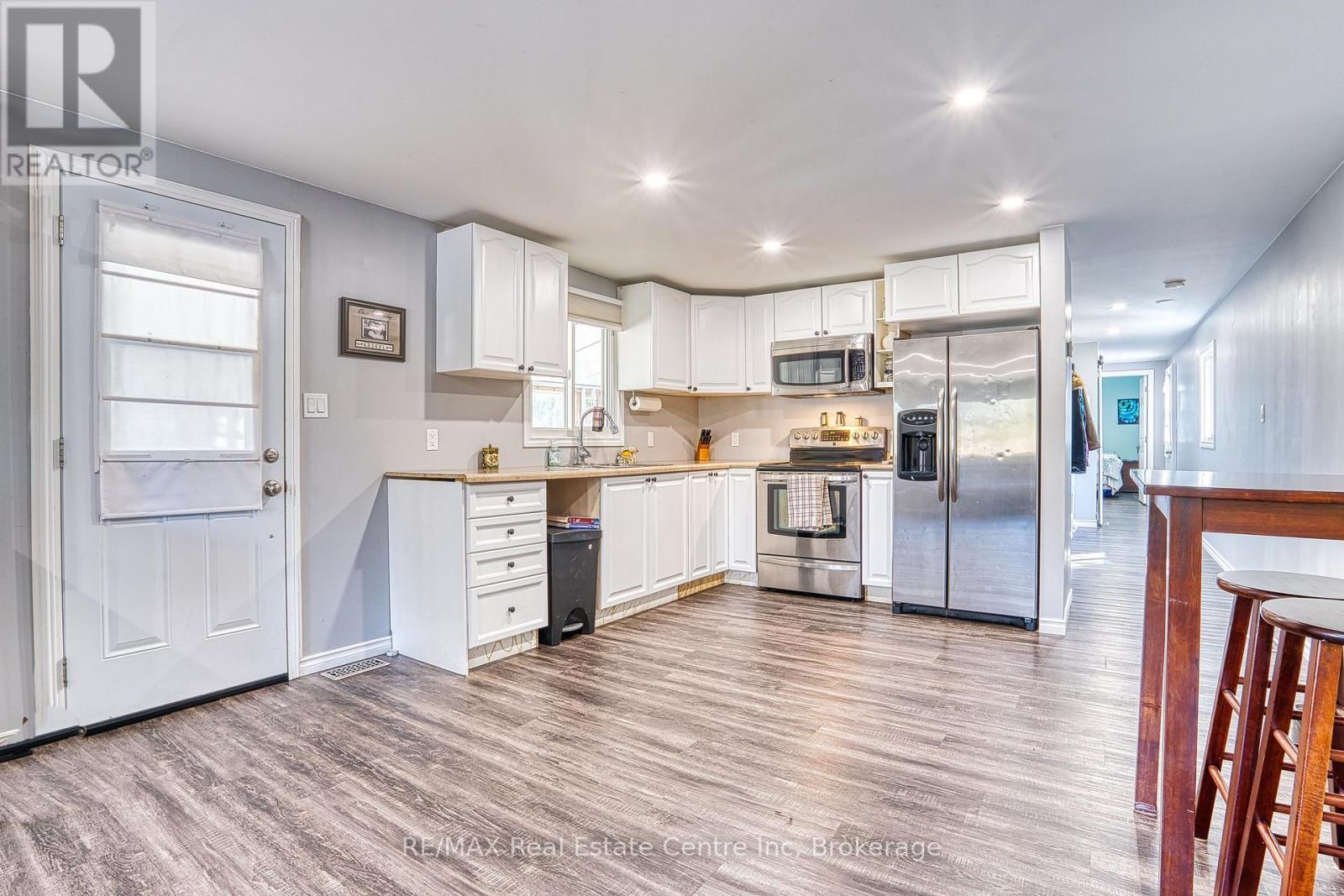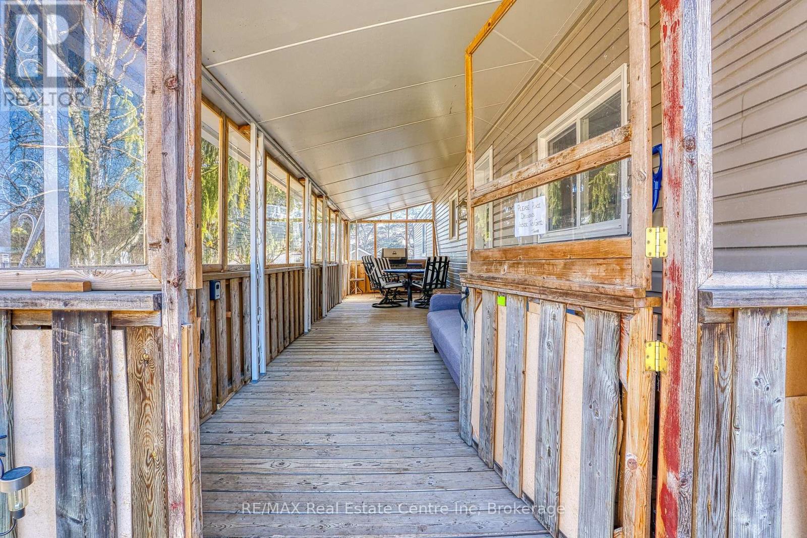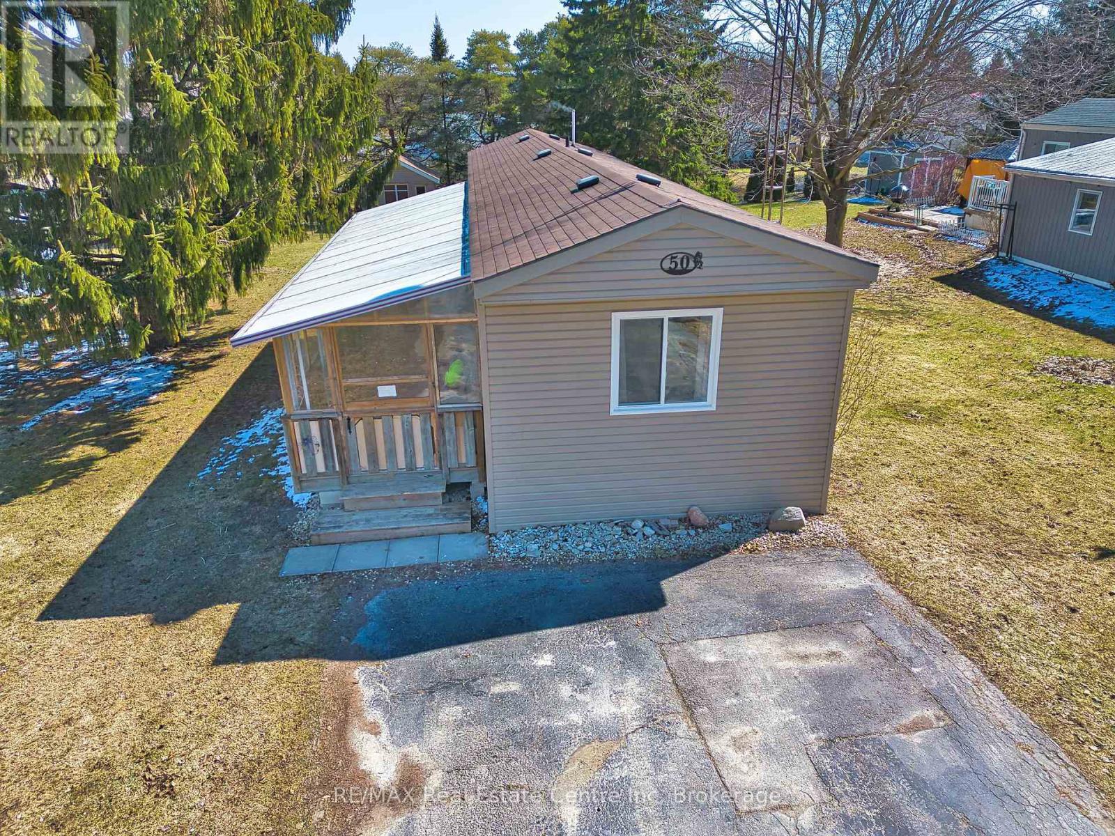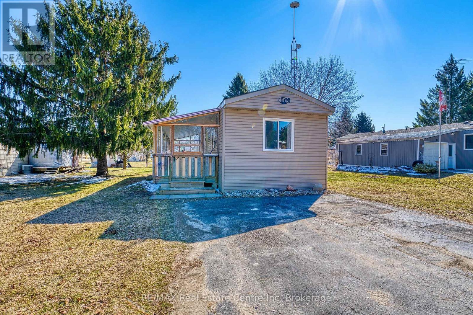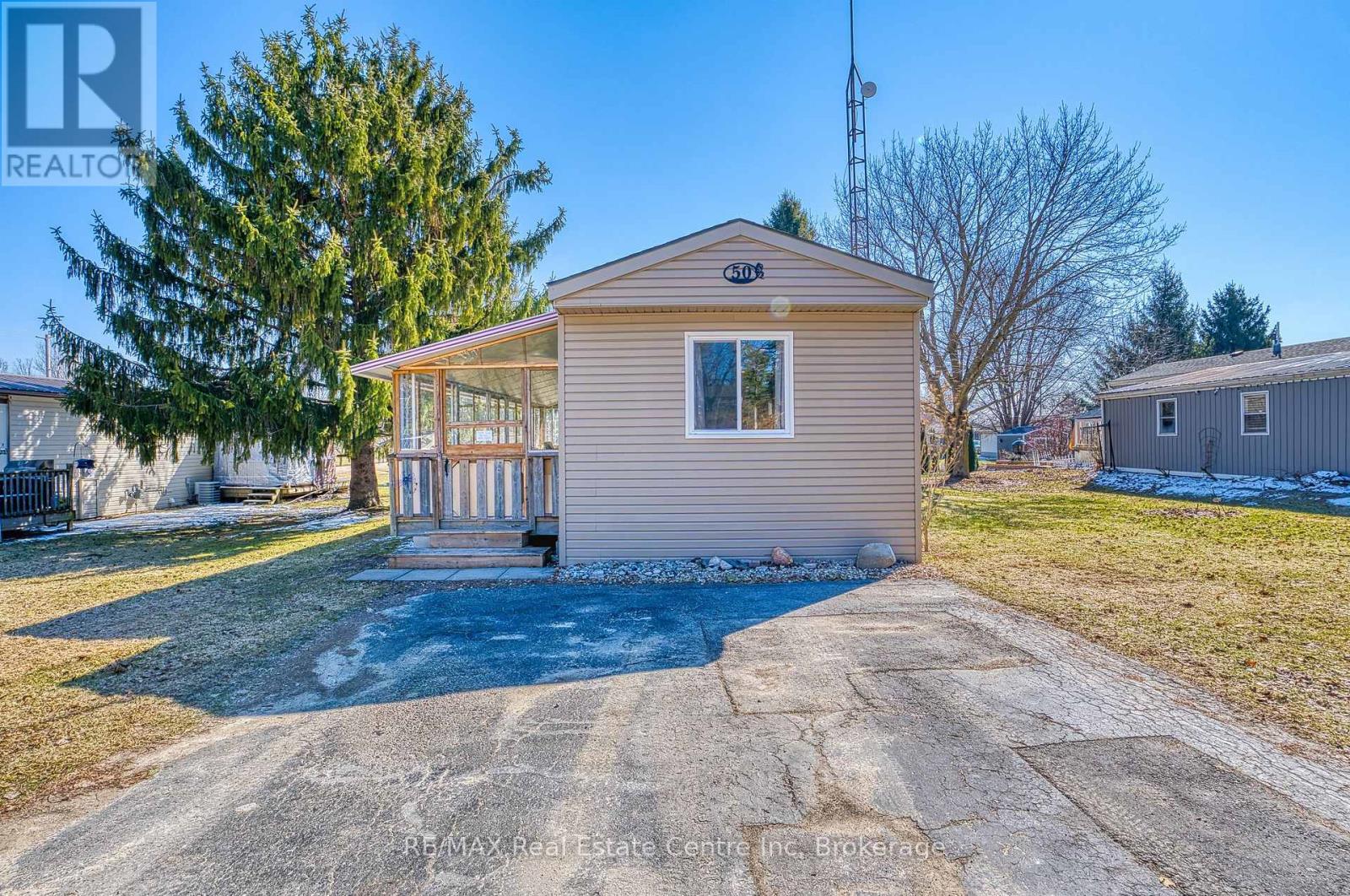 Welcome to 50 Fifth Ave in Conestoga Estates, a well-maintained land lease community offering affordable year-round living in a peaceful setting. This home features a spacious enclosed front porch with removable panels, making it the perfect spot to enjoy summer breezes or stay cozy during the colder months. Inside, you'll find a bright open-concept layout with a combined living, dining, and kitchen area, ideal for everyday living and entertaining. A wide hallway leads to a 4-piece bathroom, convenient hallway laundry, and two comfortable bedrooms. A walkout to the backyard adds extra outdoor enjoyment and easy access to the yard and storage shed. Monthly fee: $761.49. Includes land lease fee, property taxes, and water testing. A great opportunity for affordable living in a great community, only 15 minutes to shopping, groceries and restaurants.